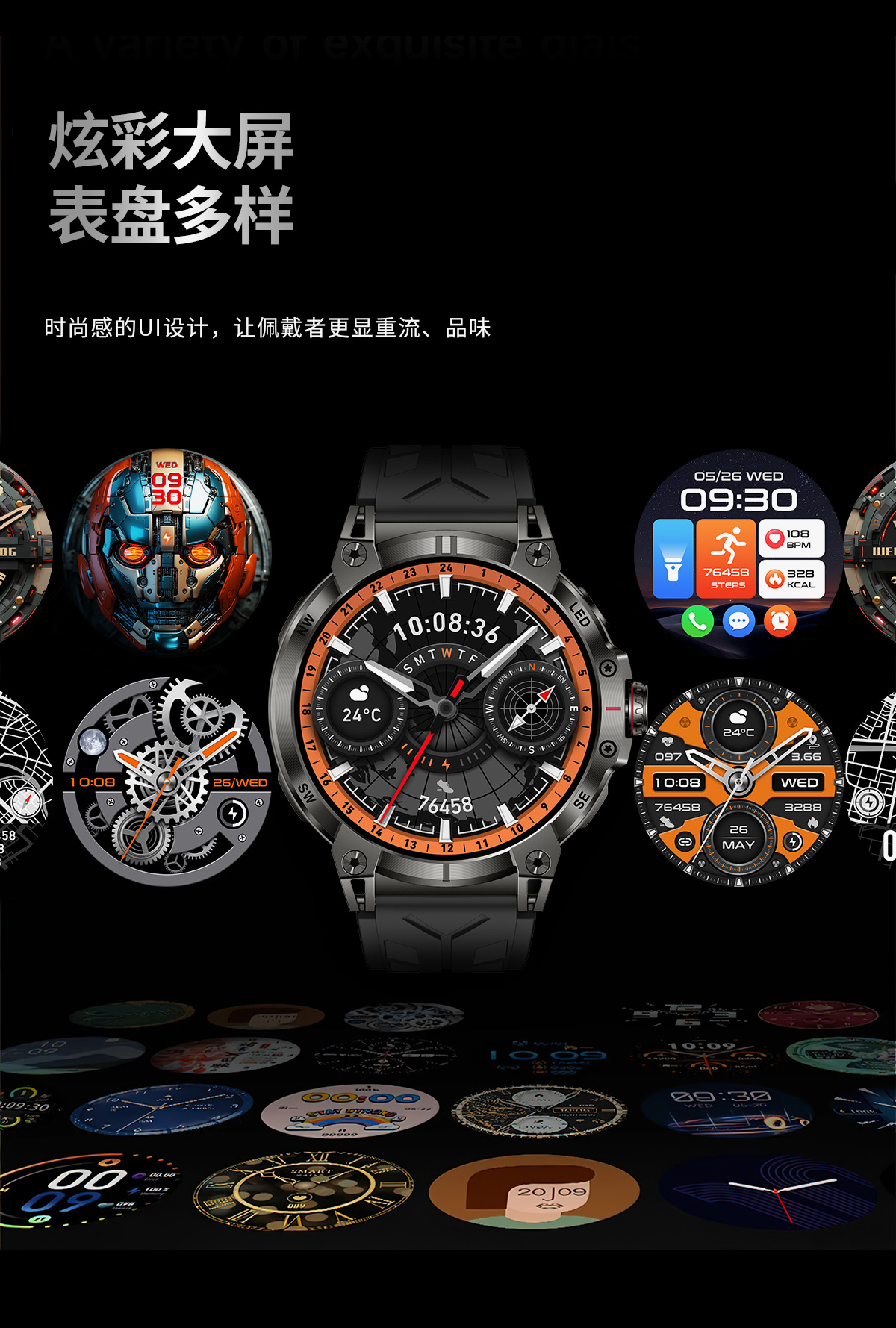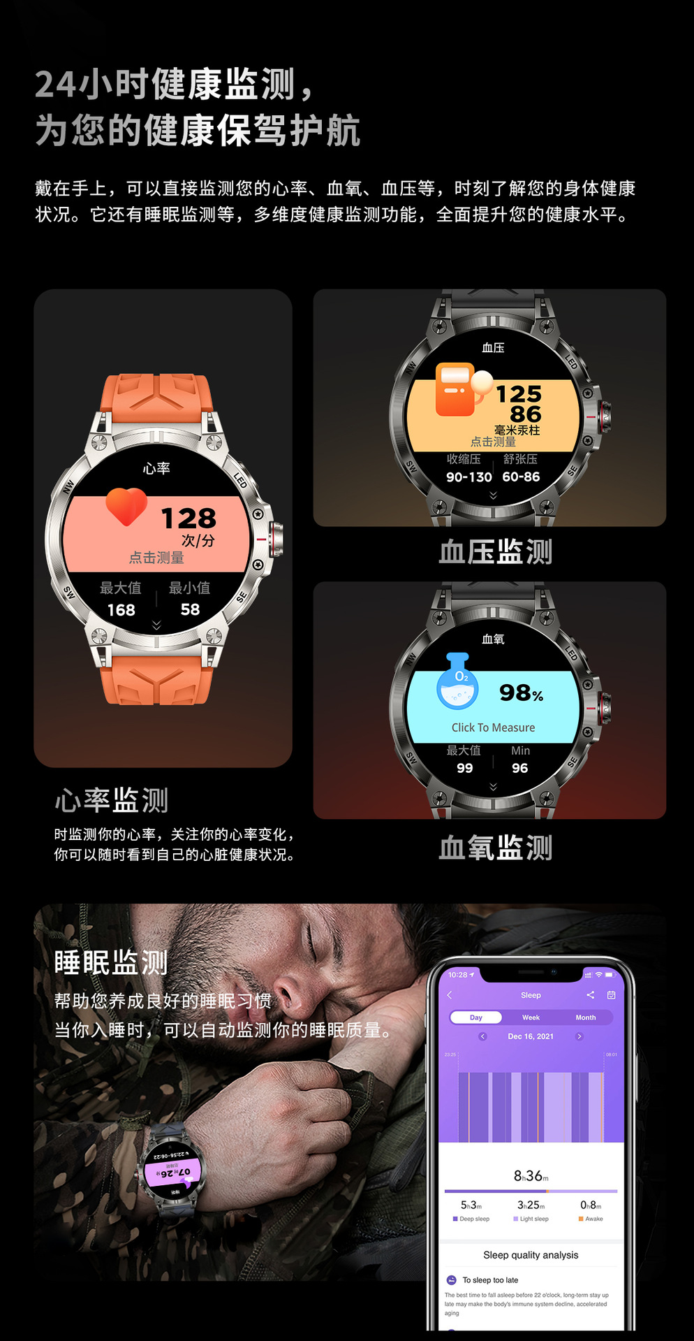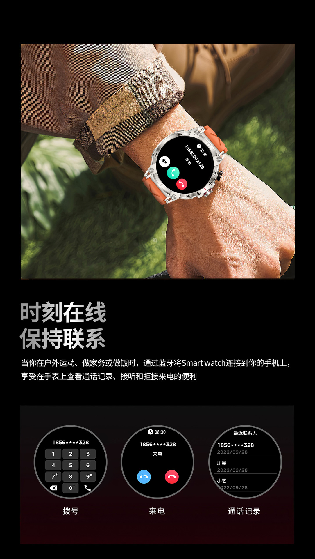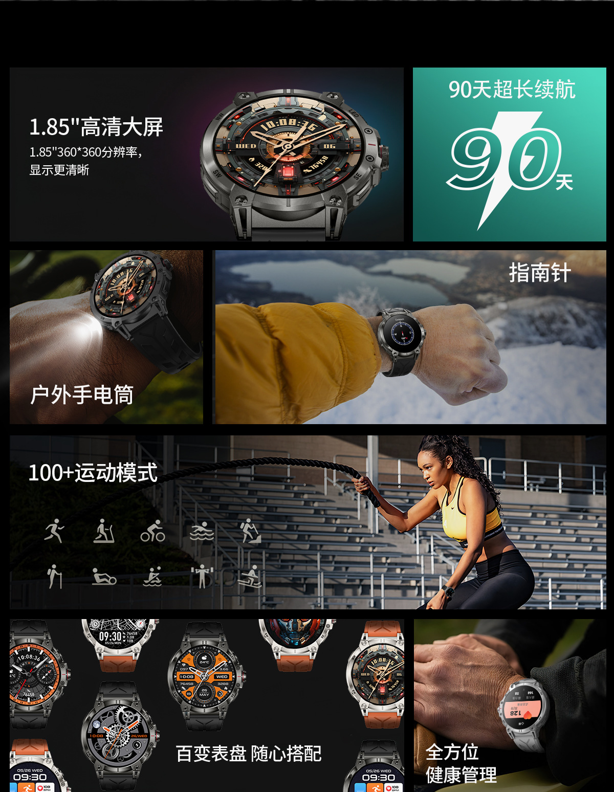 새로운 KC89 스마트 시계 블루투스 전화 1.8 대형 스크린 심박수 혈액 산소 LED 조명 야외 방수 스포츠