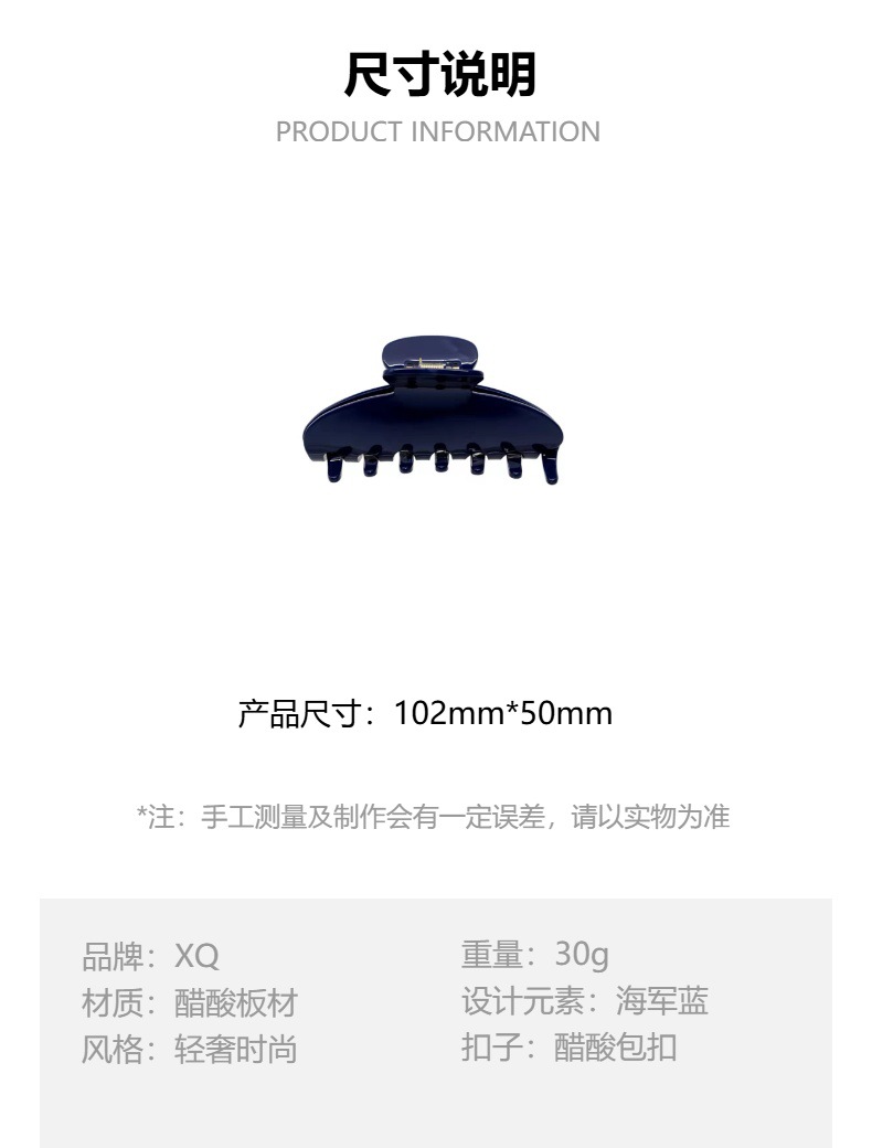 가을과 겨울 새로운 네이비 아세트산 간단한 헤어 클립 높은 질감 모든 경기 여자 친구 선물 클립 복고풍 대외 무역 헤어 액세서리스토어 가기