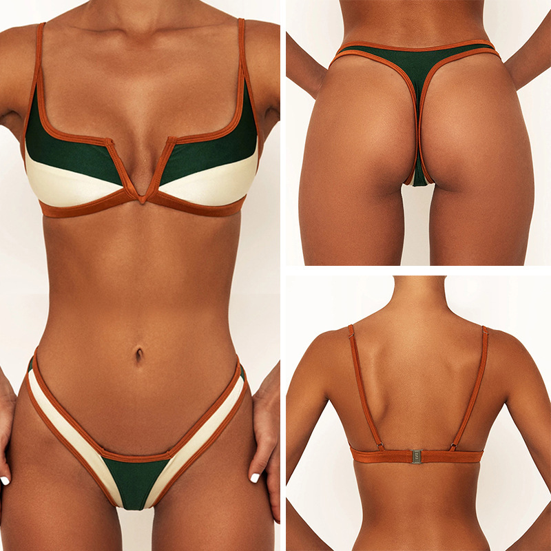 Pengxiang 2025 새로운 섹시한 V-Neck 컬러 매칭 푸시 업 스플릿 수영복 비키니 크로스 보더 아마존 수영복 0101스토어 가기