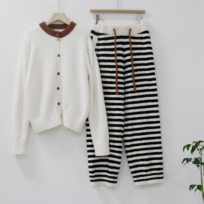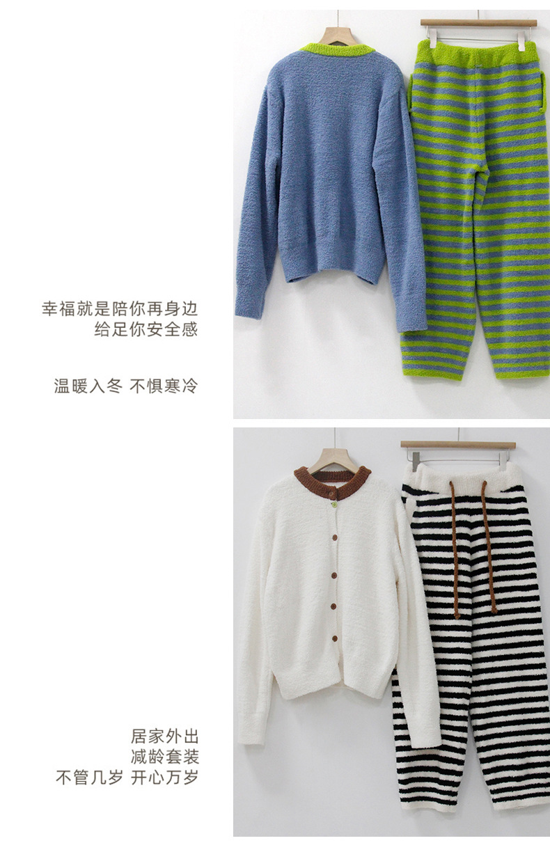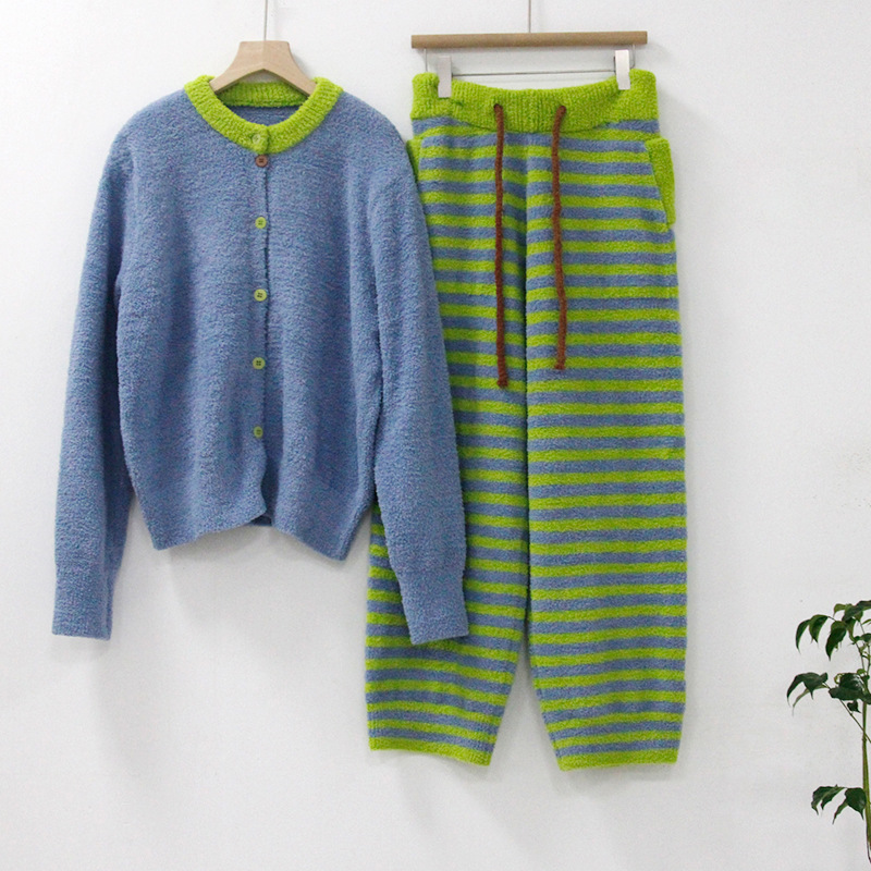 겨울 두꺼운 반쪽 벨벳 파자마 여성용 샤넬 스타일 따뜻한 산호 기모 편안한 느슨한 긴 소매 간단한 홈 옷