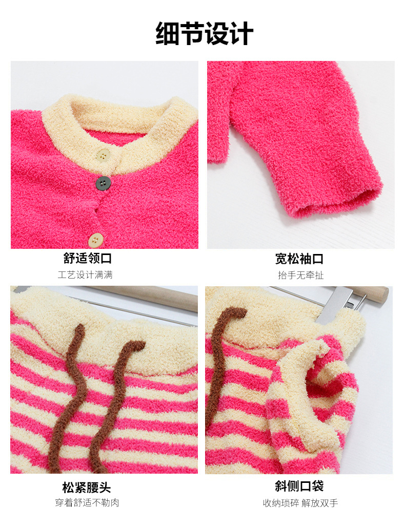 겨울 두꺼운 반쪽 벨벳 파자마 여성용 샤넬 스타일 따뜻한 산호 기모 편안한 느슨한 긴 소매 간단한 홈 옷스토어 가기