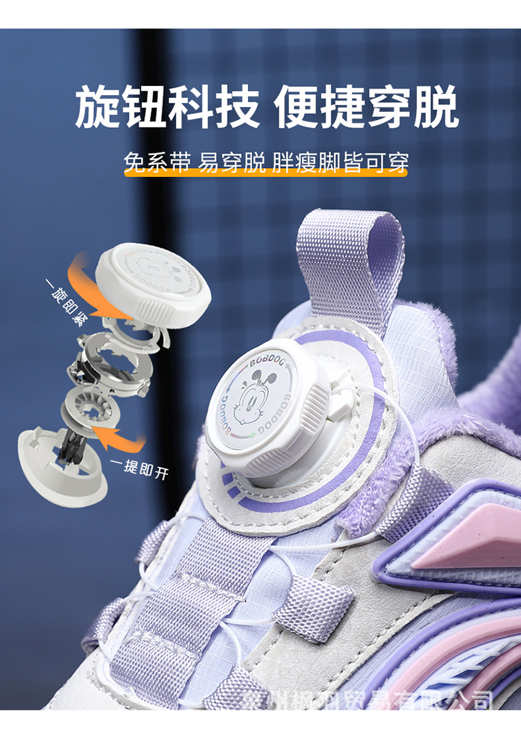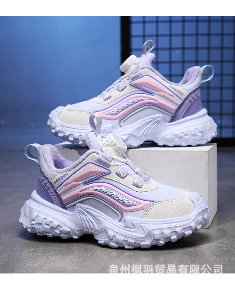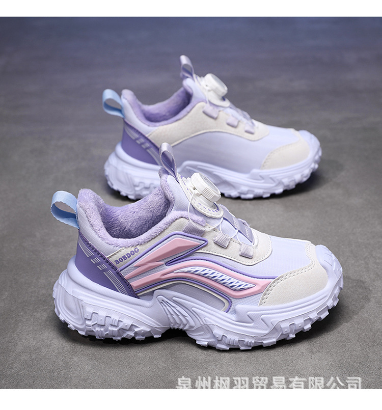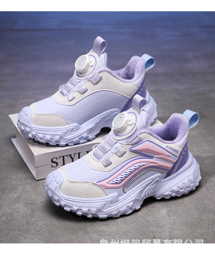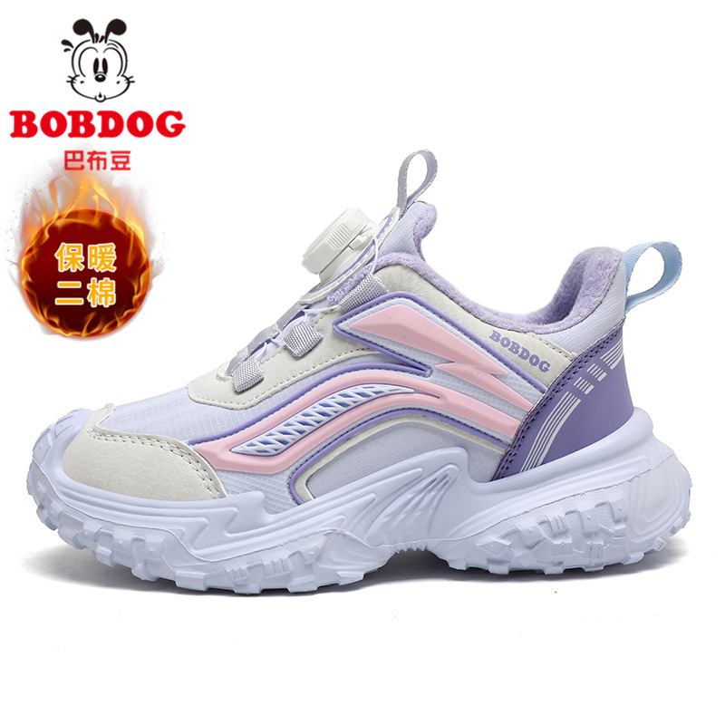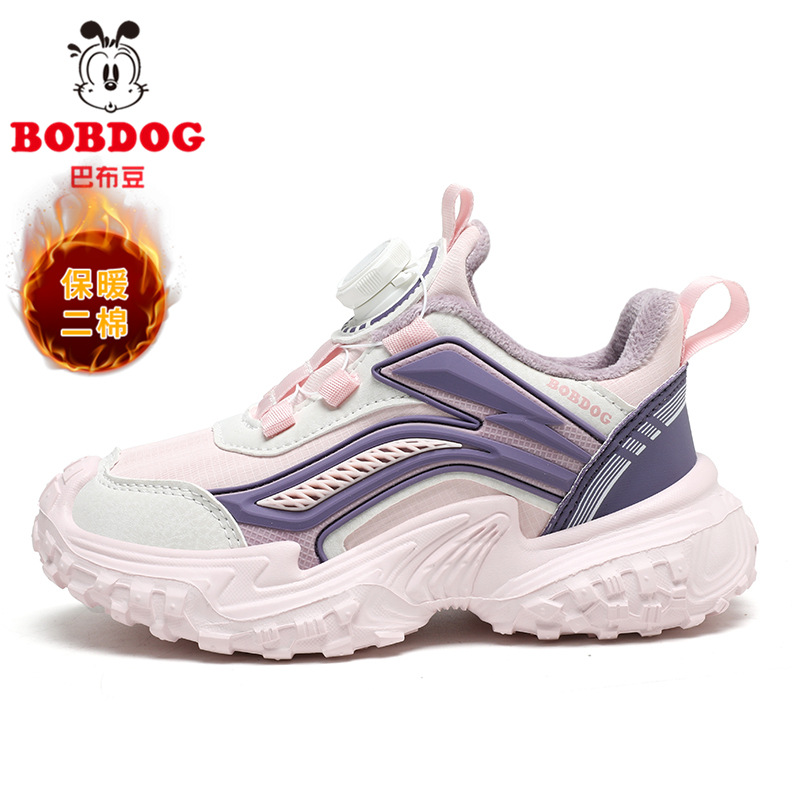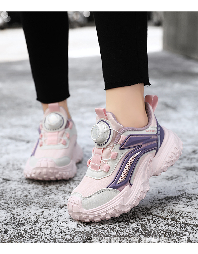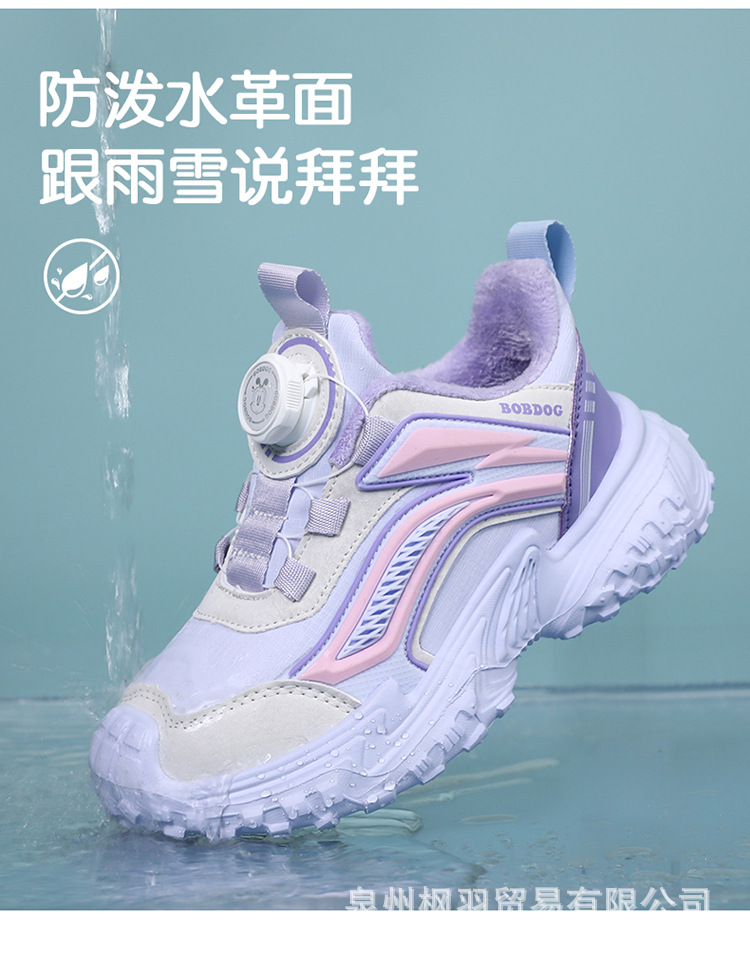 바부 콩 여자 스포츠 신발 2024 겨울 가죽 기모 따뜻한 코튼 버튼 신발 어린이 토레 신발