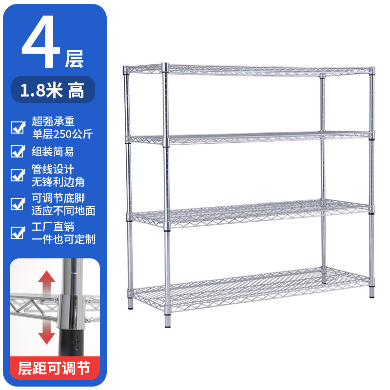 공장 창고 가정용 크롬 도금 와이어 메쉬 선반 다층 스토리지 랙 스테인레스 스틸 스토리지 랙 스토리지 디스플레이 선반