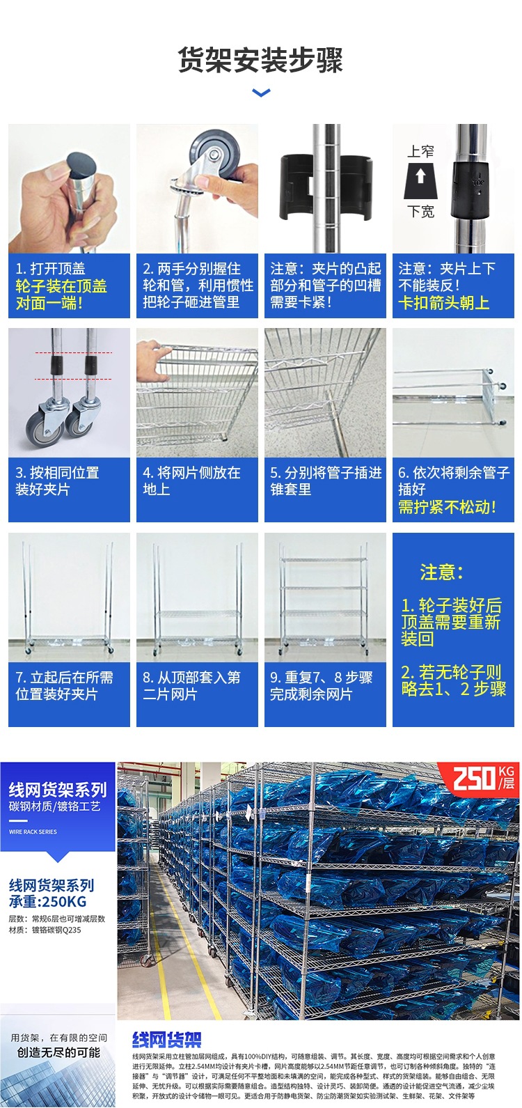 • 1.5m 높이 4층(유니버설 휠 포함) - 길이 182cm, 폭 60cm(보관 및 보관)