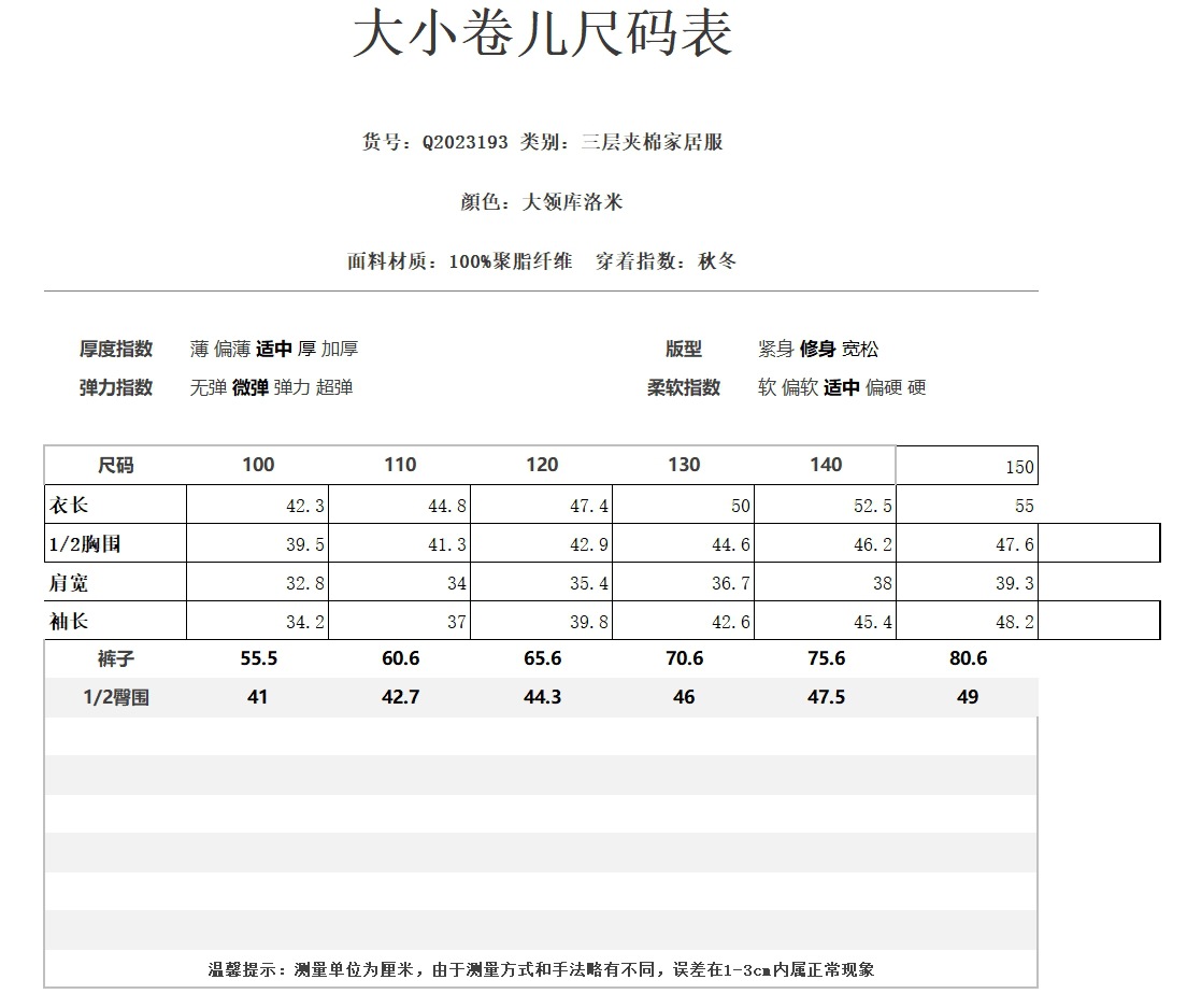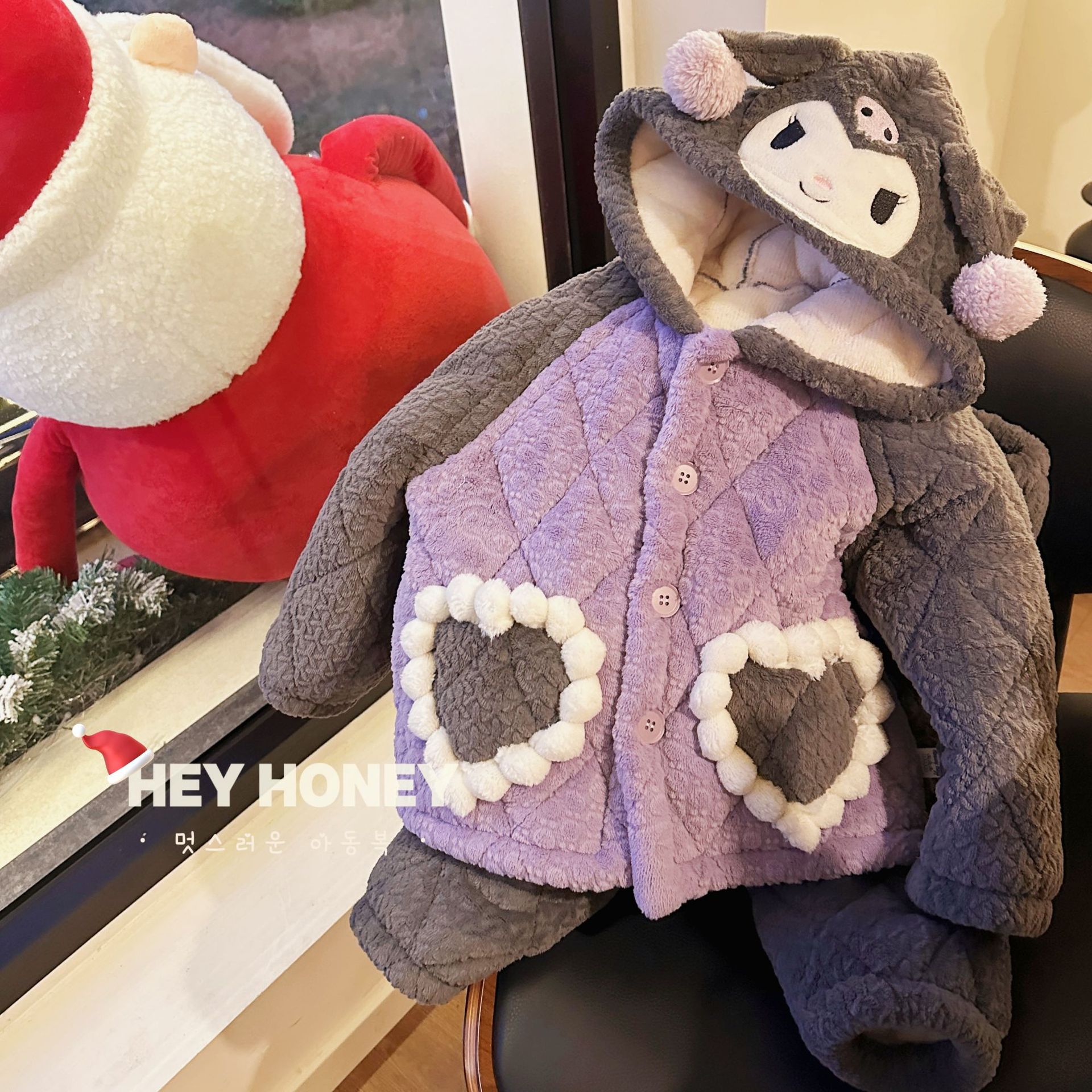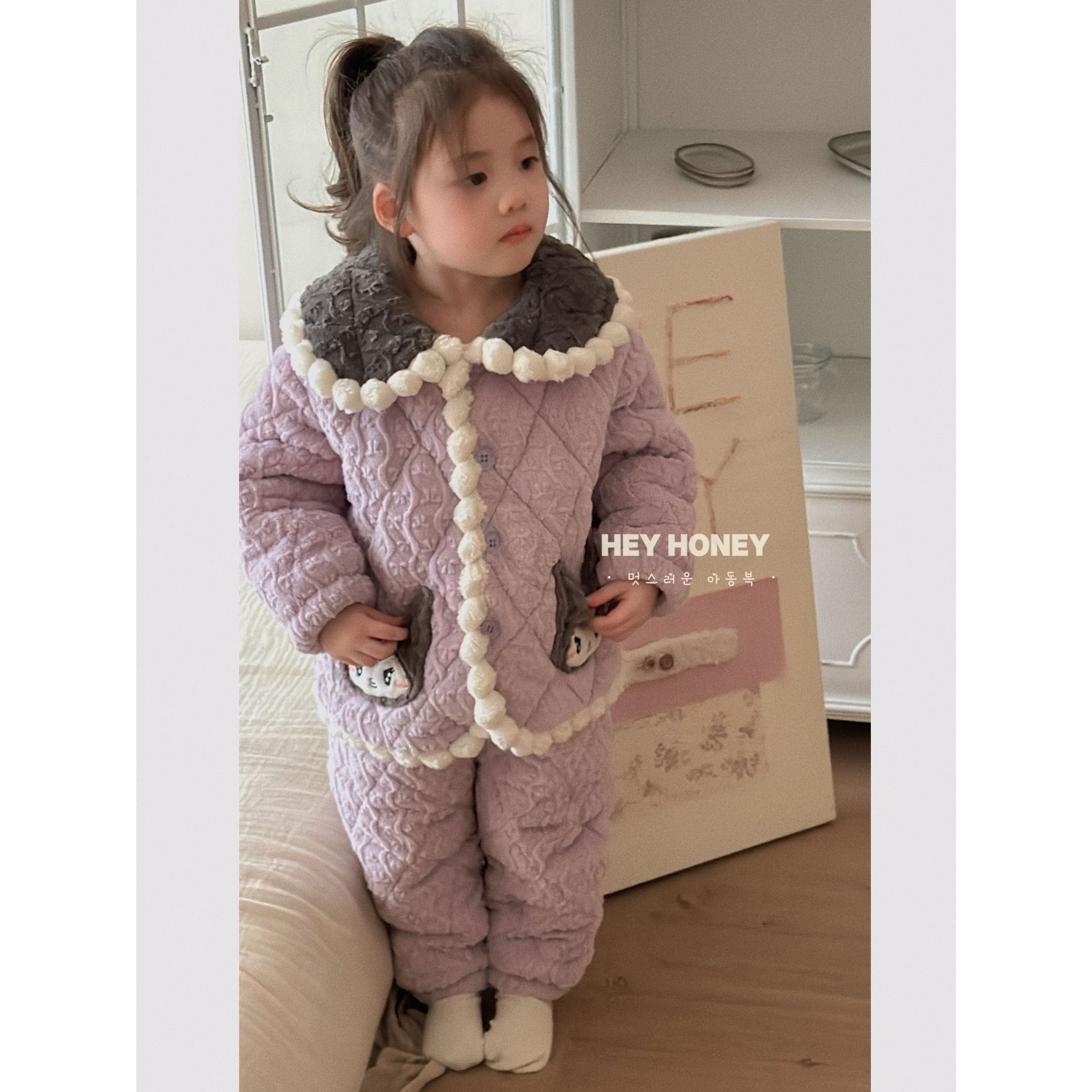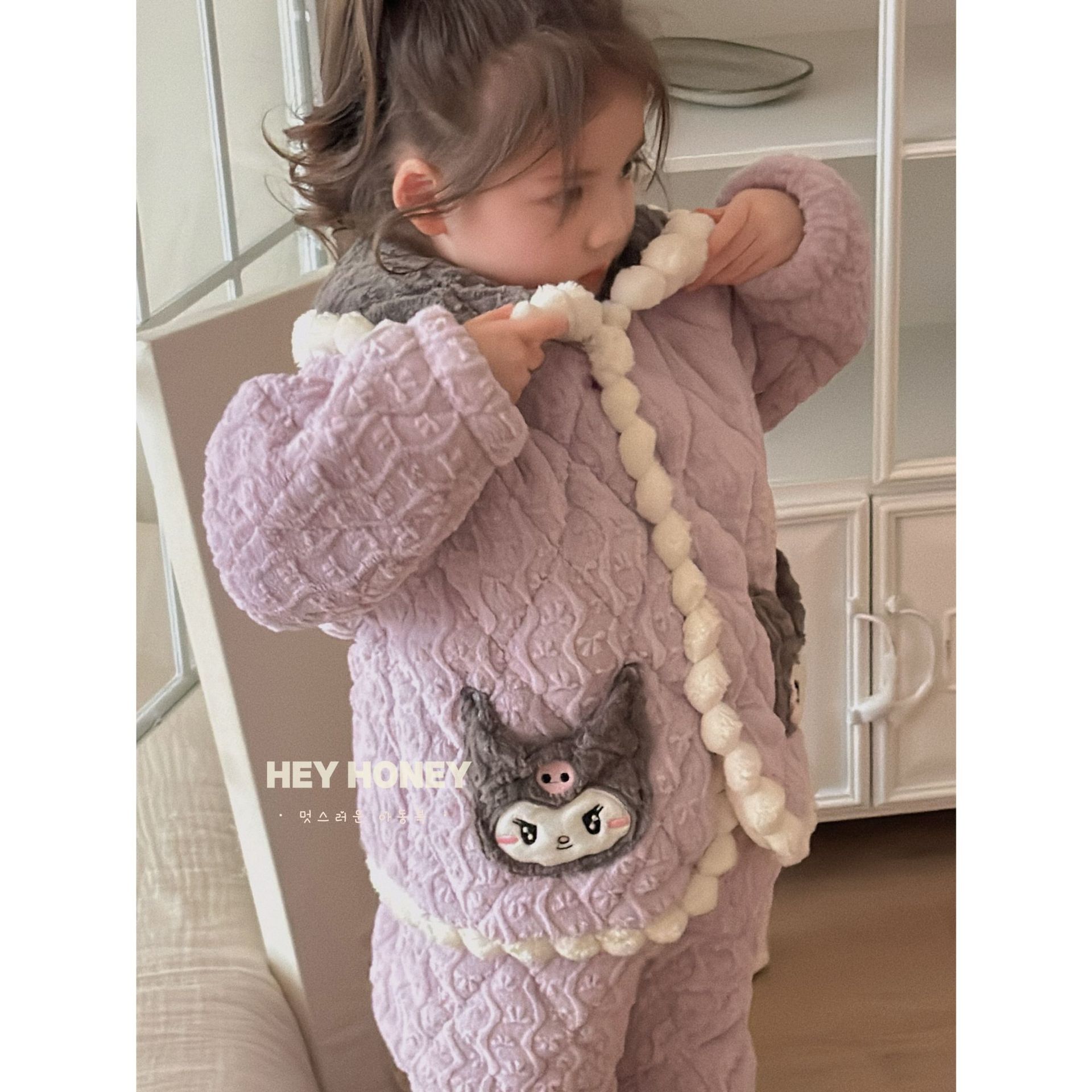 사이즈 롤 헤이 연인 겨울 소녀 잠옷 3 층 두꺼운 퀼트 쿨로 미 홈 옷 어린이 따뜻한 세트