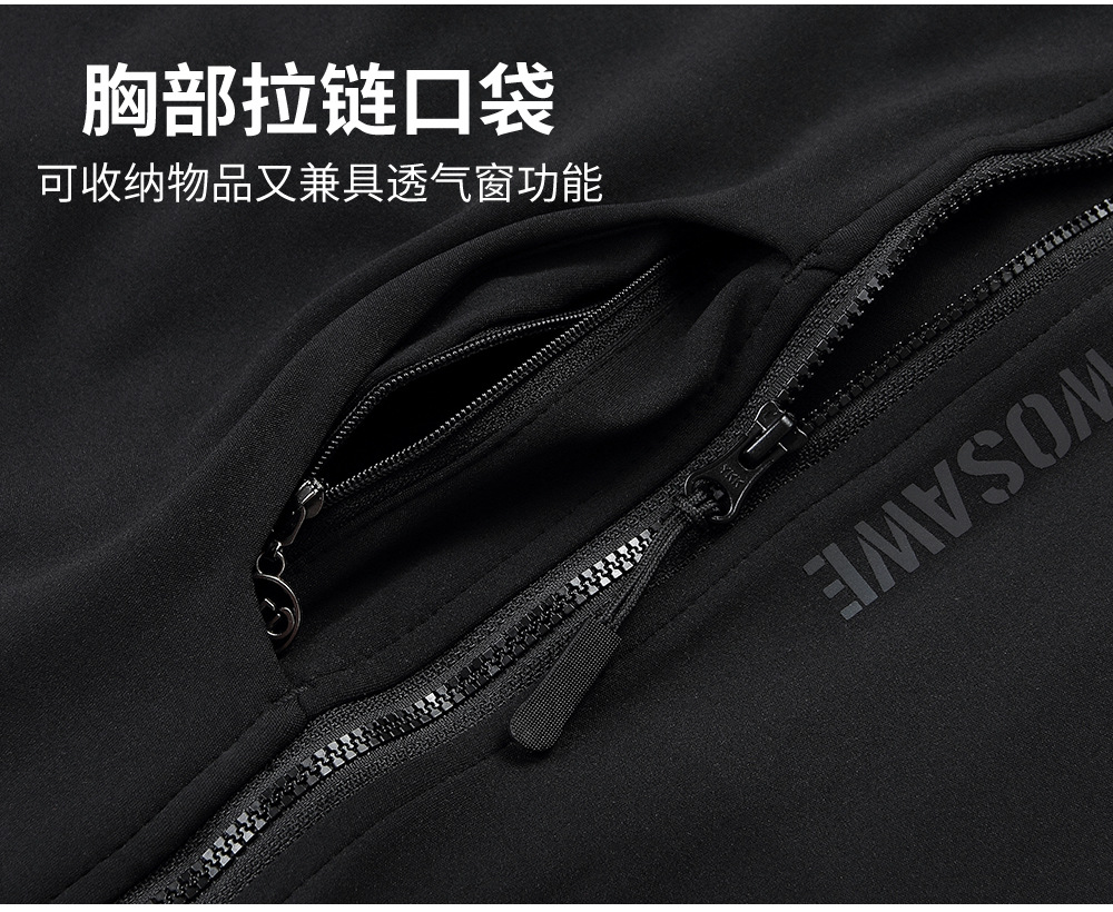 左下方和后背中间的口袋上有八个反光网格,后背中间的口袋下有一条反光条,可在弱光或雾天环境下提高安全性