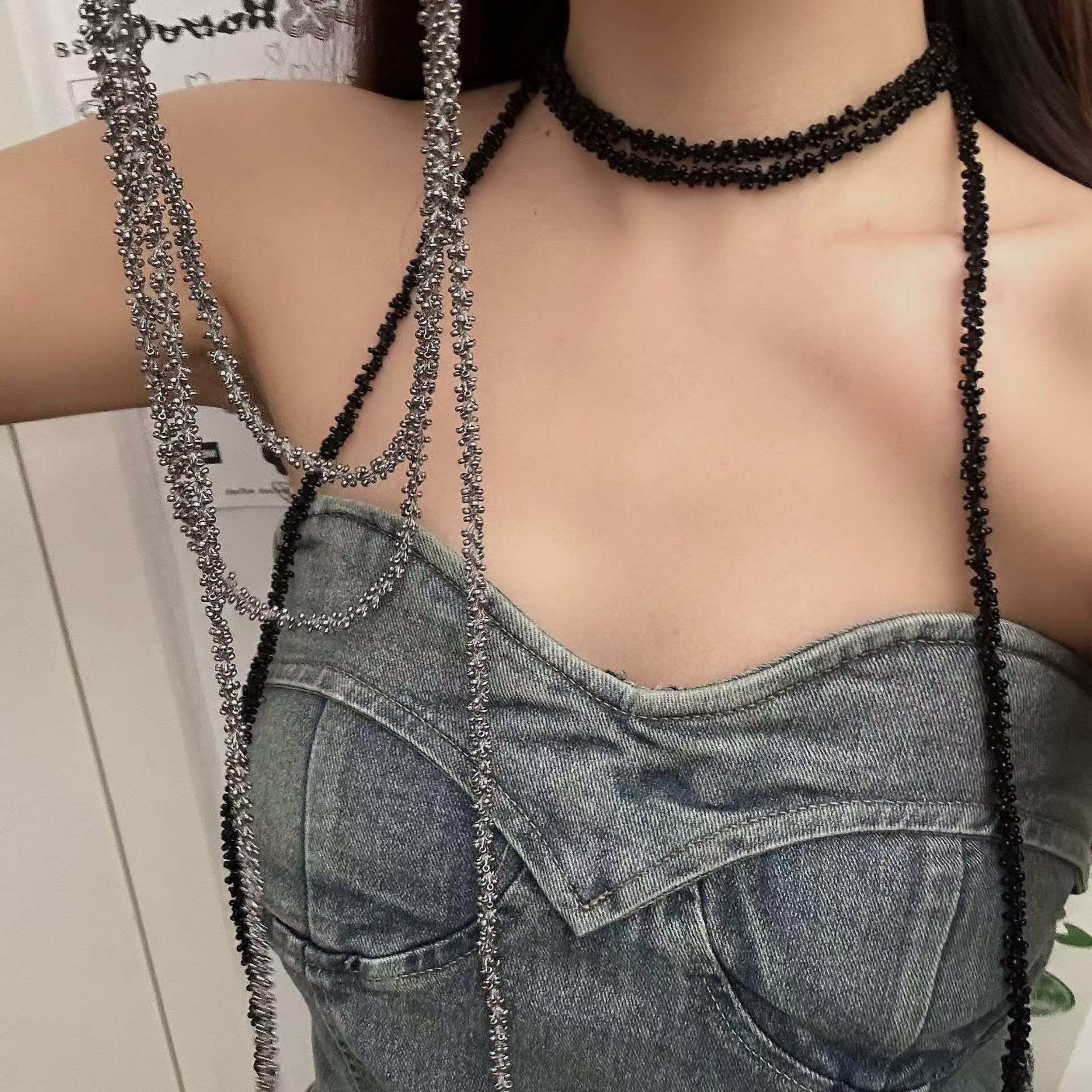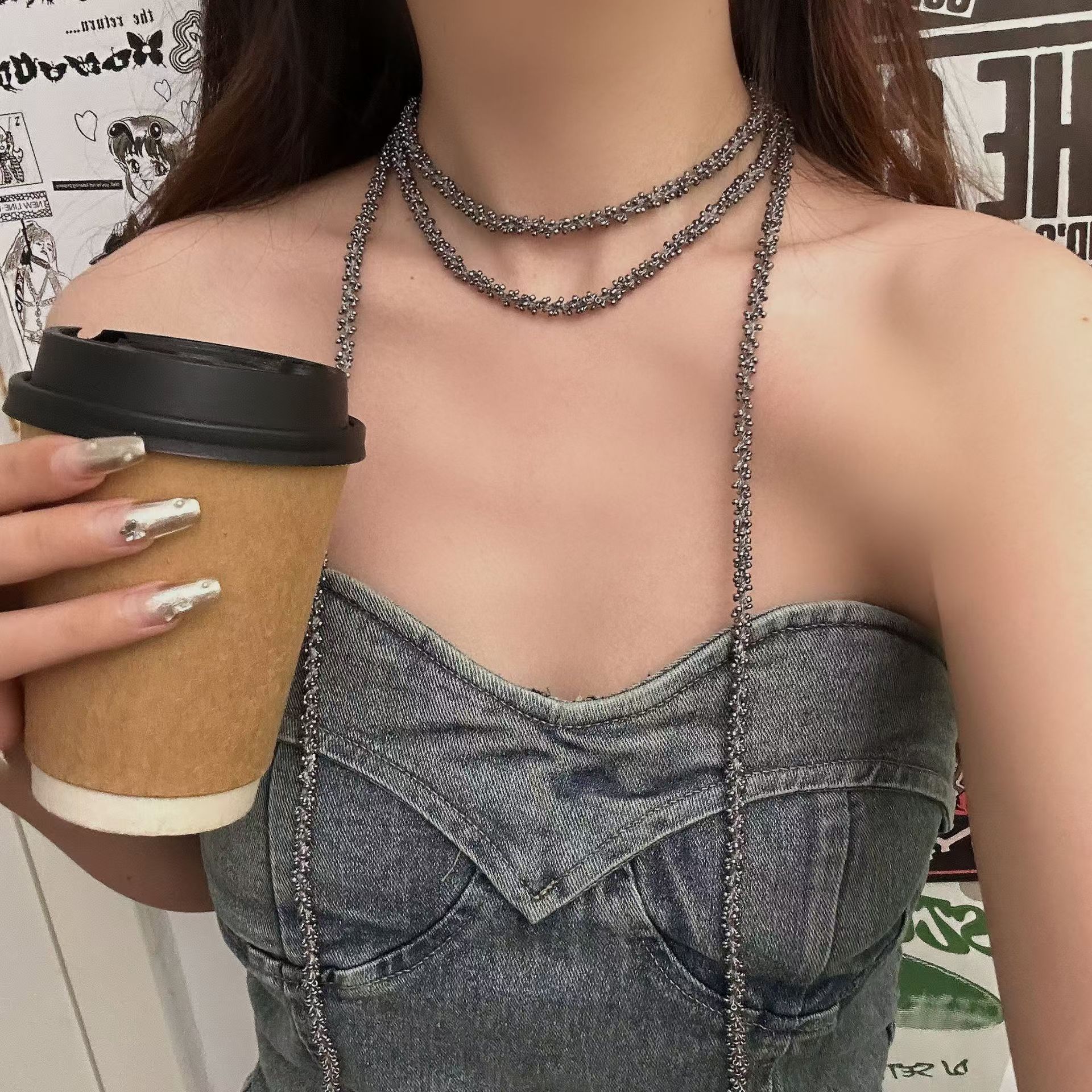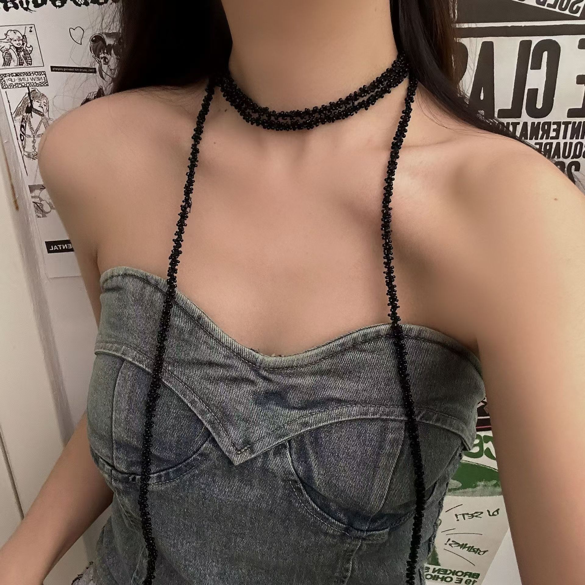 빈티지 디자인 가벼운 럭셔리 틈새 쌓인 목걸이 여성용 달콤한 쿨 스타일 Y2K 고급 중공업 구슬 얇은 좁은 쇄골 체인스토어 가기