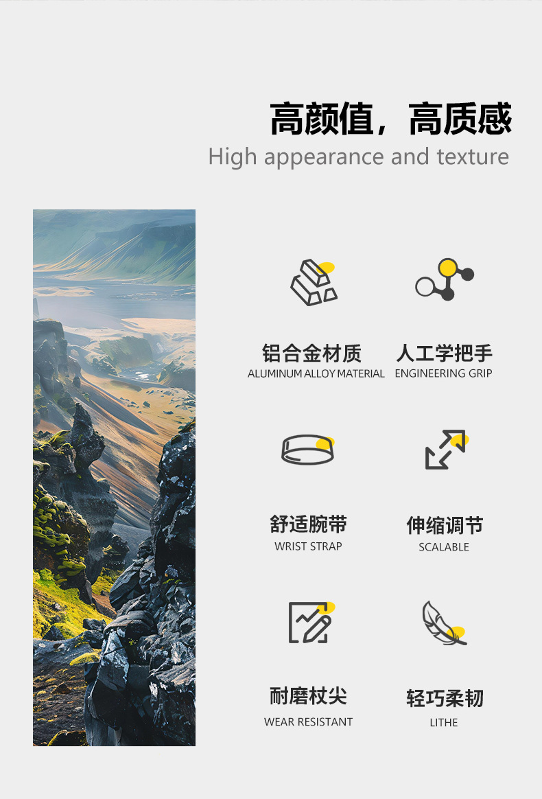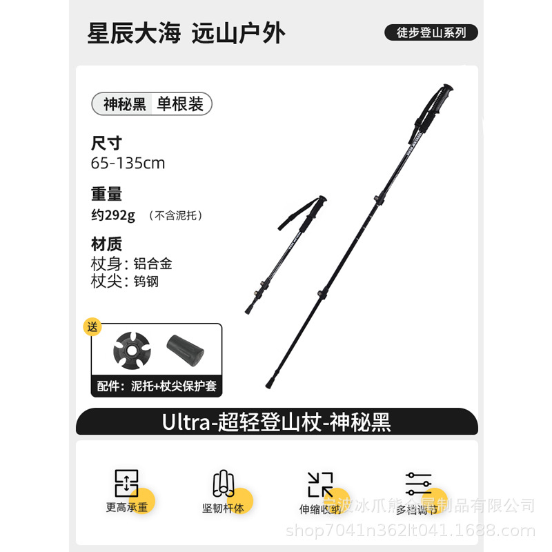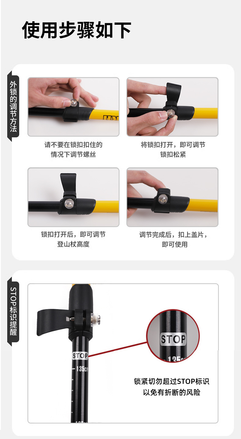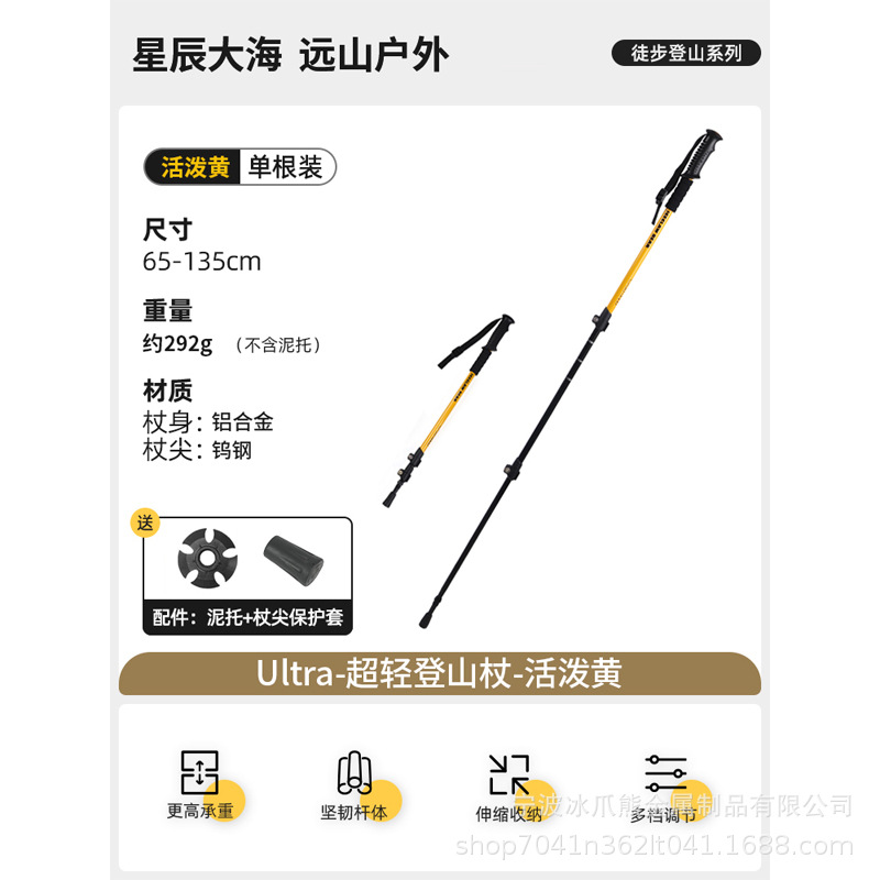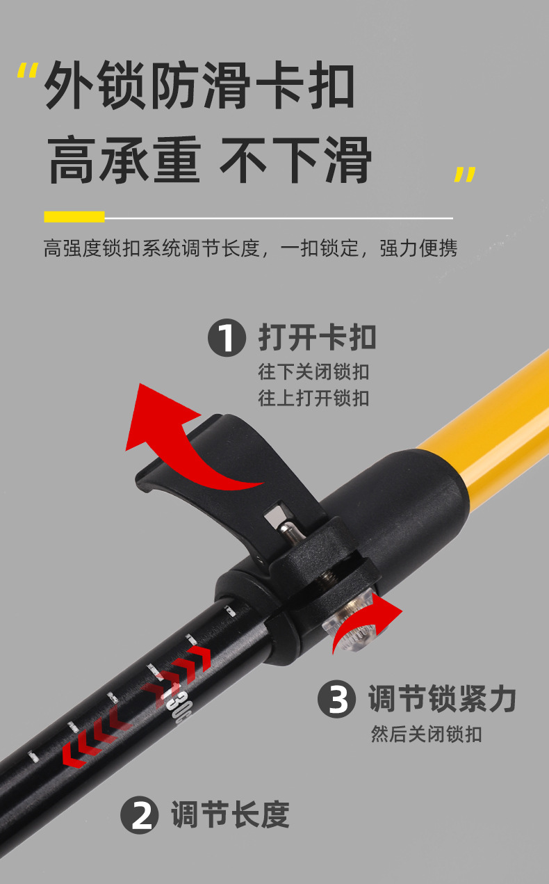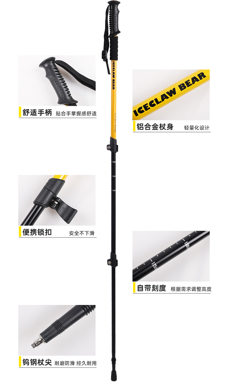등산용 남성용 및 여성용 텔레스코픽 알루미늄 합금 워킹 스틱, 전문 야외 하이킹 스틱, 외부 잠금 장치, 탄소 섬유 없음스토어 가기