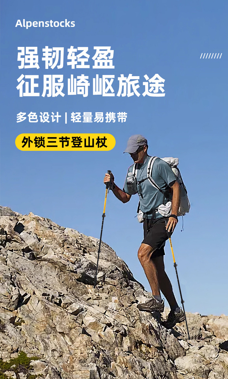 등산용 남성용 및 여성용 텔레스코픽 알루미늄 합금 워킹 스틱, 전문 야외 하이킹 스틱, 외부 잠금 장치, 탄소 섬유 없음