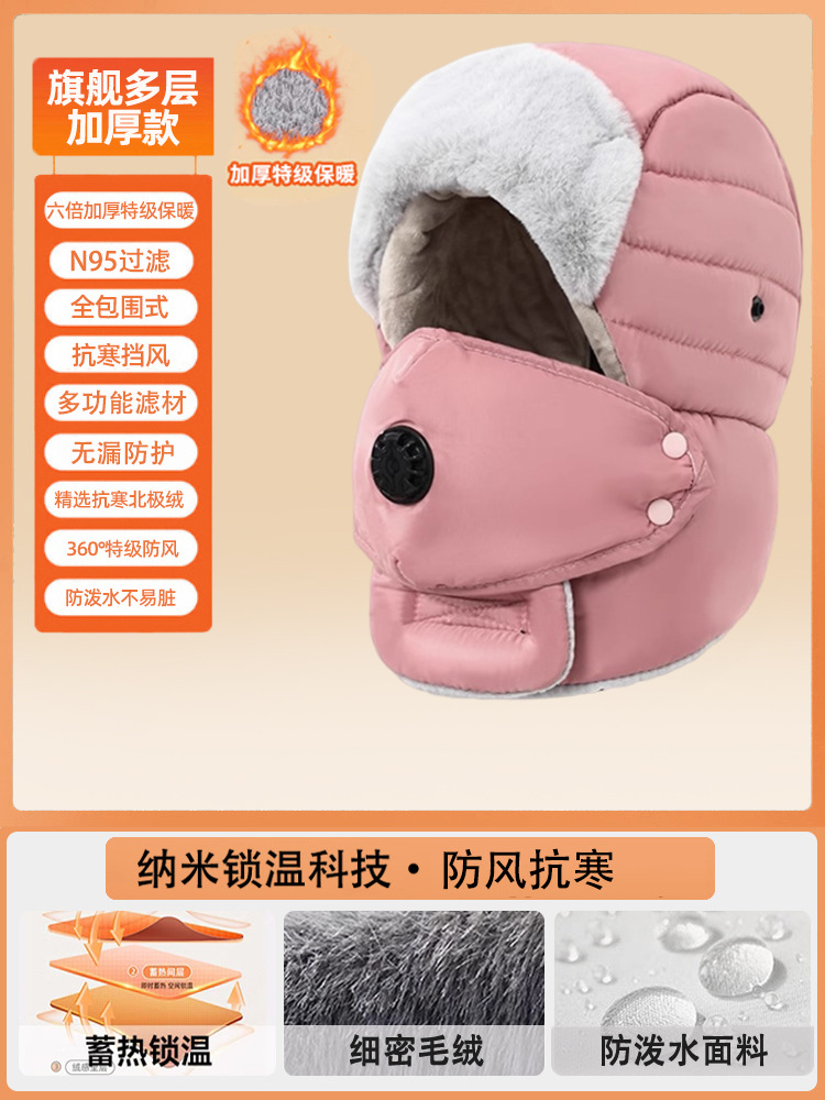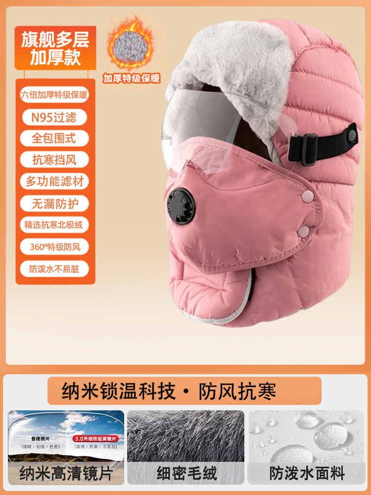 • [업그레이드 모델] 핑크⭐5-in-1 [클리어 렌즈⭐통기성 호흡 밸브⭐매우 두꺼운 플러스 벨벳]