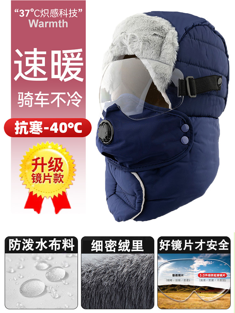 따뜻한 겨울 방한 전기 자동차 레이 펑 모자 마스크 시즌 방풍 남자 모자 여자의 겨울 코튼 모자 승마 헤드 기어