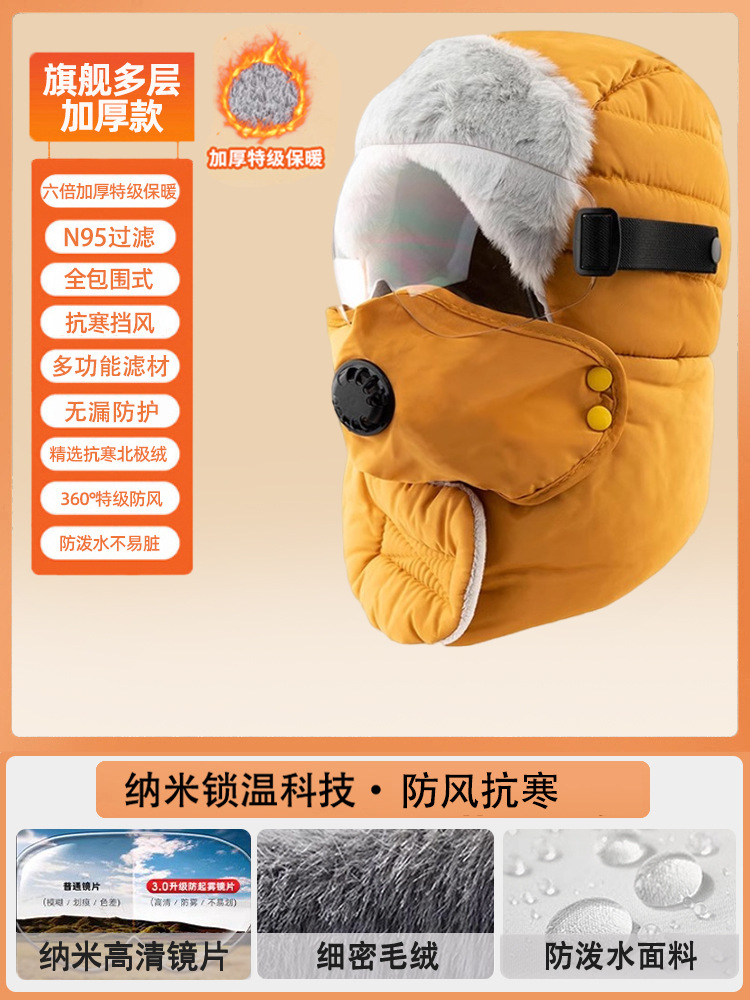 • [업그레이드 모델] 노란색⭐5-in-1 [클리어 렌즈⭐통기성 호흡 밸브⭐매우 두꺼운 플러스 벨벳]