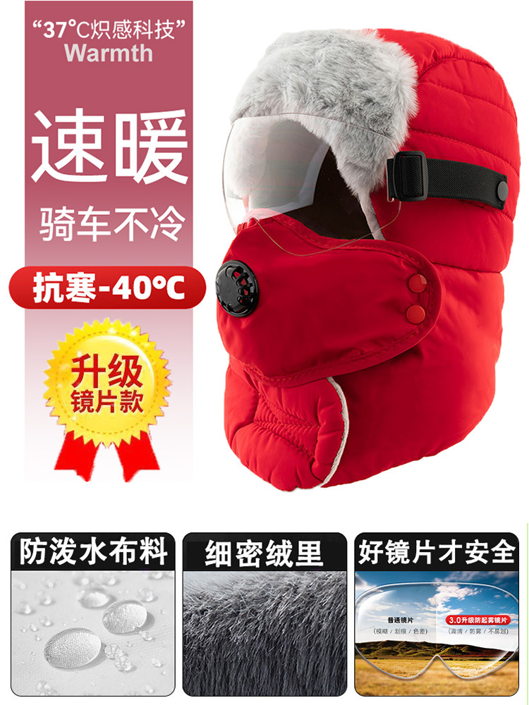 • [업그레이드 모델] 레드⭐5-in-1 [클리어 렌즈⭐통기성 호흡 밸브⭐매우 두꺼운 플러스 벨벳]