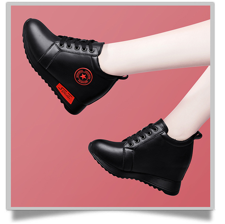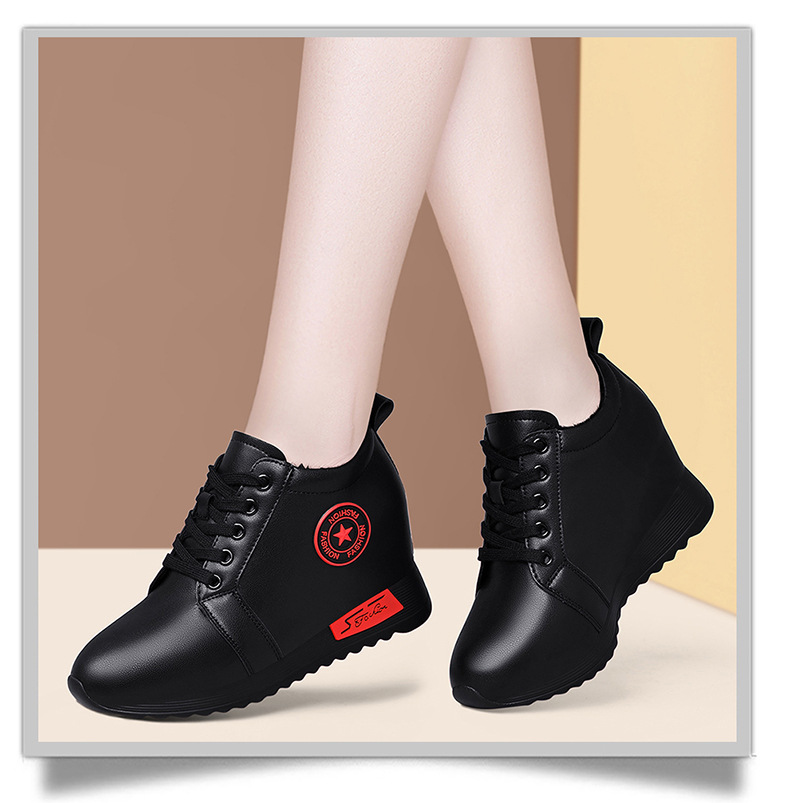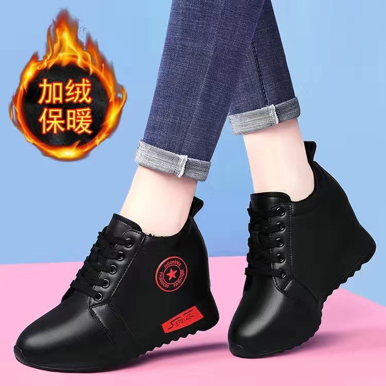 내부 키높이 여성화 2025 신상 겨울 가죽 캐주얼 여성화 부드러운 밑창 다용도 여성용 플러스 사이즈 보온 엄마 신발스토어 가기