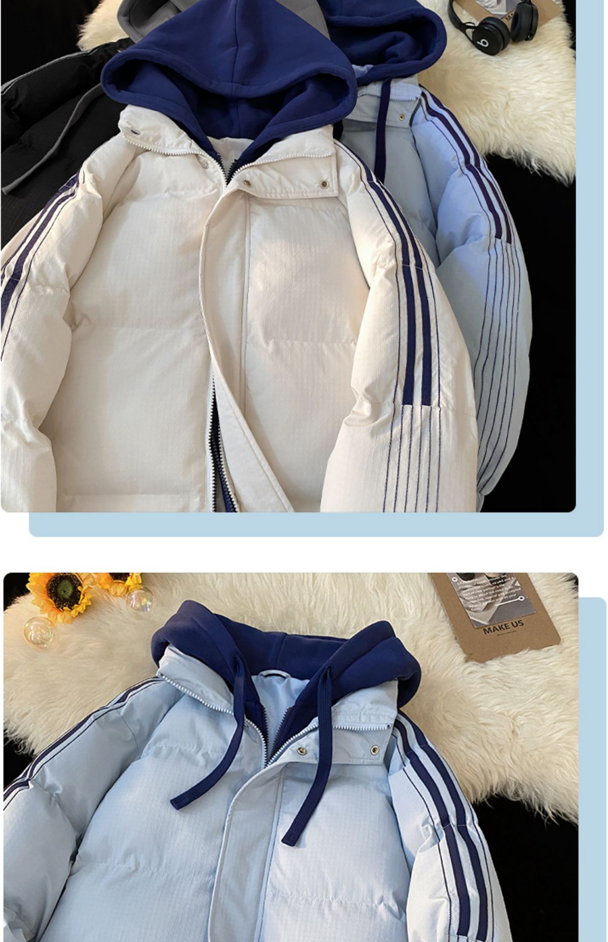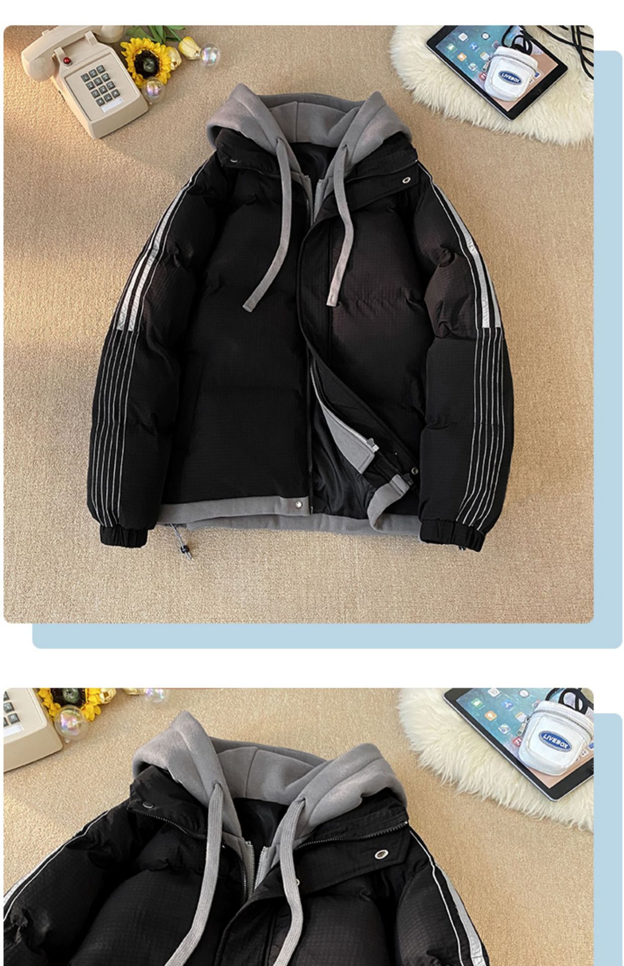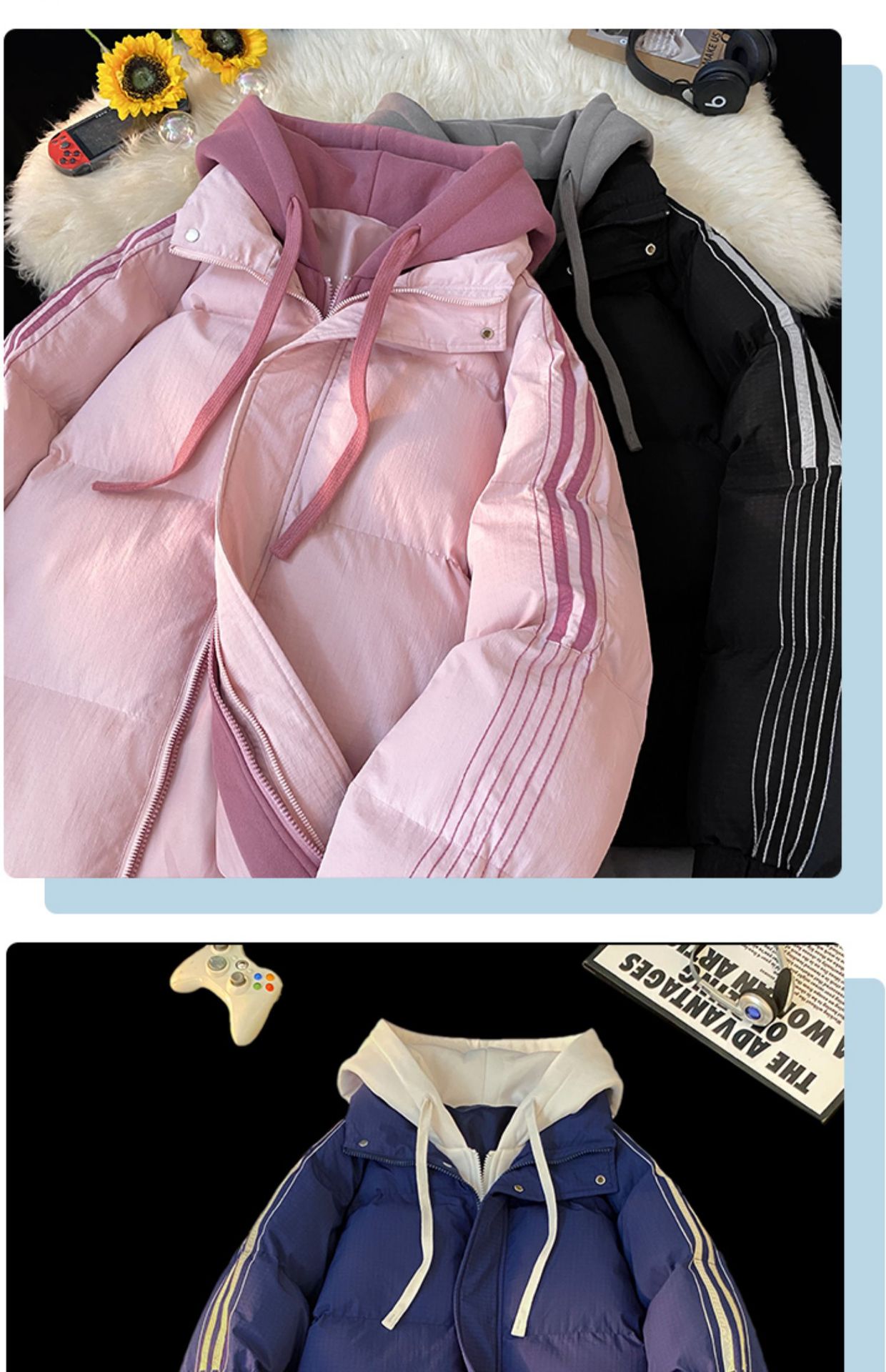 NASA 가짜 2 피스 스트라이프 코튼 패딩 재킷 남자 겨울 2024 유행 브랜드 두꺼운 코튼 패딩 재킷 커플 따뜻한 후드 코튼 패딩 재킷스토어 가기