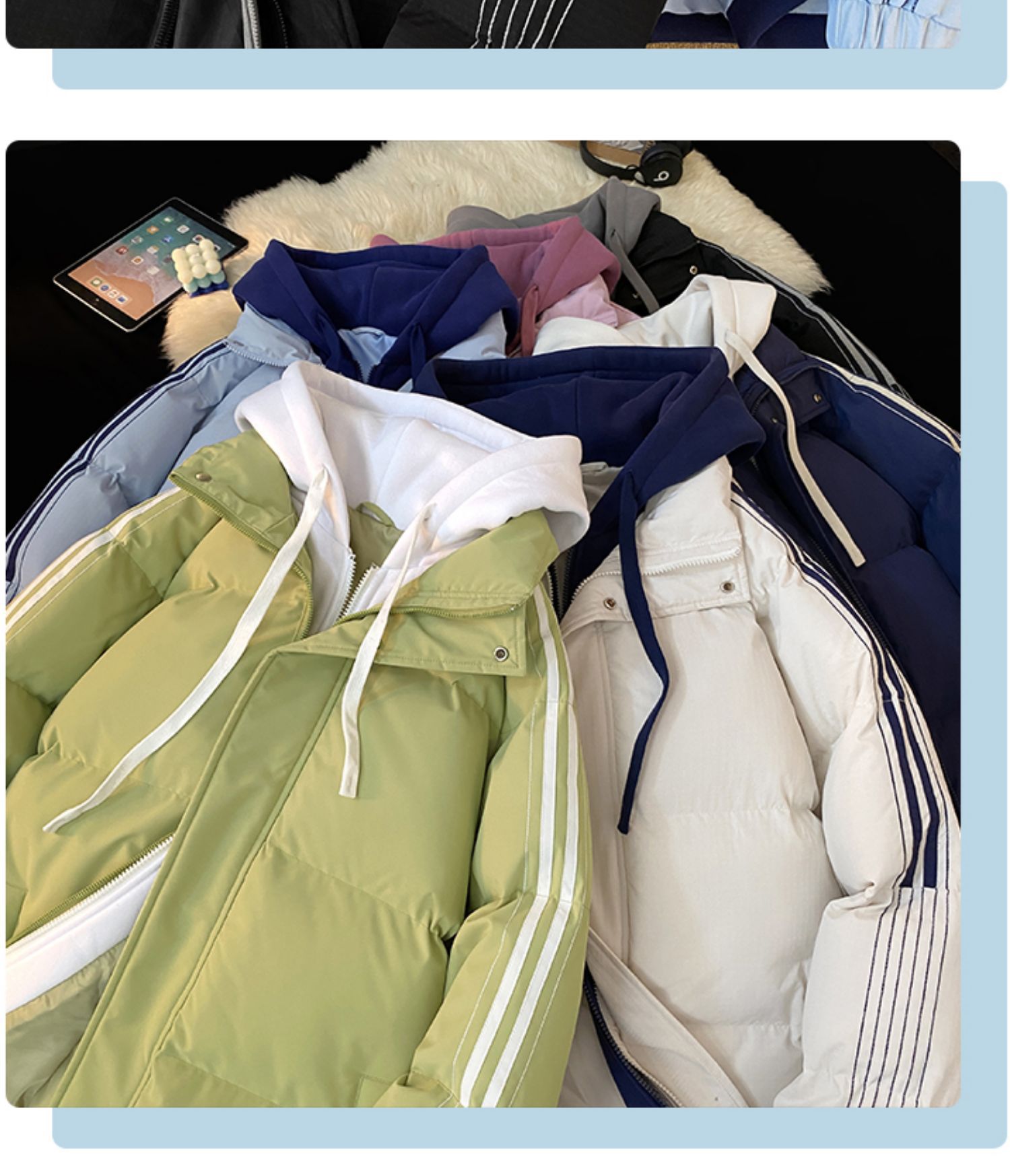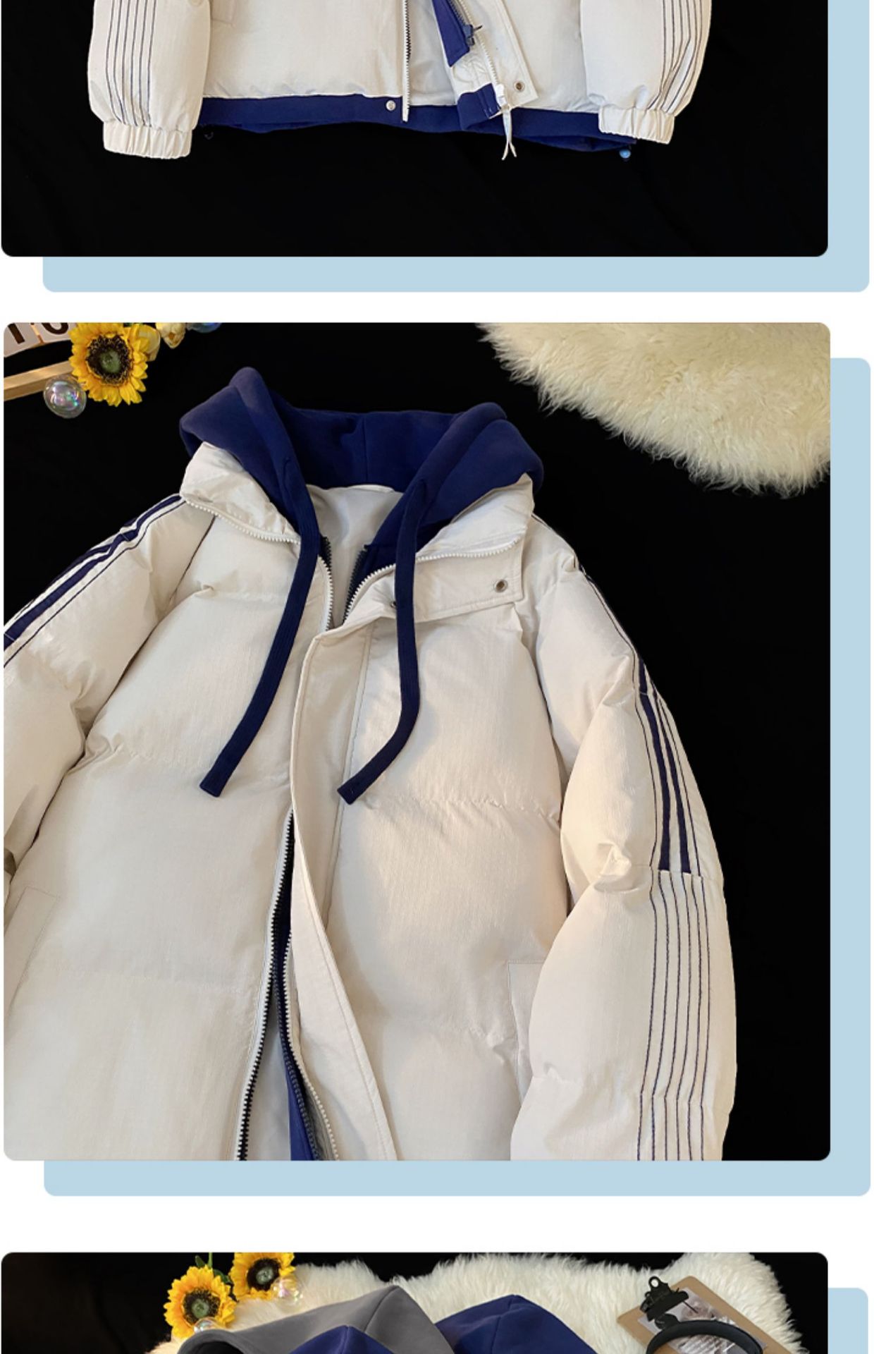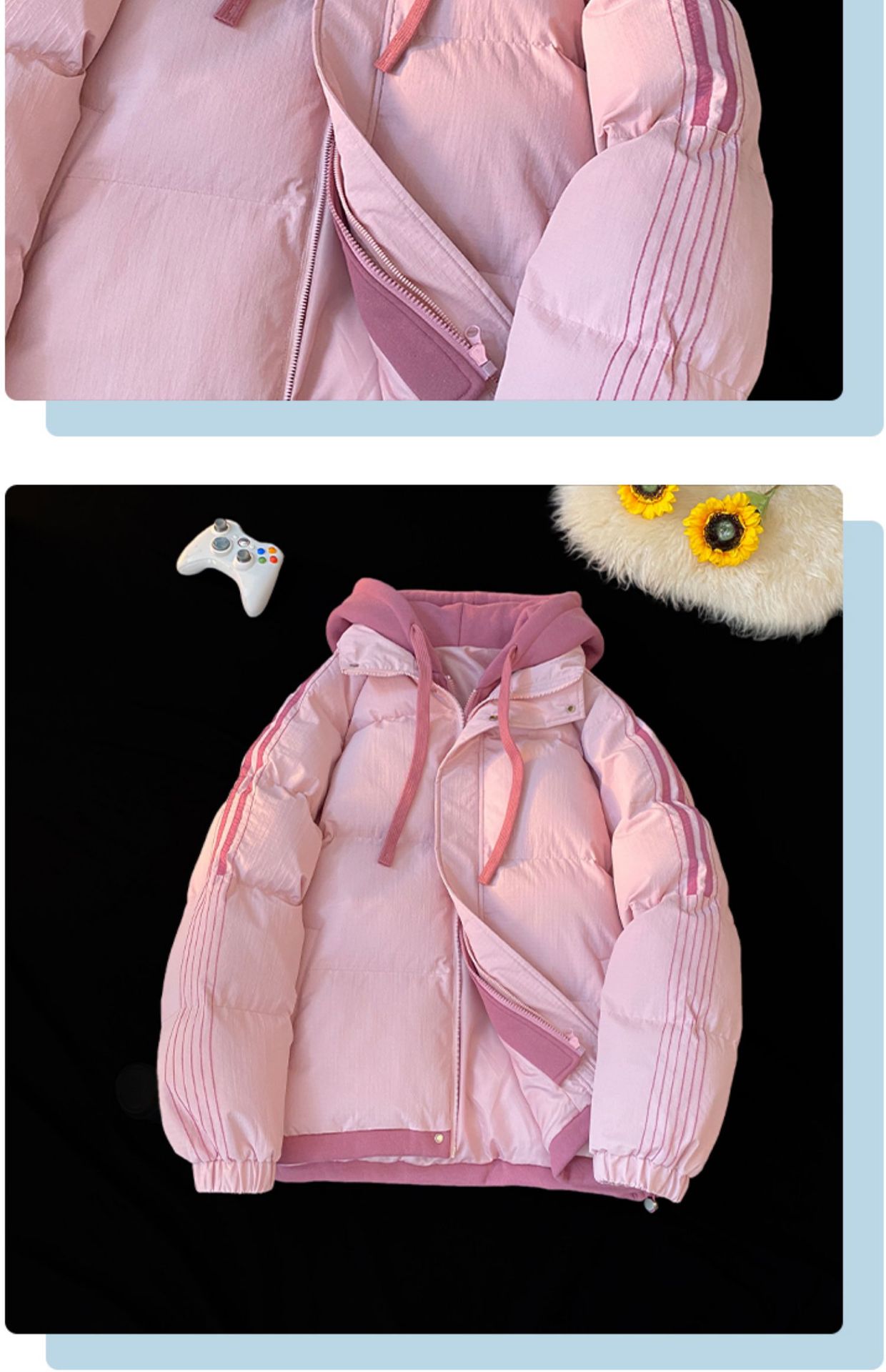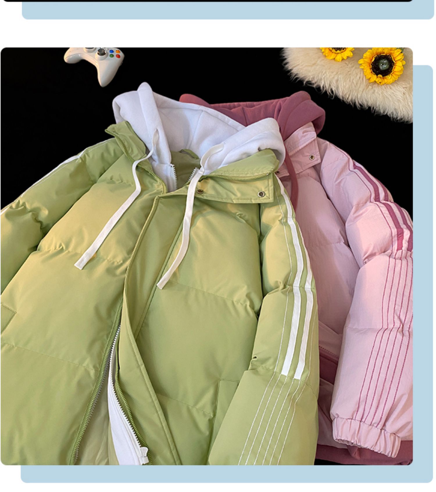 NASA 가짜 2 피스 스트라이프 코튼 패딩 재킷 남자 겨울 2024 유행 브랜드 두꺼운 코튼 패딩 재킷 커플 따뜻한 후드 코튼 패딩 재킷스토어 가기