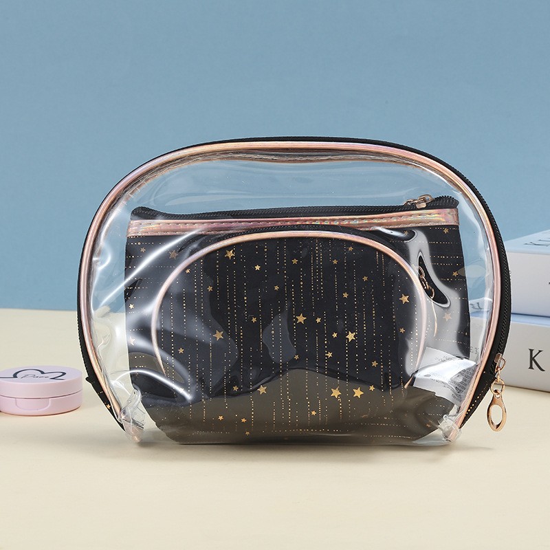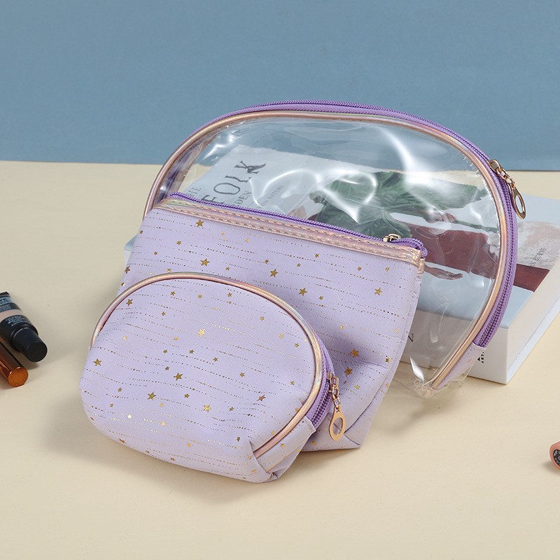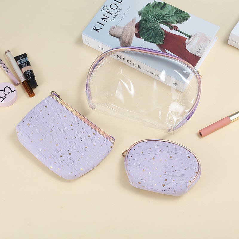 국경 간 핫 스탬핑 입술 반원형 작은 화장품 가방 3 피스 세트 크리 에이 티브 쉘 가방 동전 보관 방수 PU 세면 용품 가방