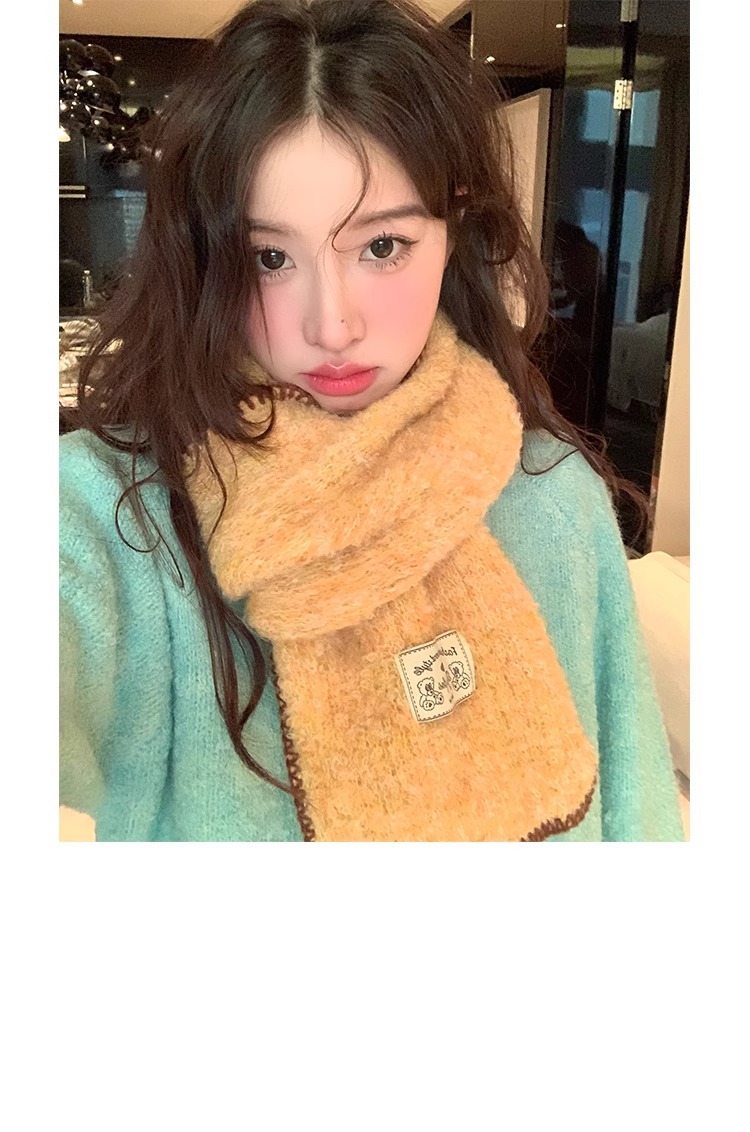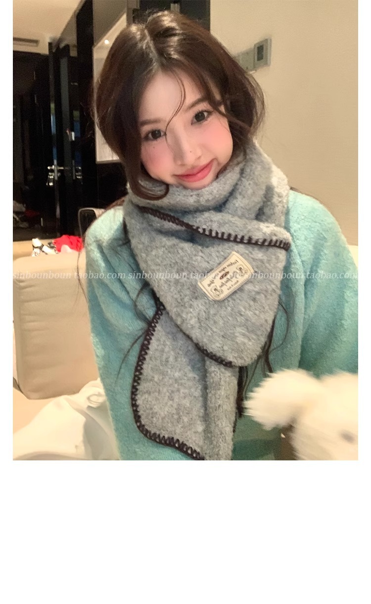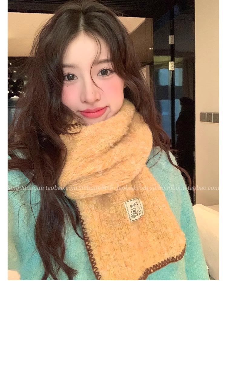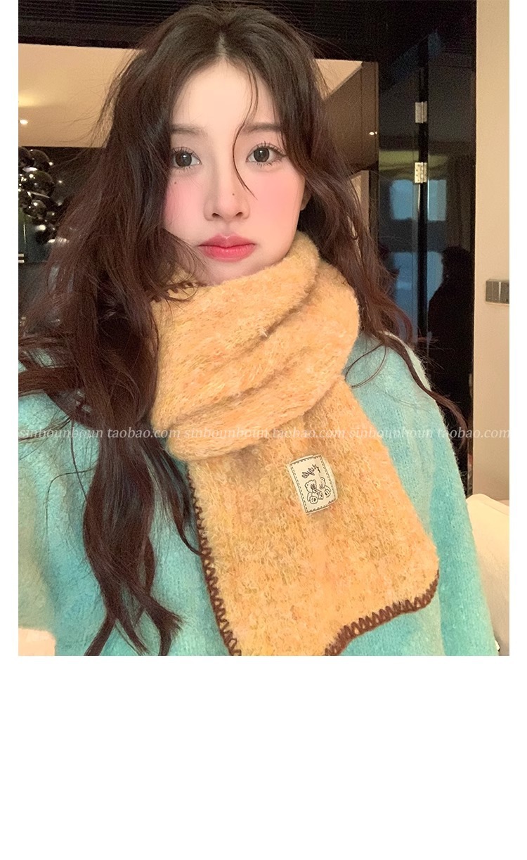 2024 새로운 니트 콘트라스트 컬러 엣지 스카프 여자 겨울 하이 엔드 레트로 두꺼운 따뜻한 한국식 올 매치 스카프스토어 가기