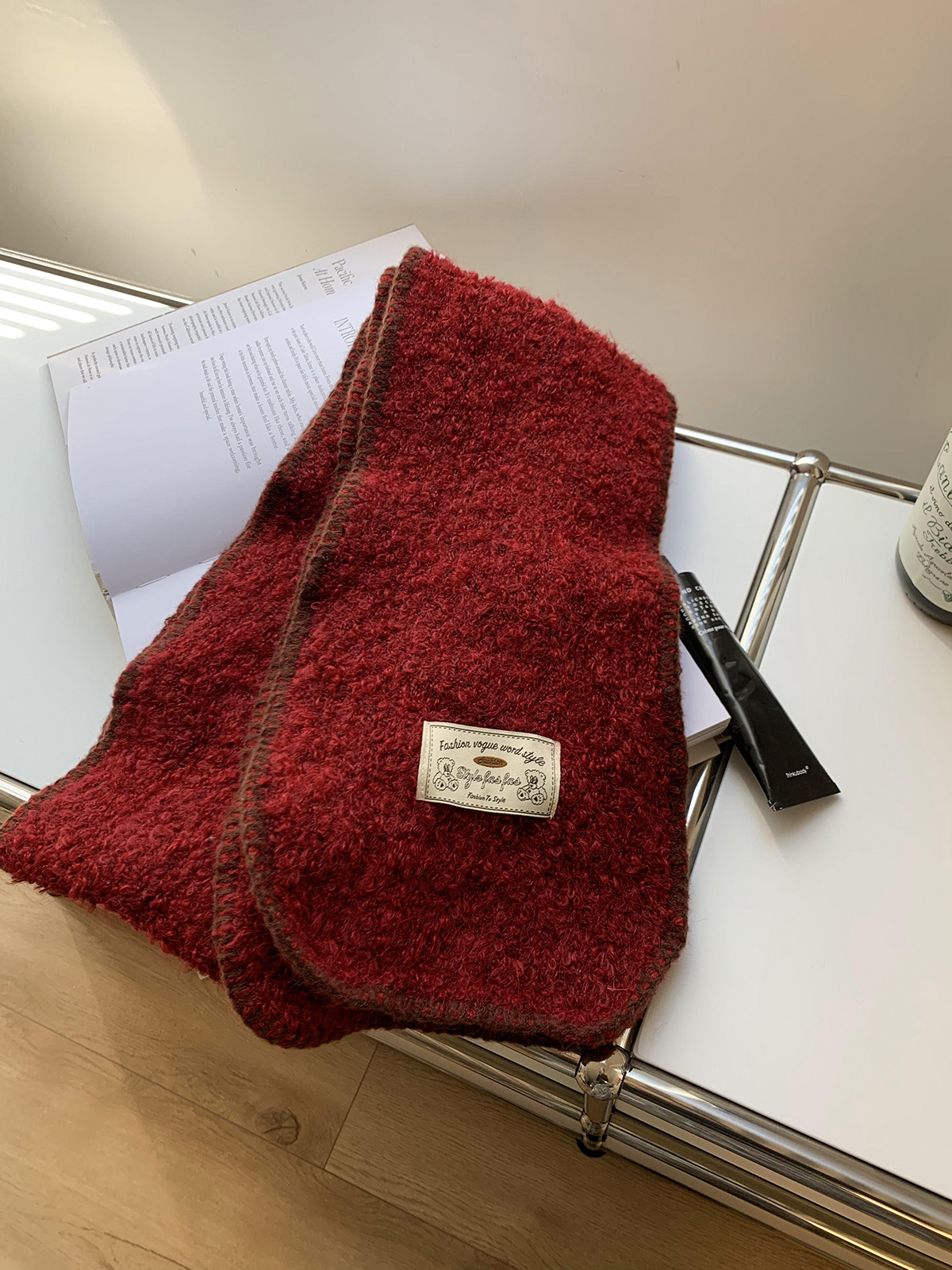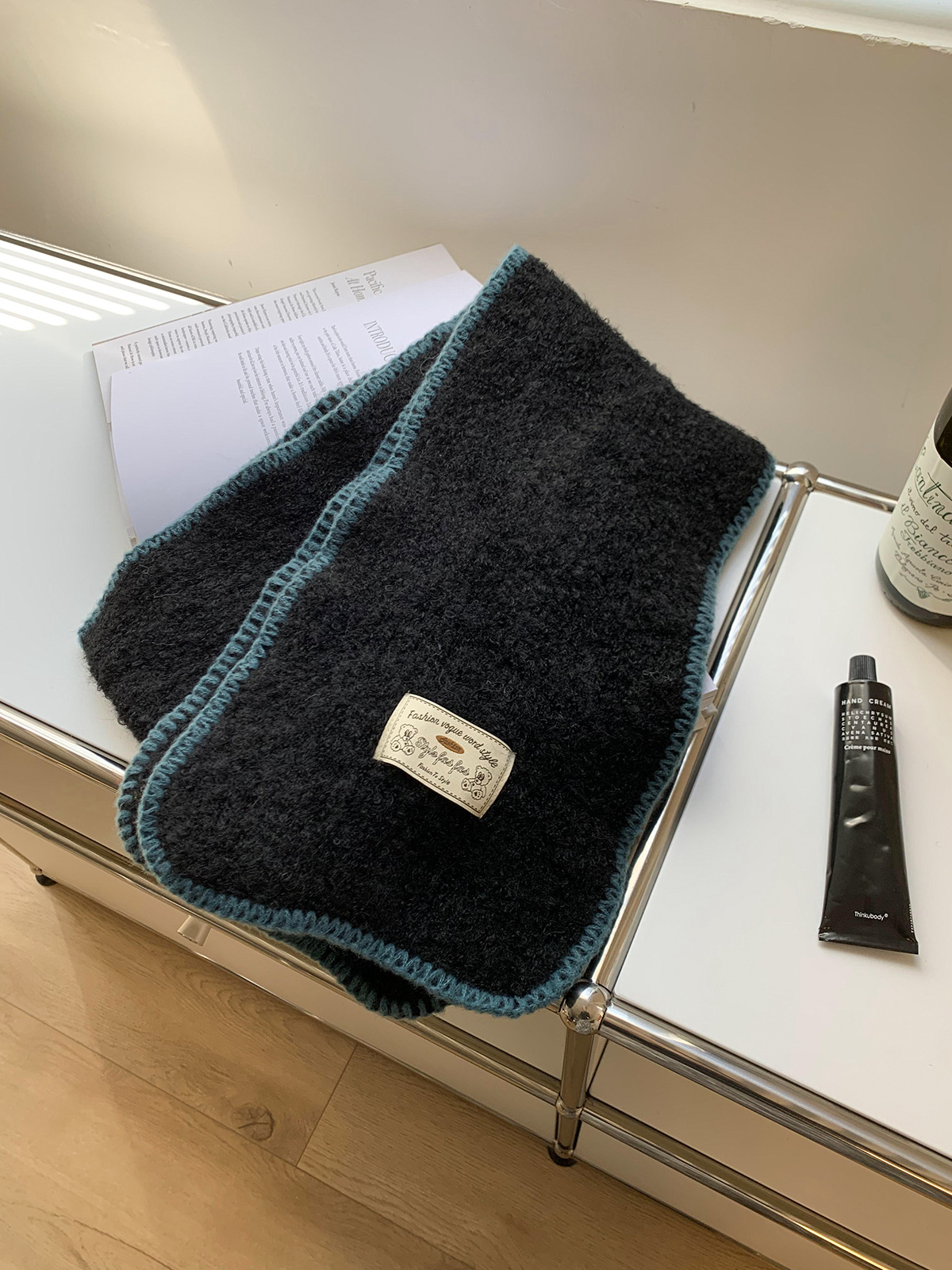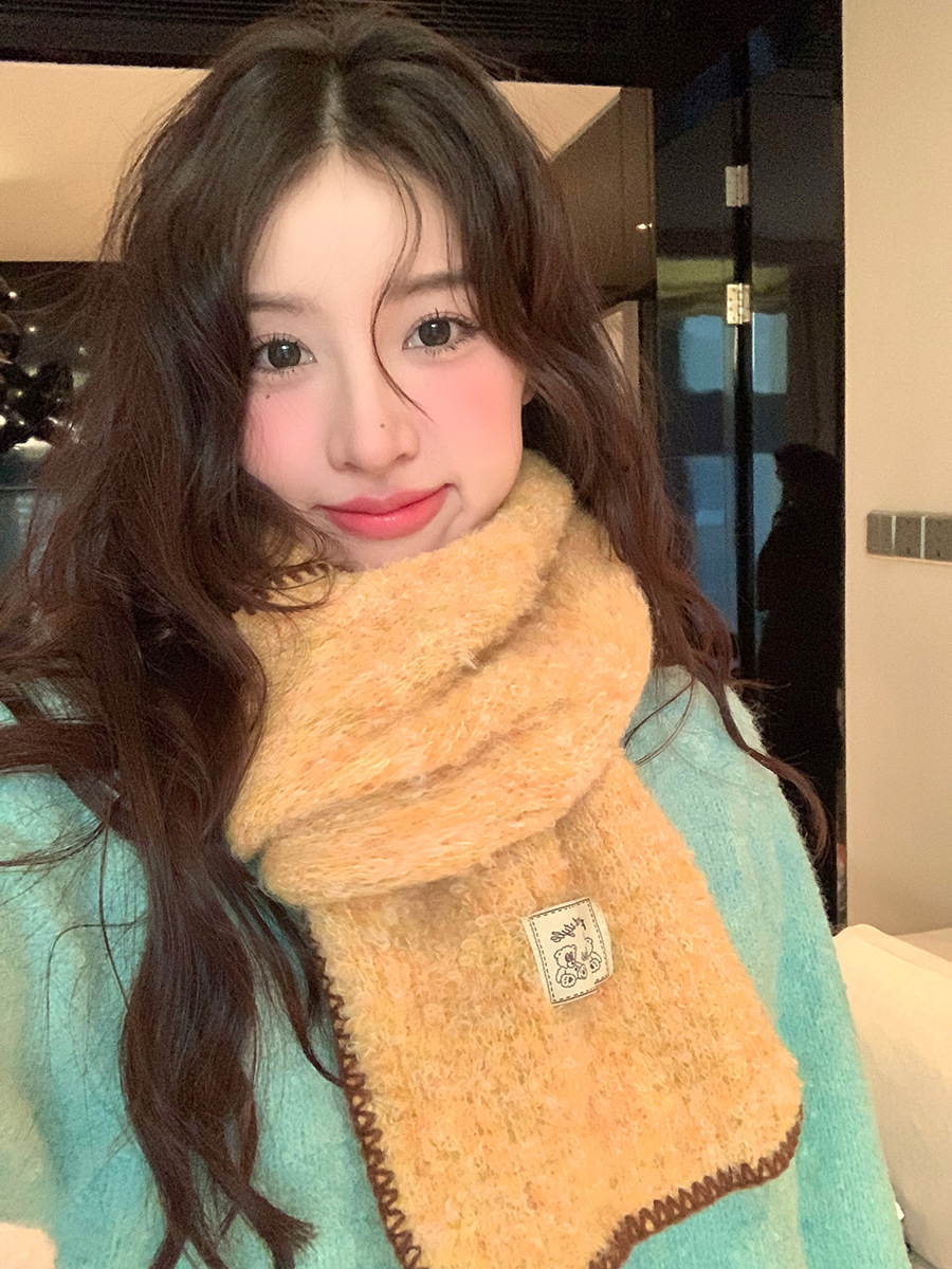 2024 새로운 니트 콘트라스트 컬러 엣지 스카프 여자 겨울 하이 엔드 레트로 두꺼운 따뜻한 한국식 올 매치 스카프스토어 가기