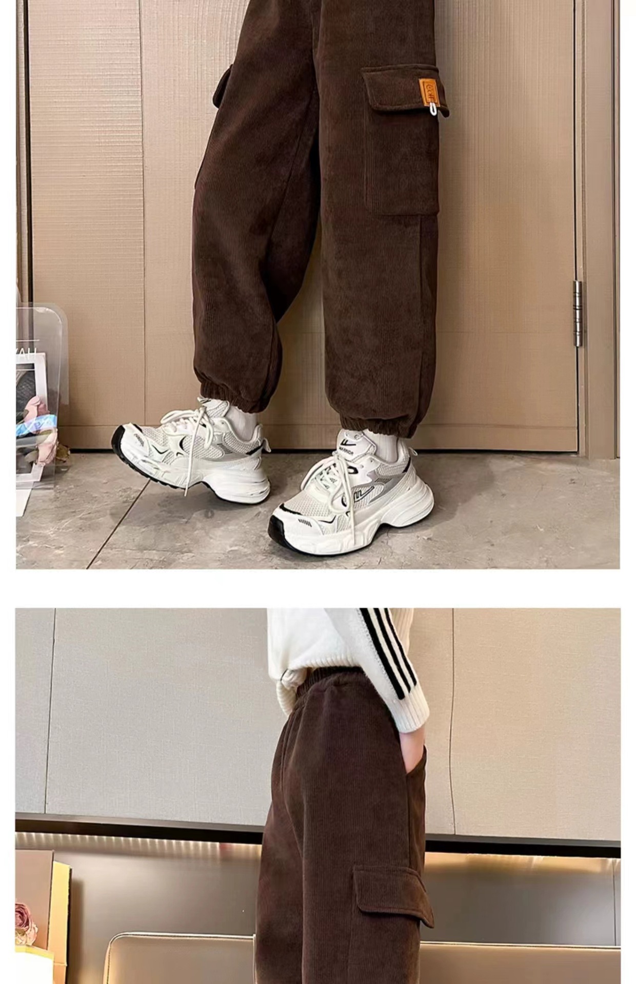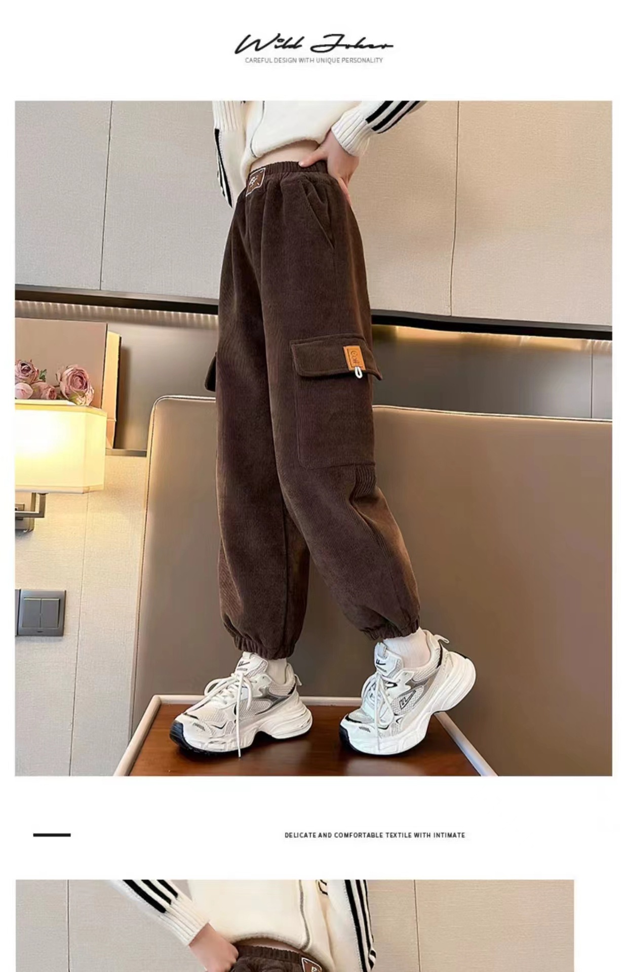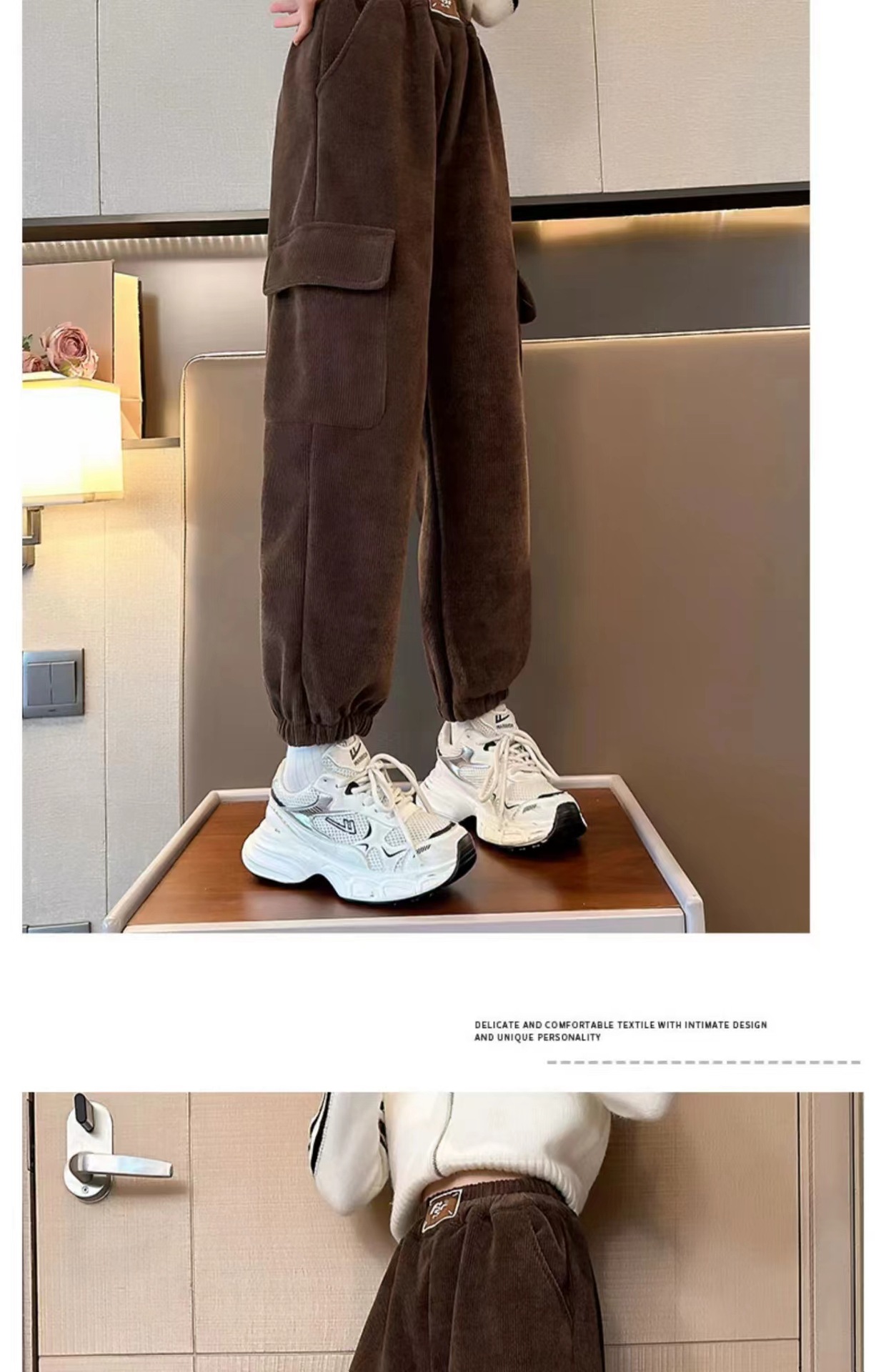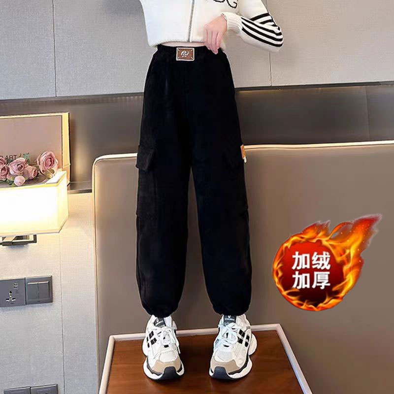 2024 년 겨울 기모 여아 주공 바지 새로운 어린이 새 유럽면 양털 털 툴링 캐주얼 바지스토어 가기