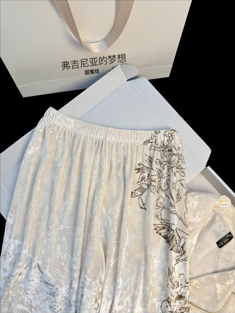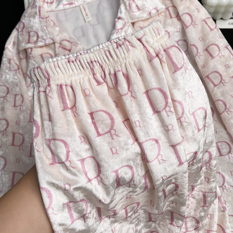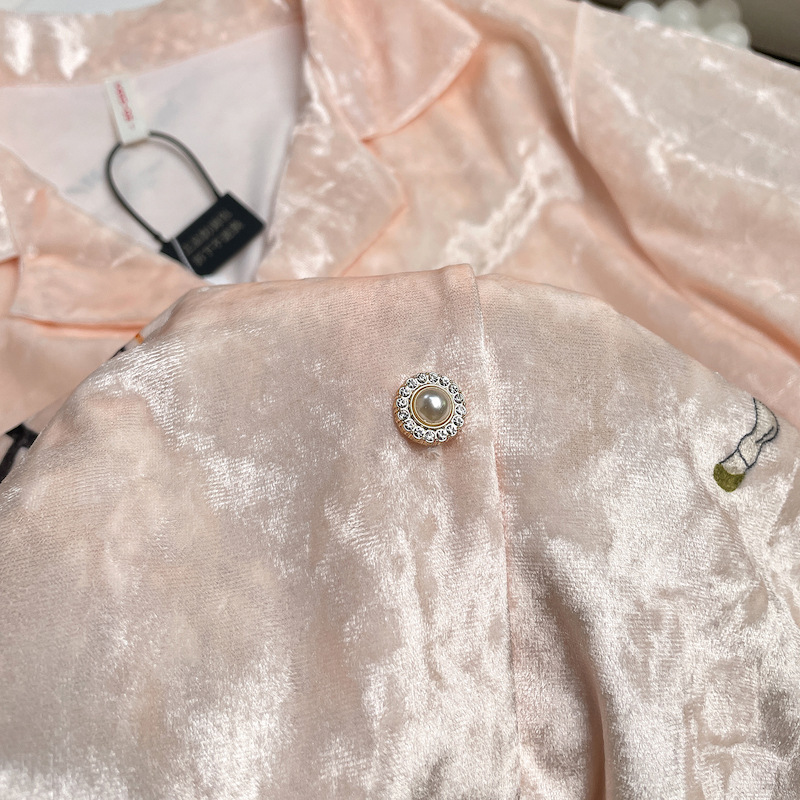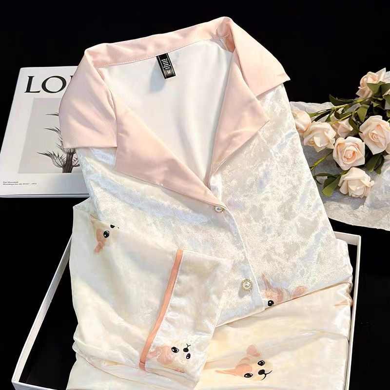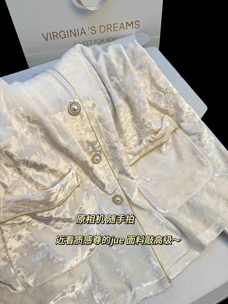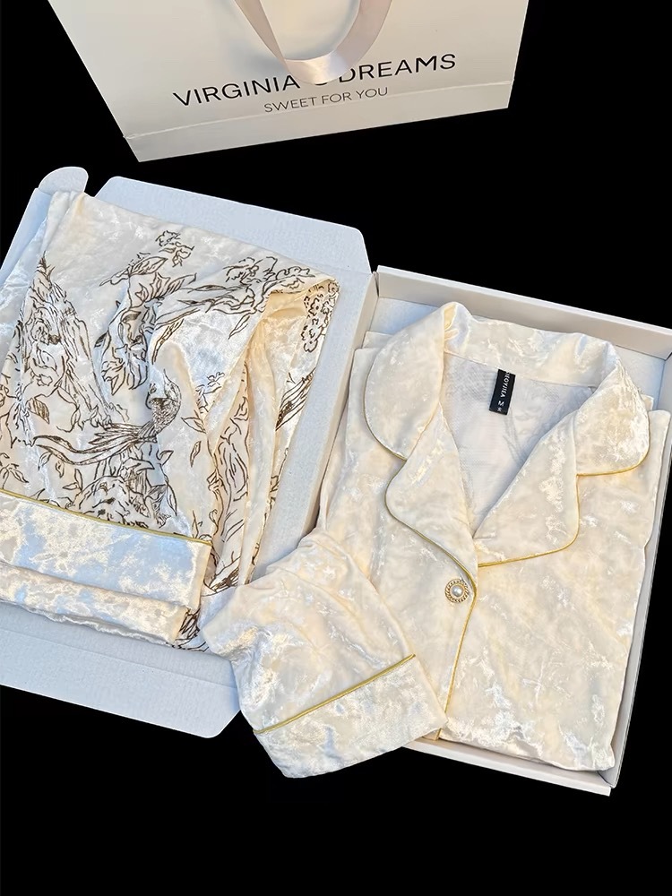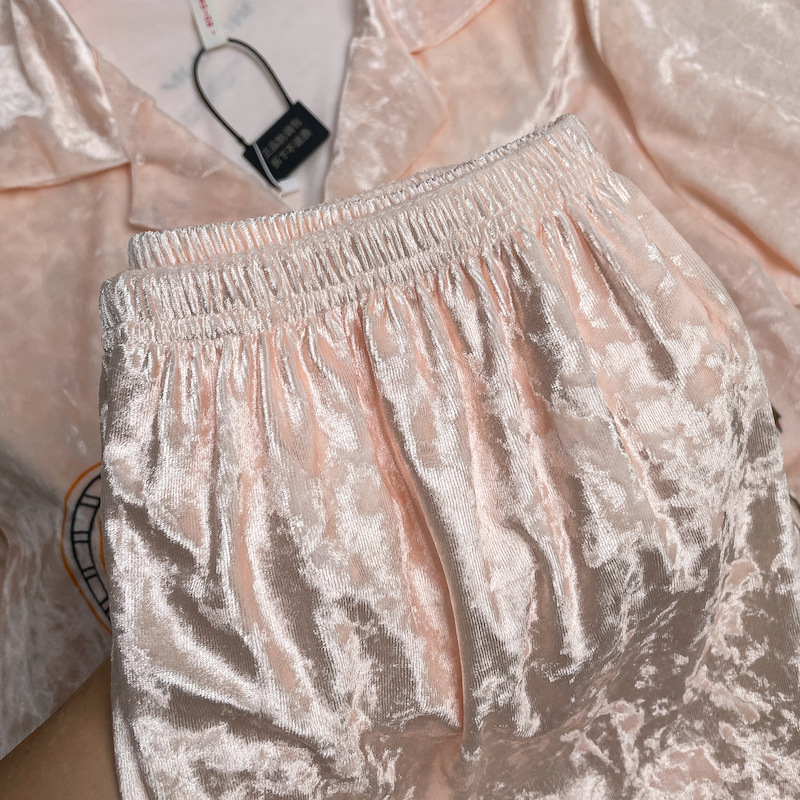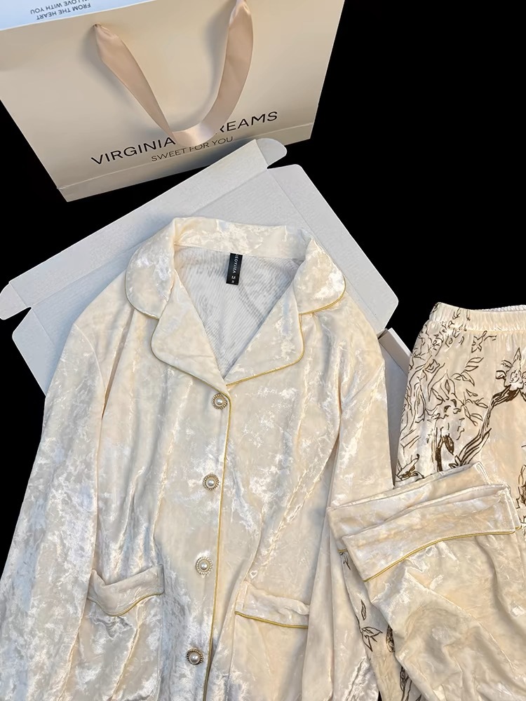 가을 겨울 신상 골드 벨벳 잠옷 여성 세트 골드 다이아몬드 벨벳 홈웨어 라펠 디자인 고급스러운 인기 라이브 방송스토어 가기