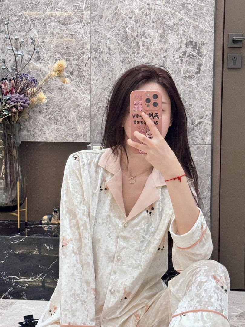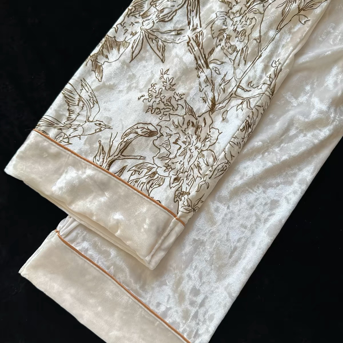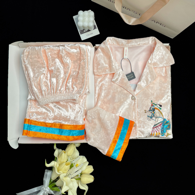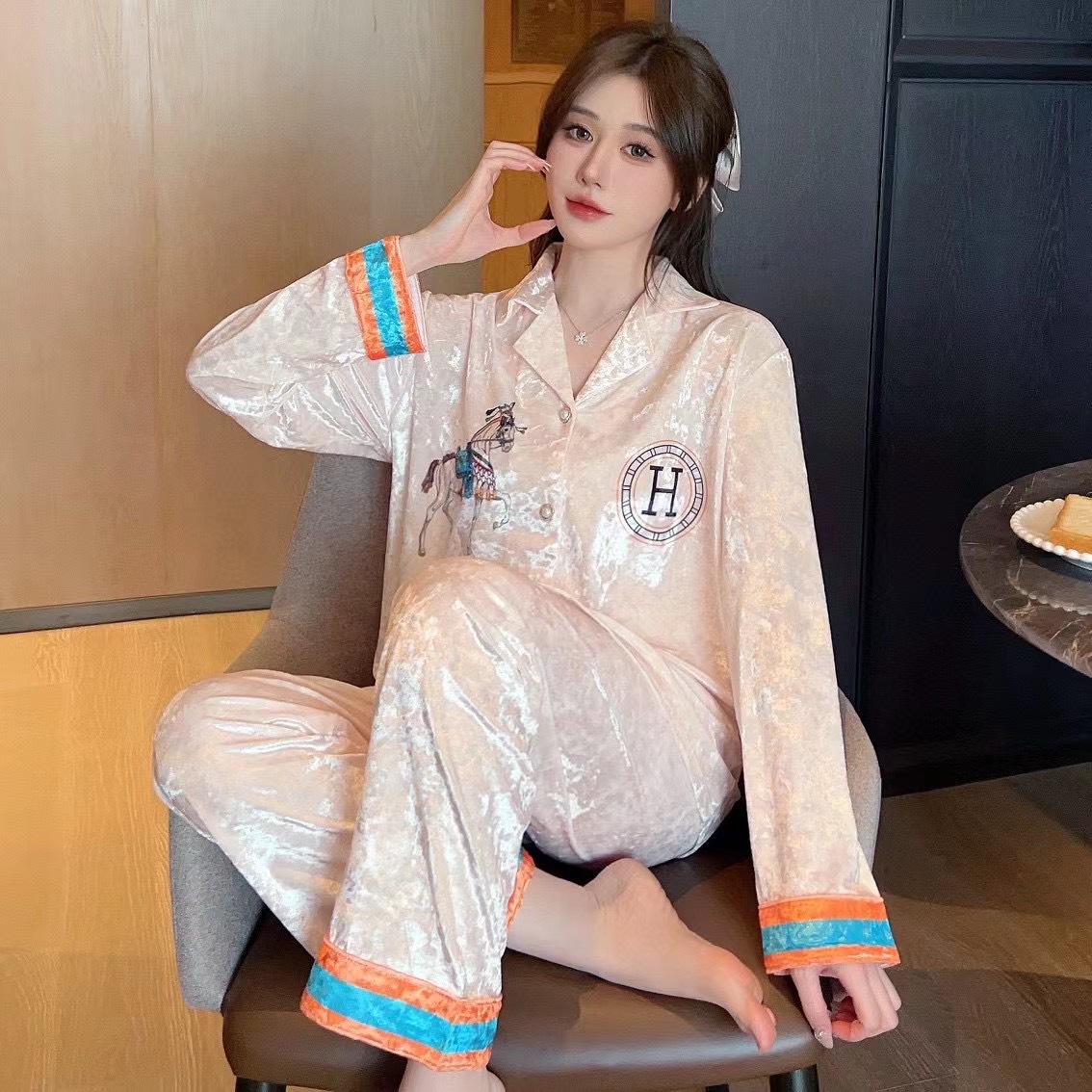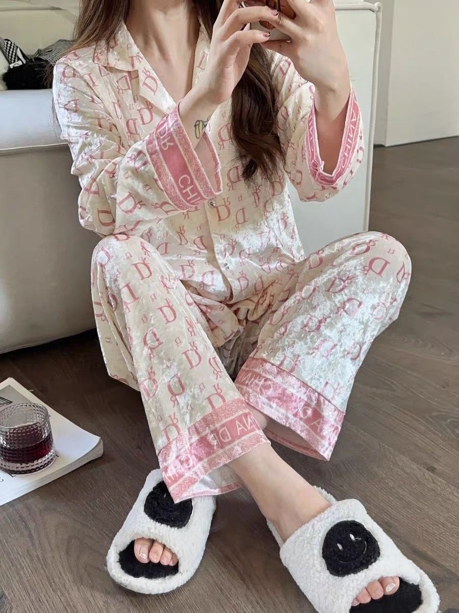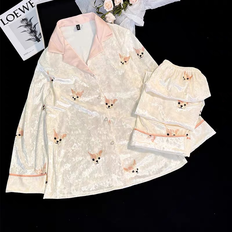 가을 겨울 신상 골드 벨벳 잠옷 여성 세트 골드 다이아몬드 벨벳 홈웨어 라펠 디자인 고급스러운 인기 라이브 방송스토어 가기