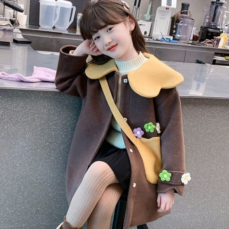 소녀 모직 코트 서양식 달콤한 두꺼운 면 어린이 모직 코트 어린 소녀를위한 따뜻한 가을과 겨울 착용 봄과 가을스토어 가기