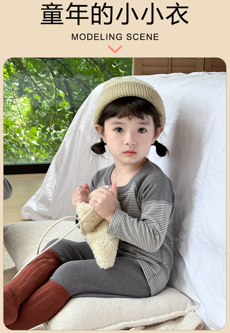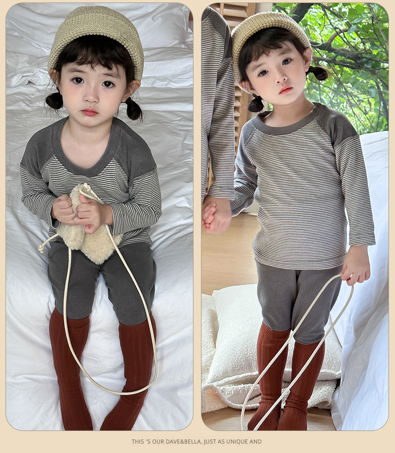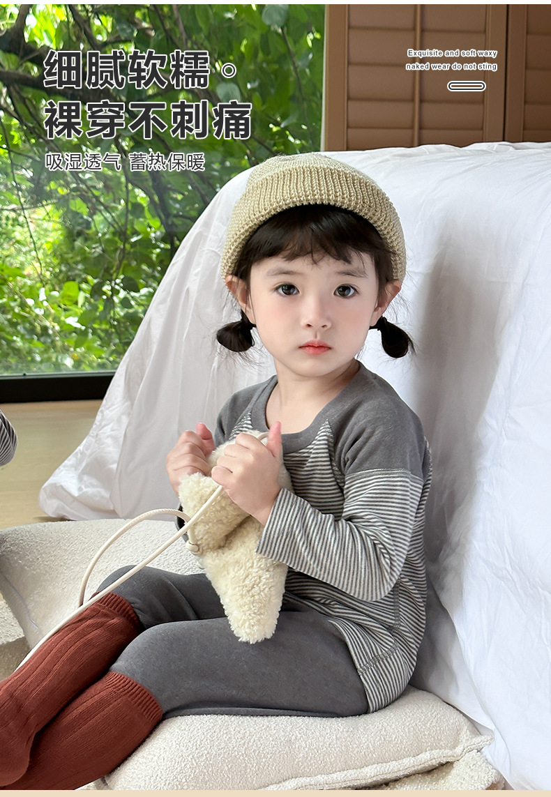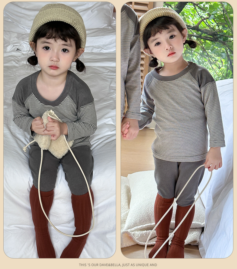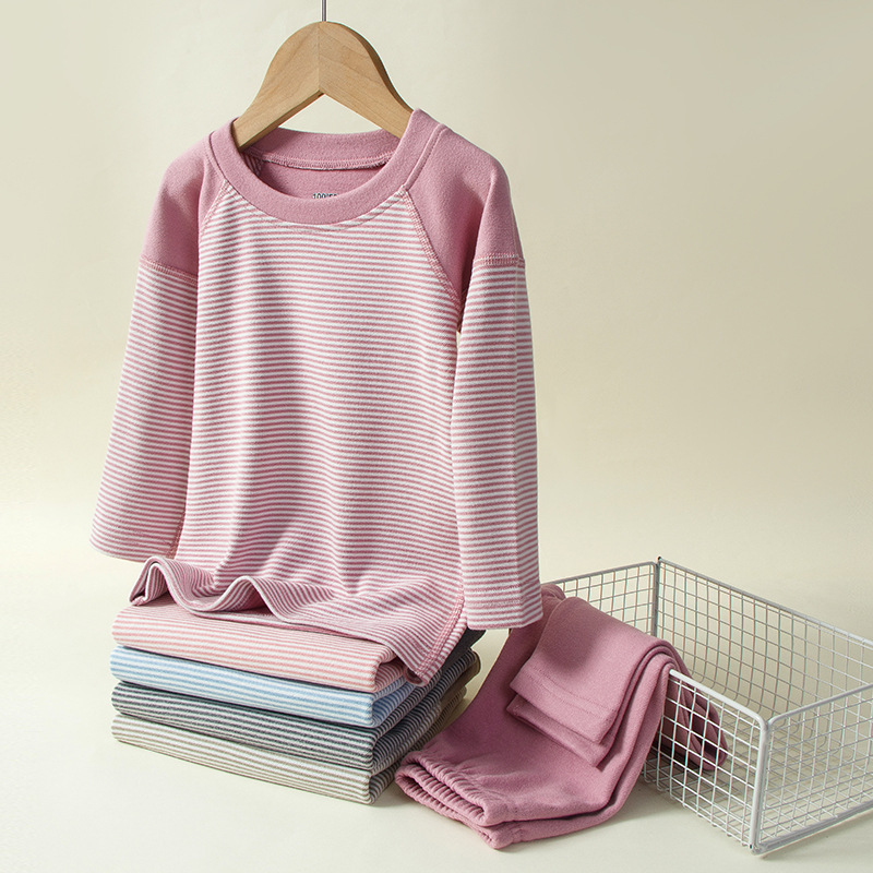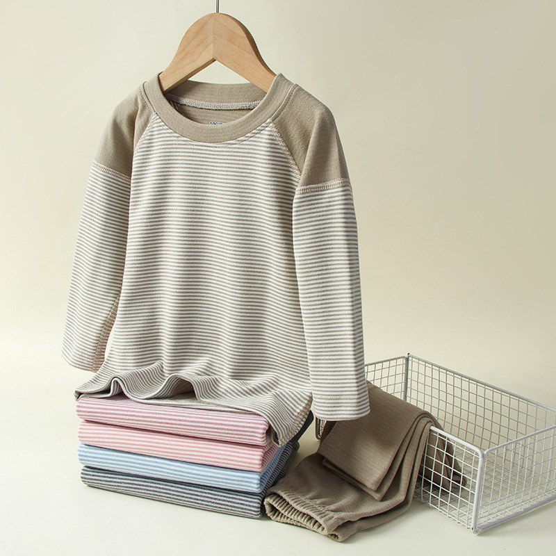 소녀들의 열 속옷 가을과 겨울 줄무늬 단풍 옷 가을 바지 세트 소년 아기 보투 셔츠 어린이 잠옷스토어 가기