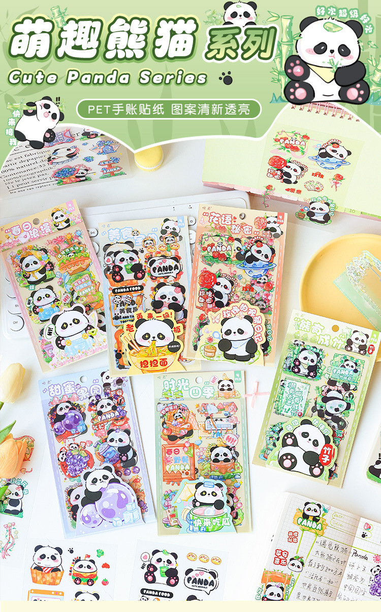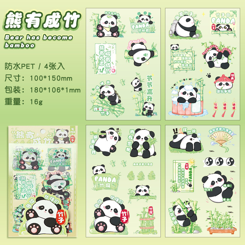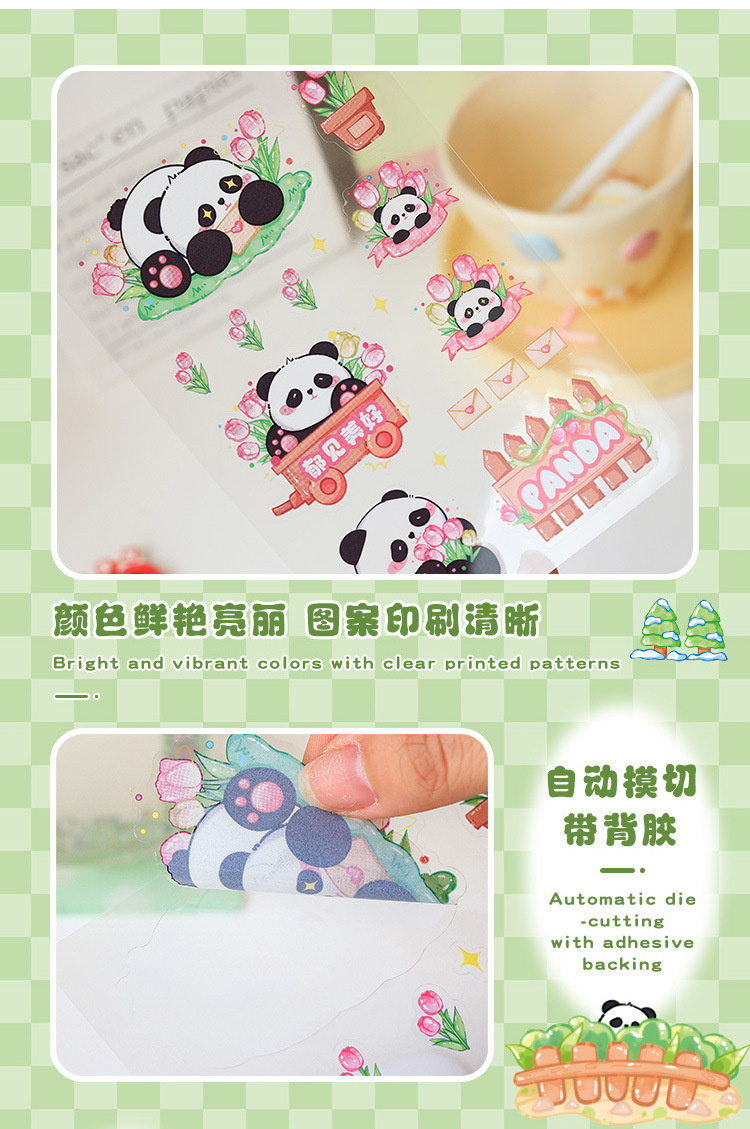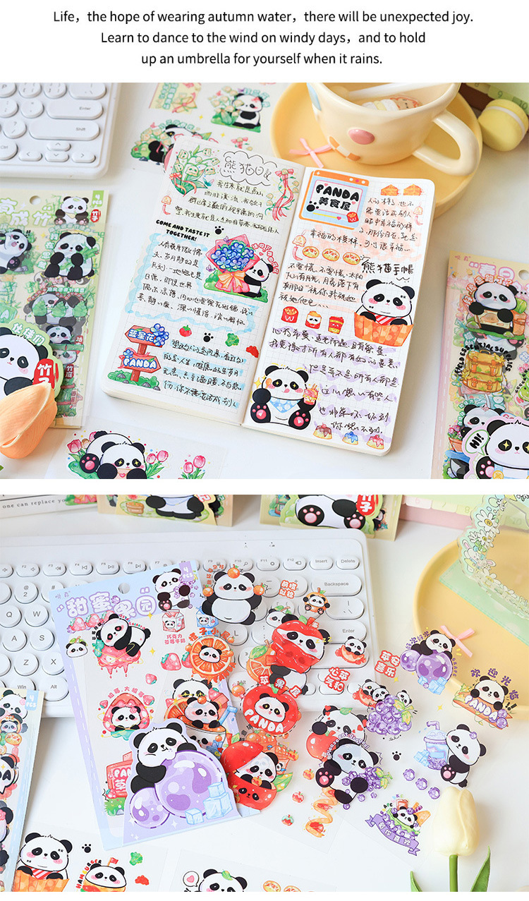 모에 재미 팬더 시리즈 애완 동물 다이 컷 방수 스티커 4 만화 귀여운 팬더 손 계정 장식 재료 스티커스토어 가기