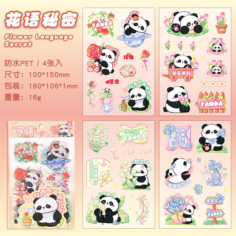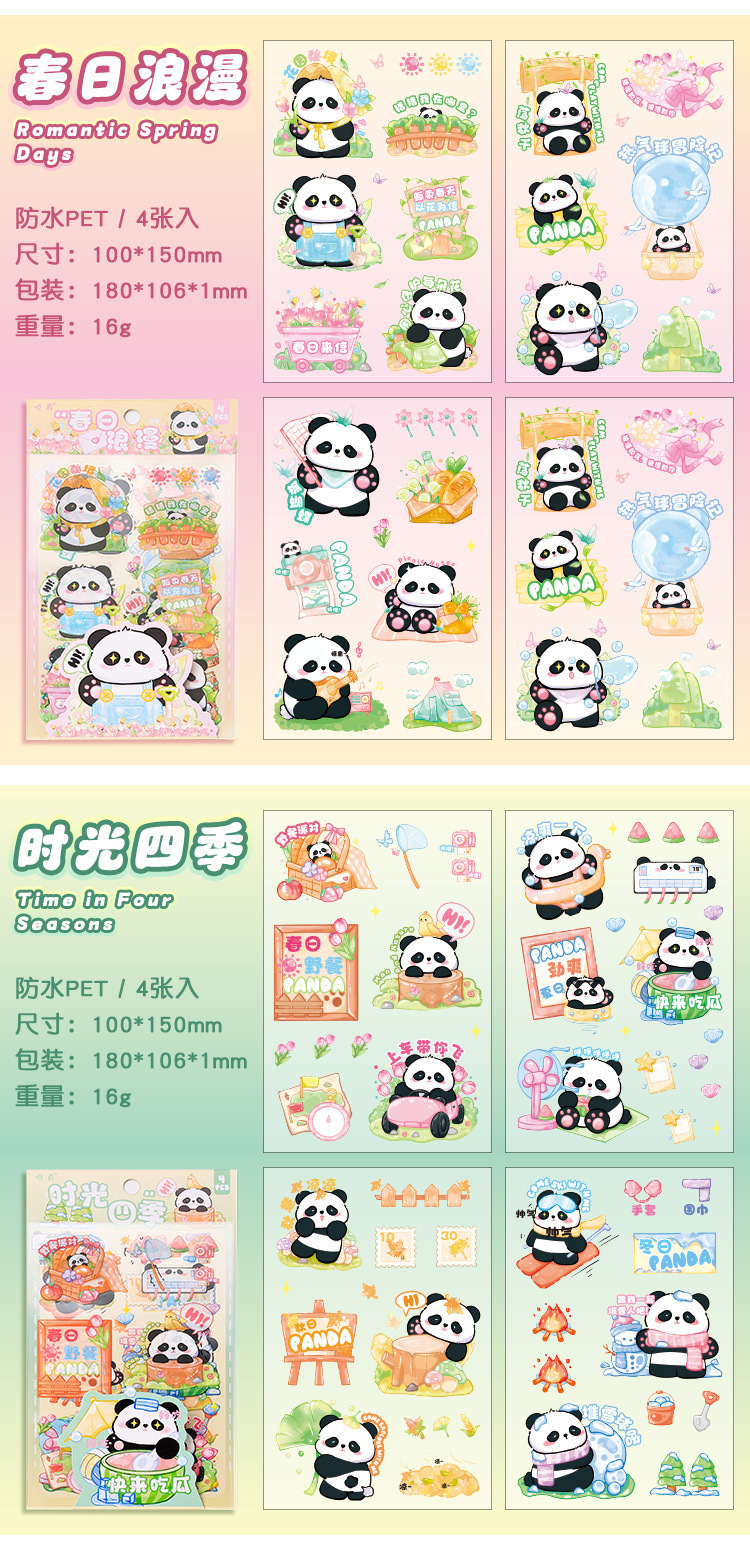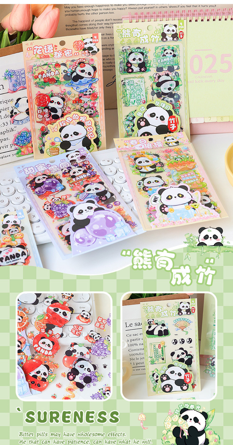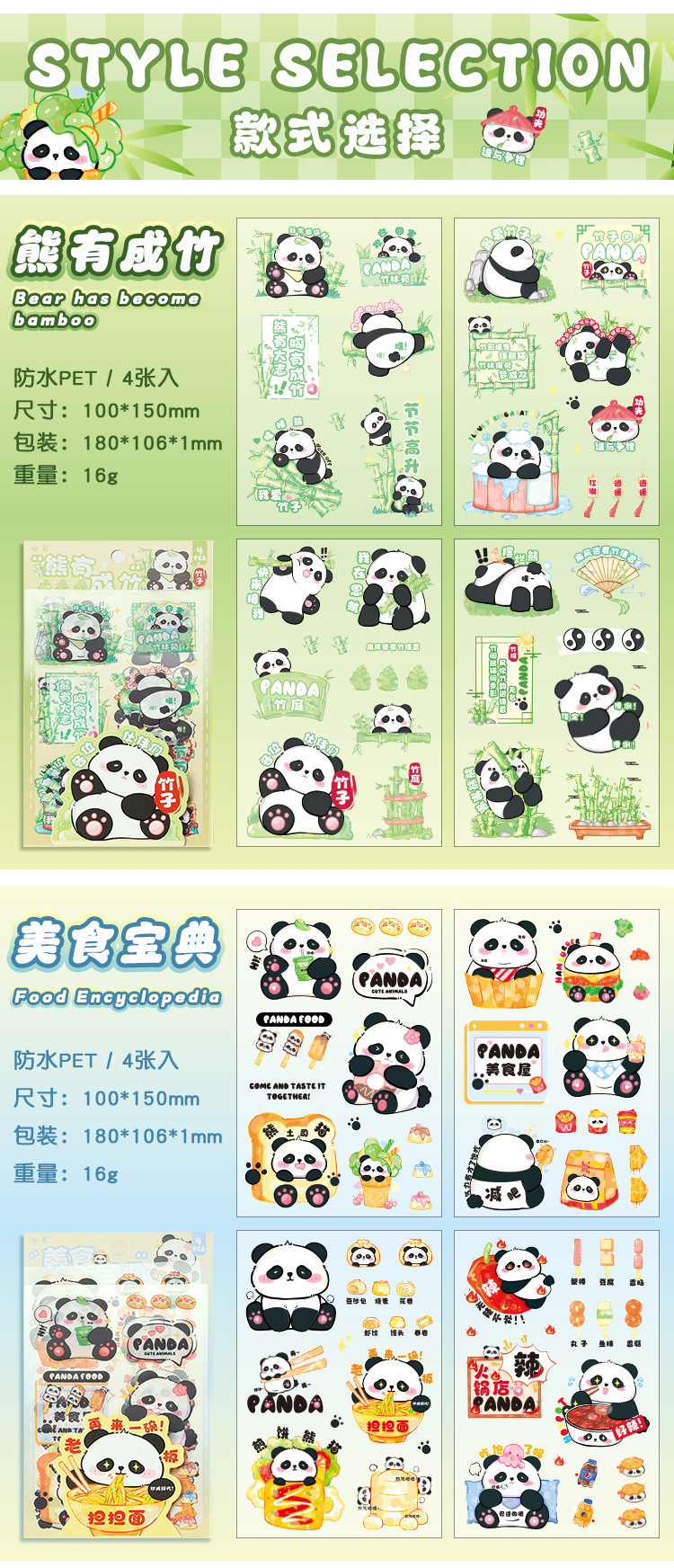 모에 재미 팬더 시리즈 애완 동물 다이 컷 방수 스티커 4 만화 귀여운 팬더 손 계정 장식 재료 스티커스토어 가기