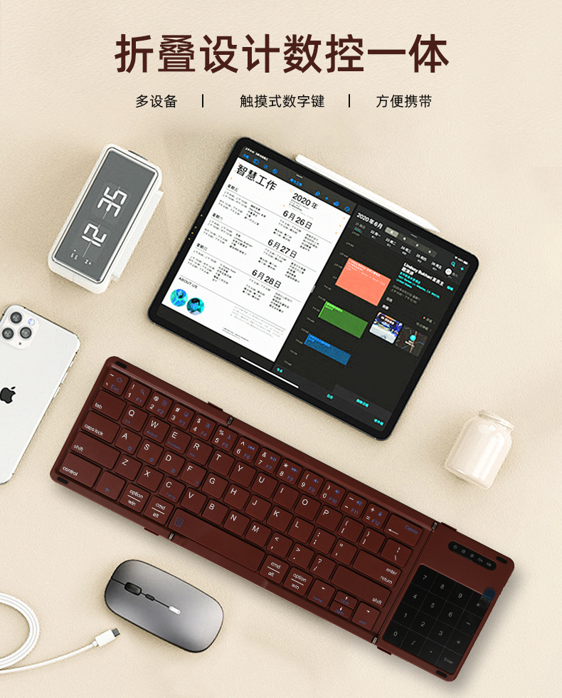 뜨거운 판매 새로운 무선 블루투스 접이식 키보드 터치 패드 디지털 기능 듀얼 모드 접이식 키보드 공장 직접 판매스토어 가기