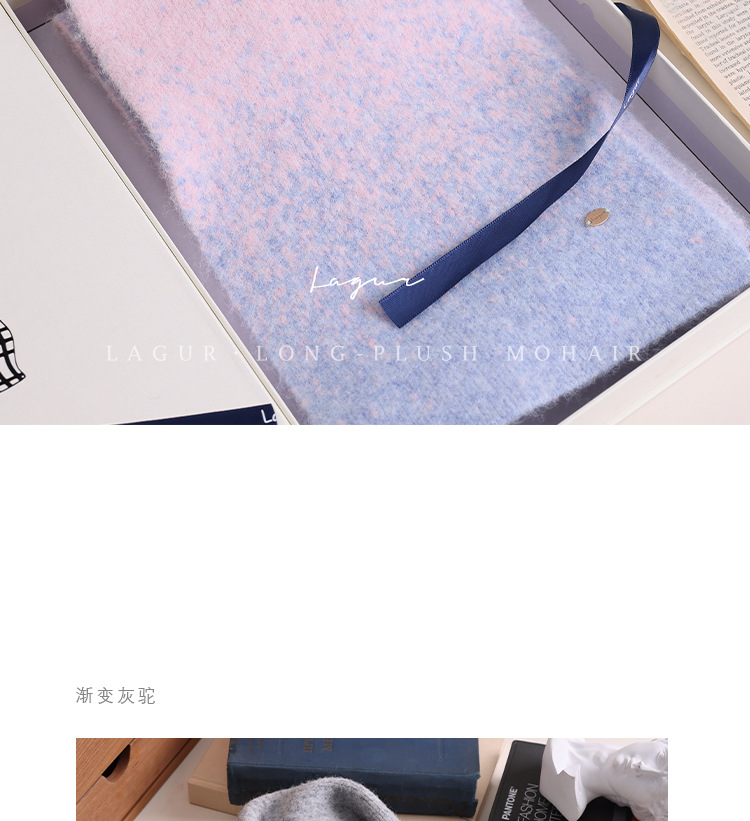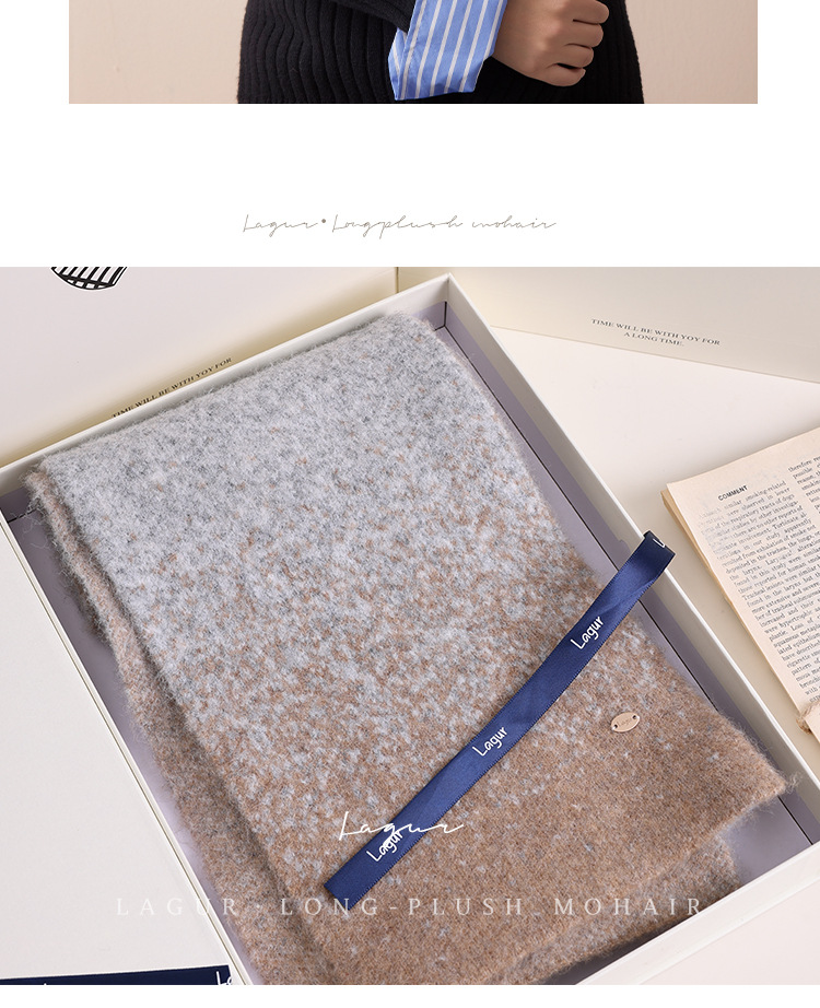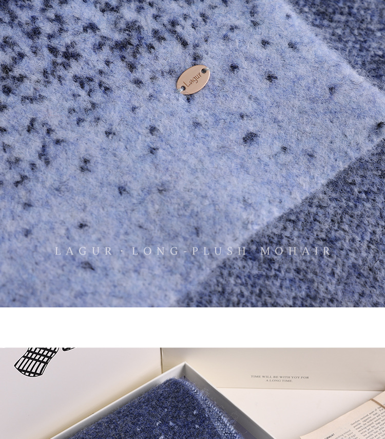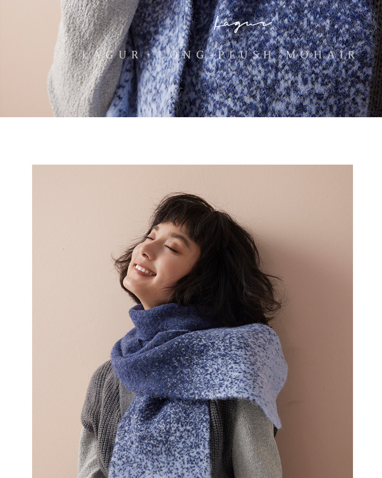 바다 파도를 들어보세요~ 롱벨벳 모헤어 블루 스카프 그라데이션 2024 신작 스카프 여성 가을 겨울 고급 패션스토어 가기