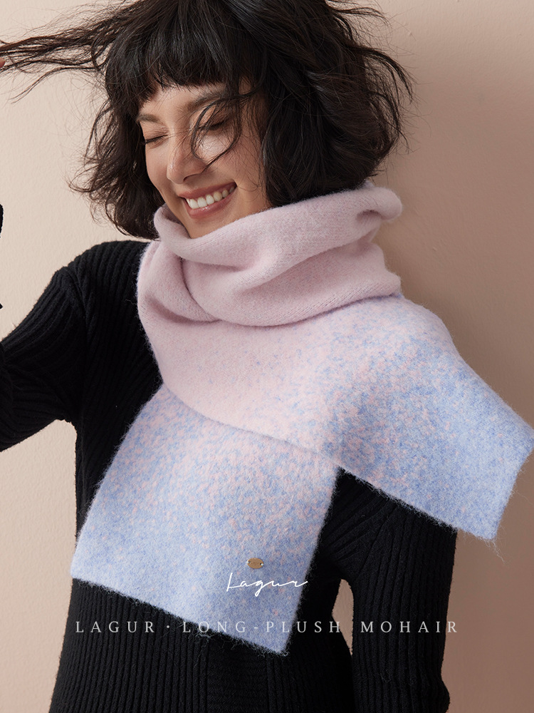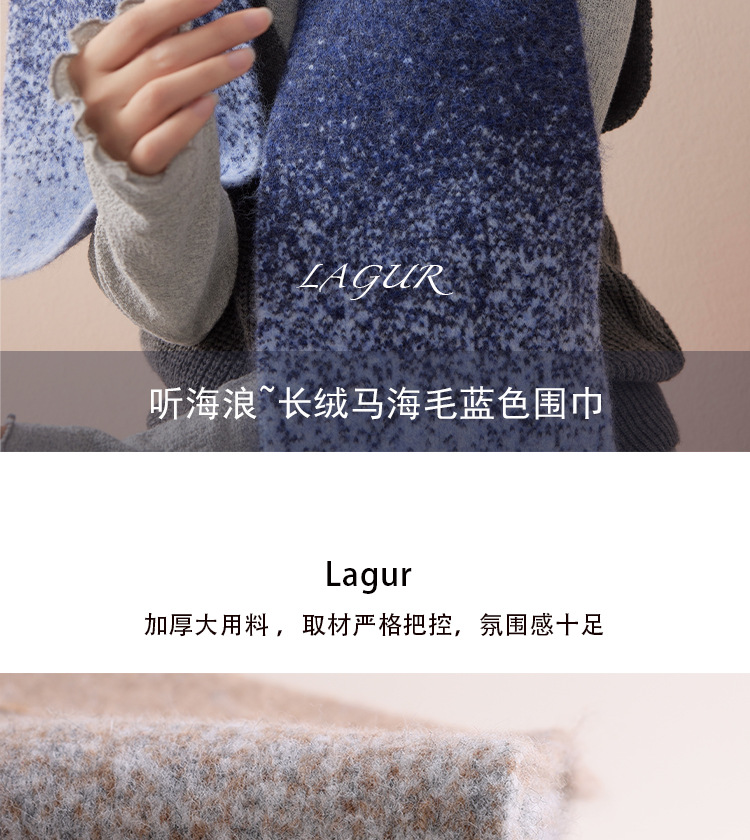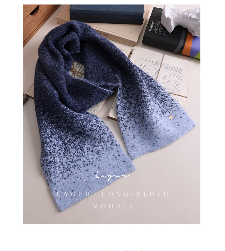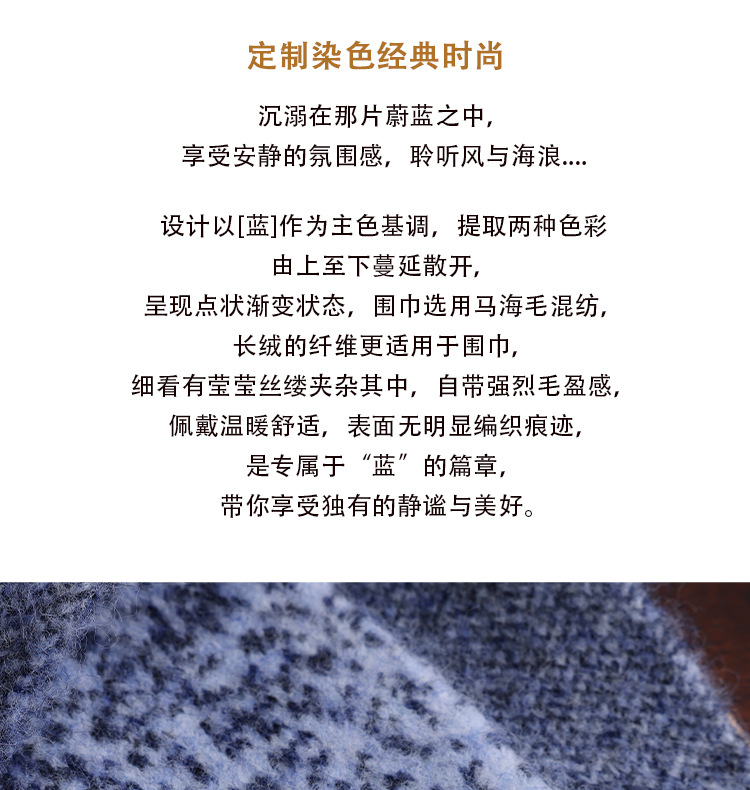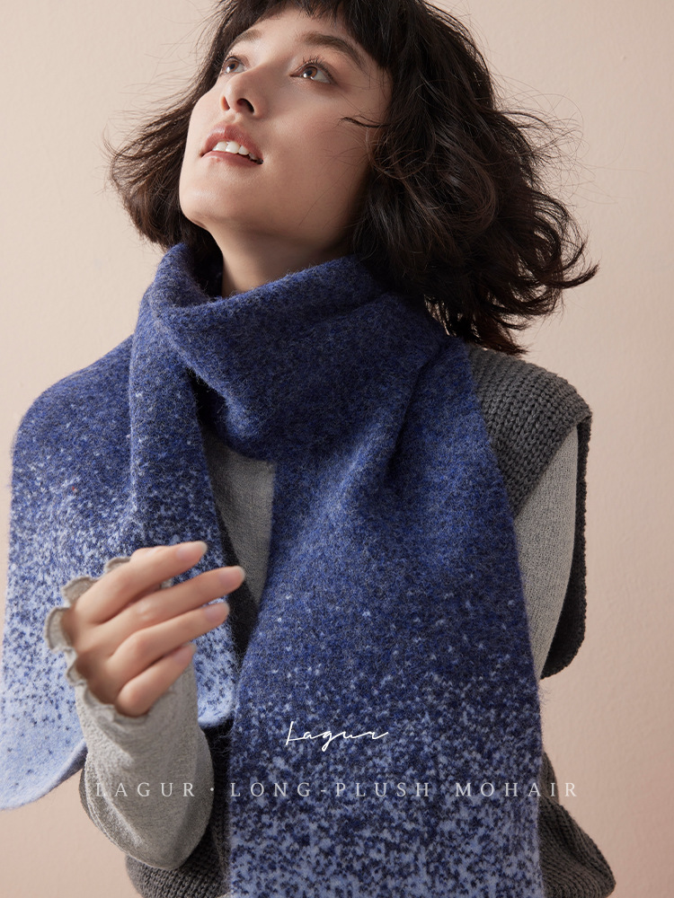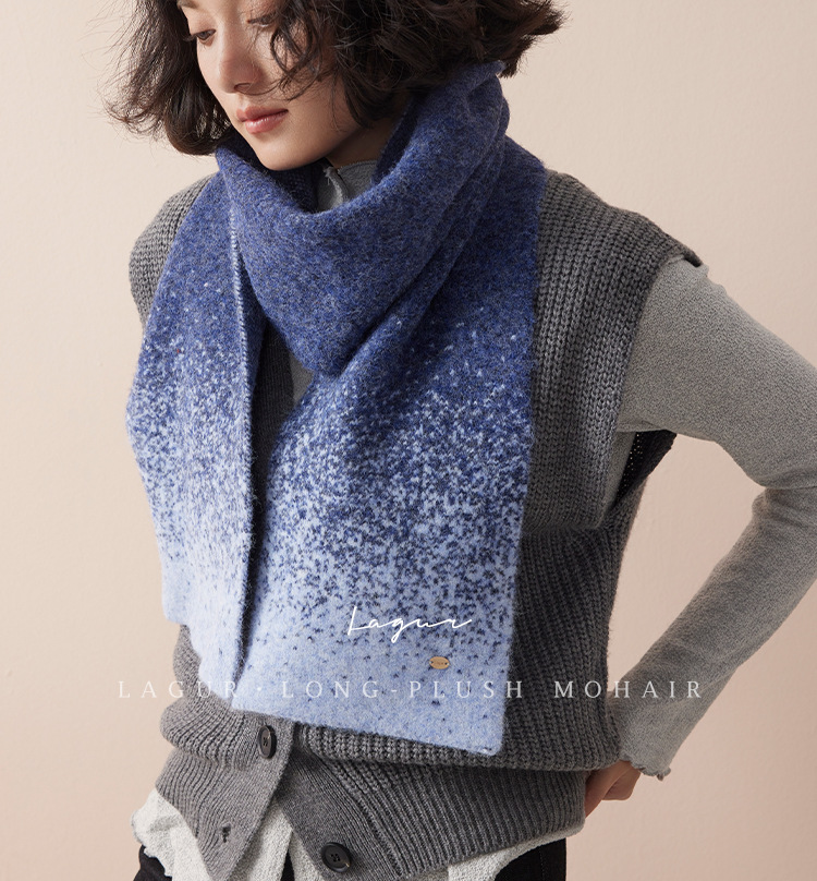 바다 파도를 들어보세요~ 롱벨벳 모헤어 블루 스카프 그라데이션 2024 신작 스카프 여성 가을 겨울 고급 패션