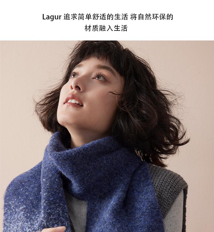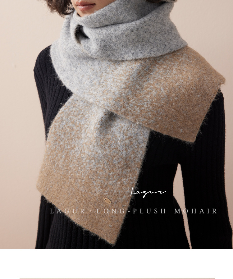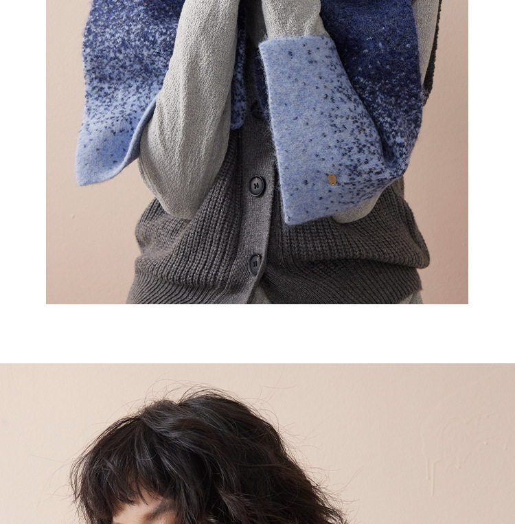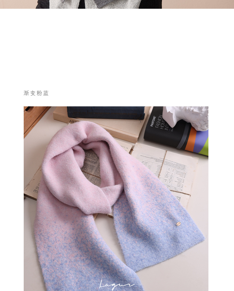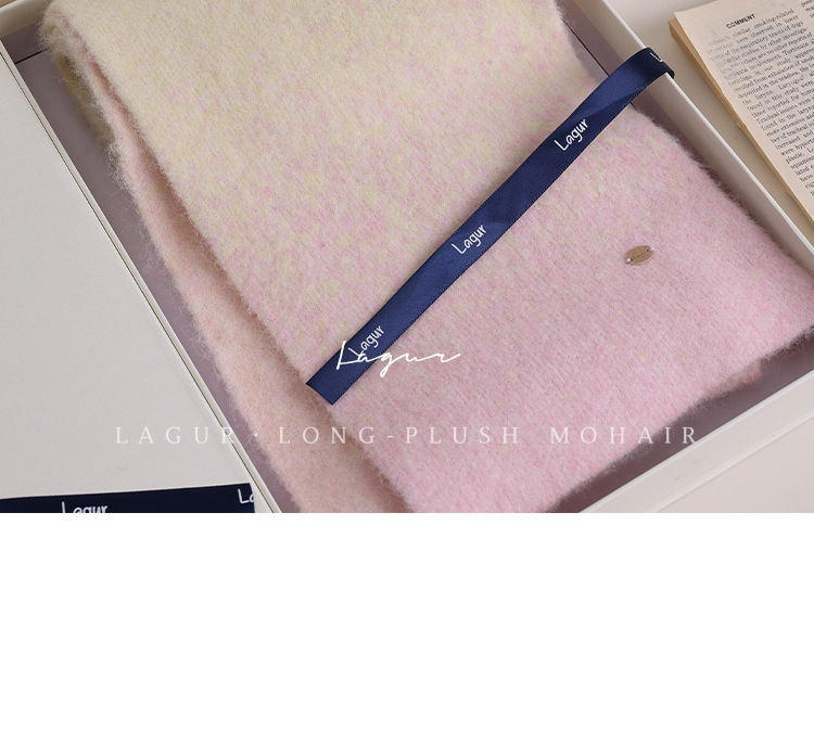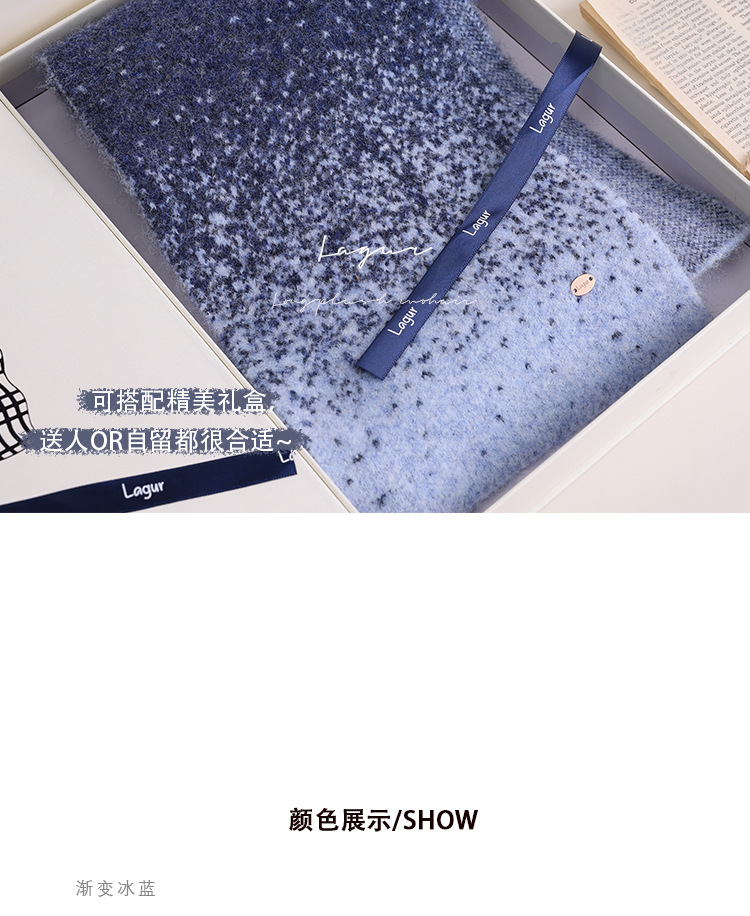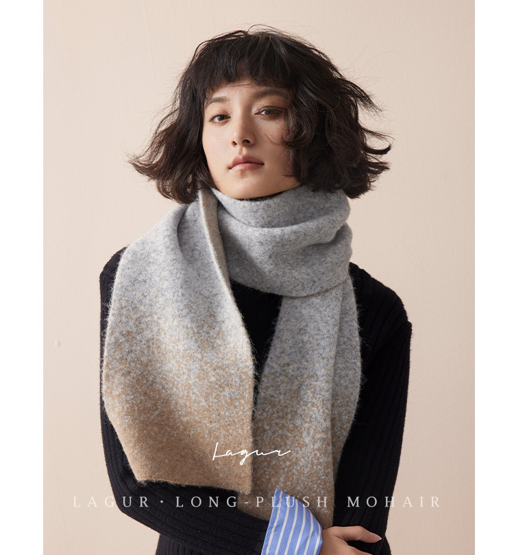 바다 파도를 들어보세요~ 롱벨벳 모헤어 블루 스카프 그라데이션 2024 신작 스카프 여성 가을 겨울 고급 패션