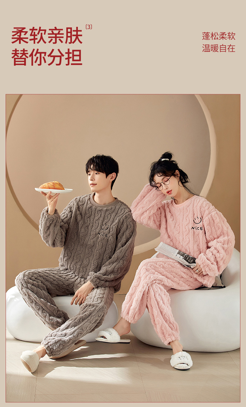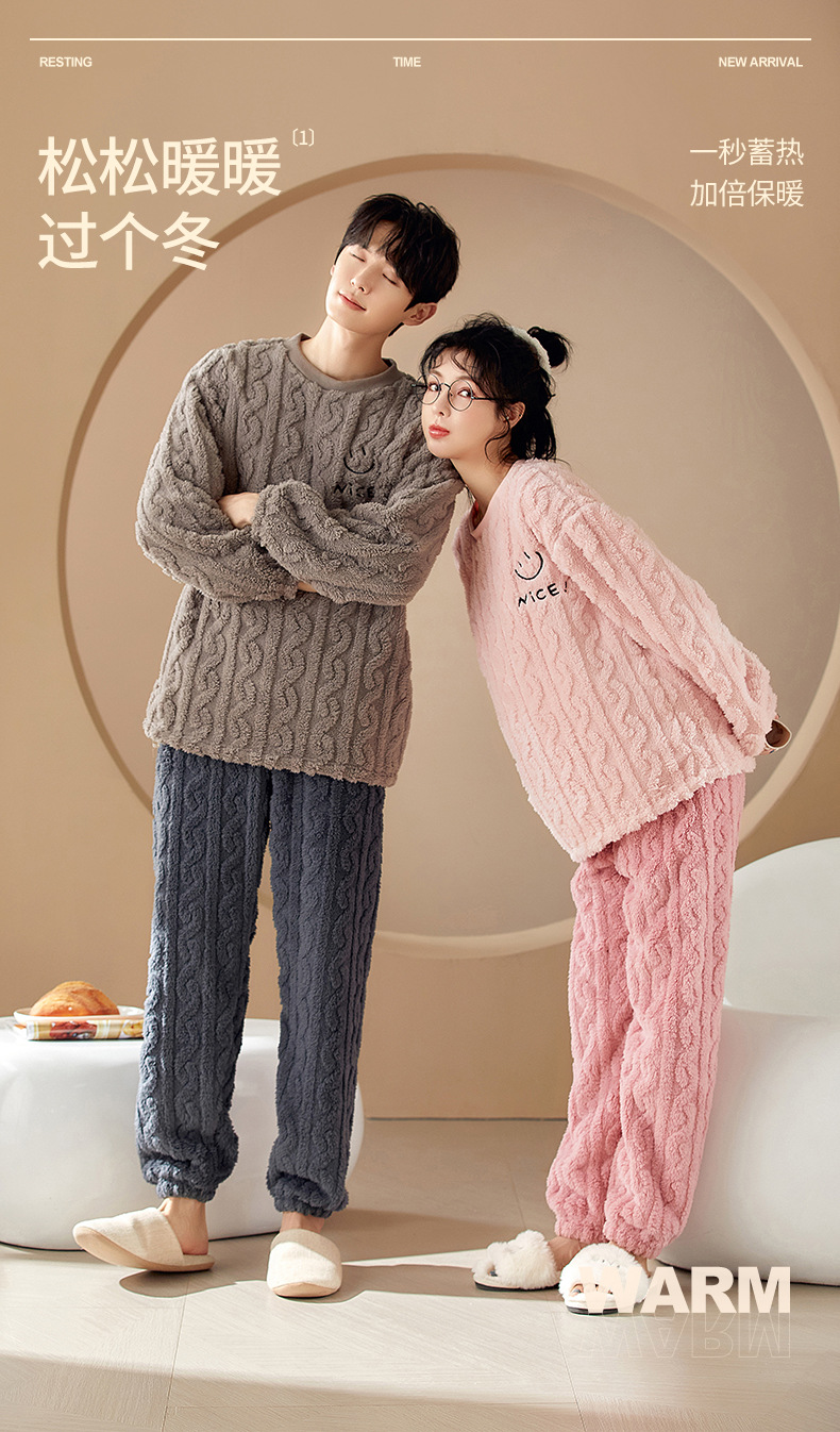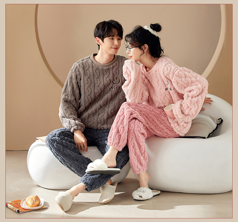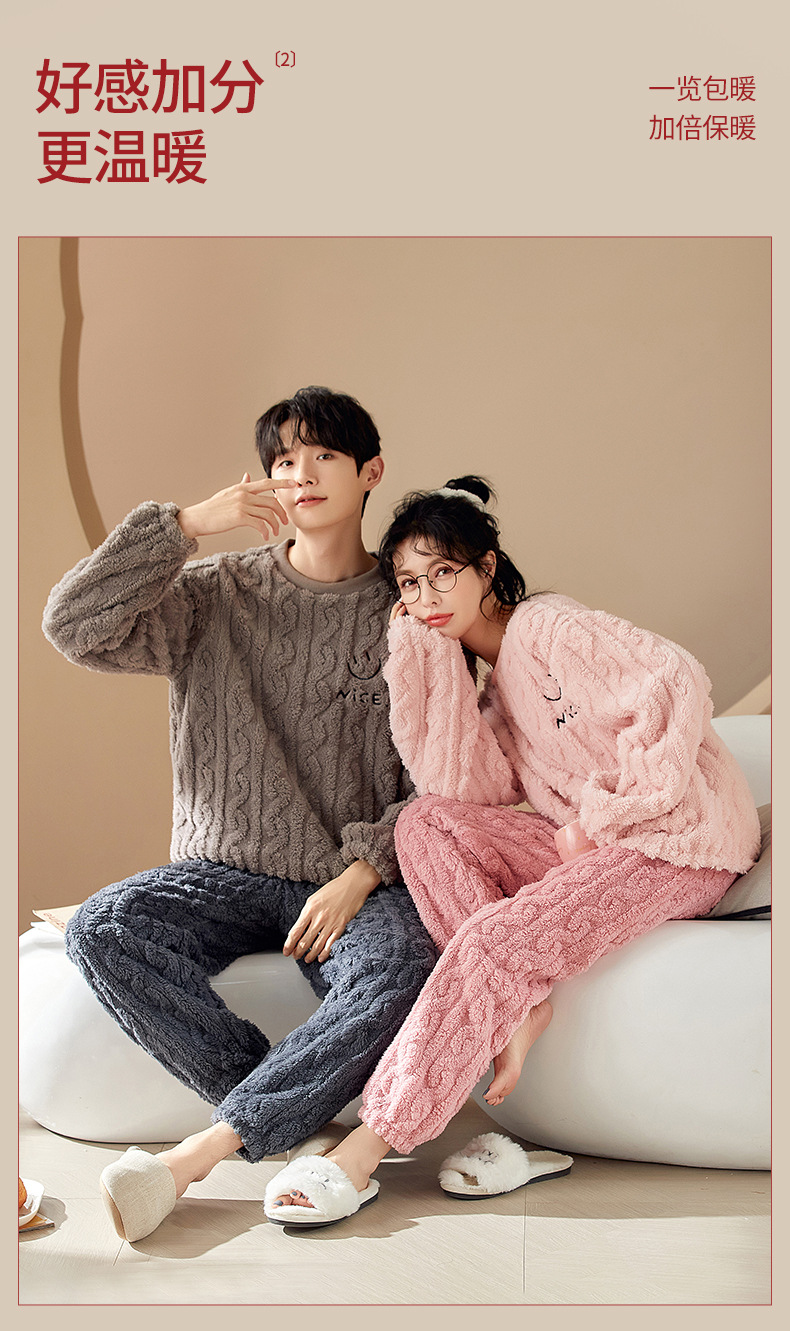 Yu Zhaolin Coral Fleece Pajamas 여성 커플의 가을과 겨울 기모 남성 플란넬 홈 의류 세트