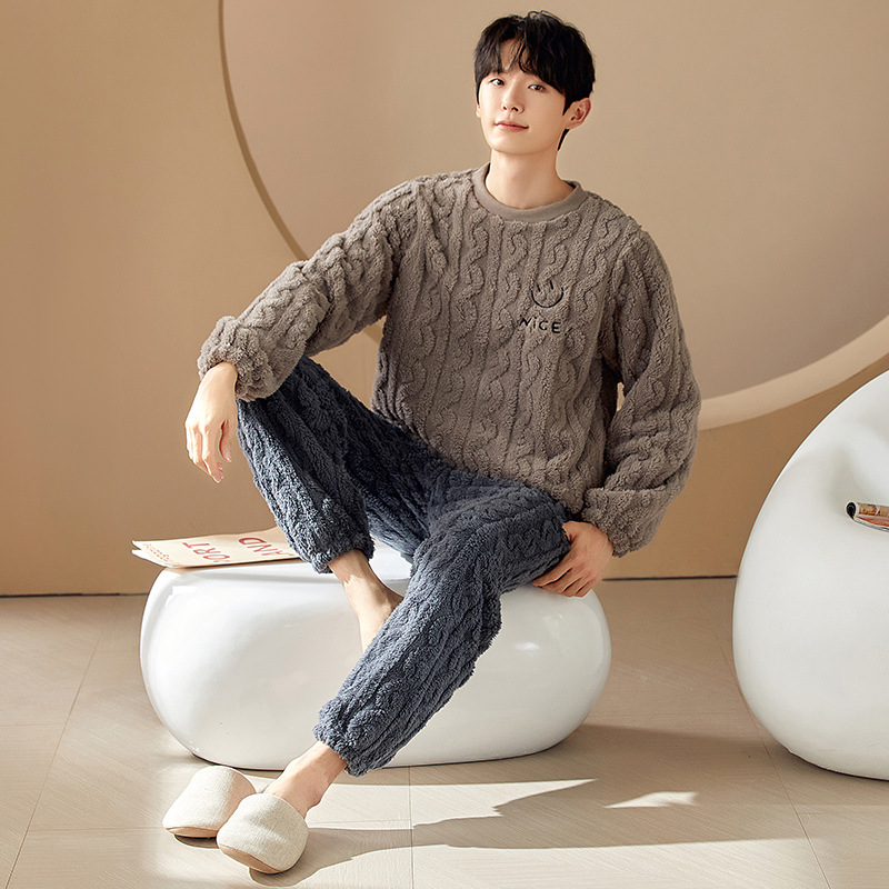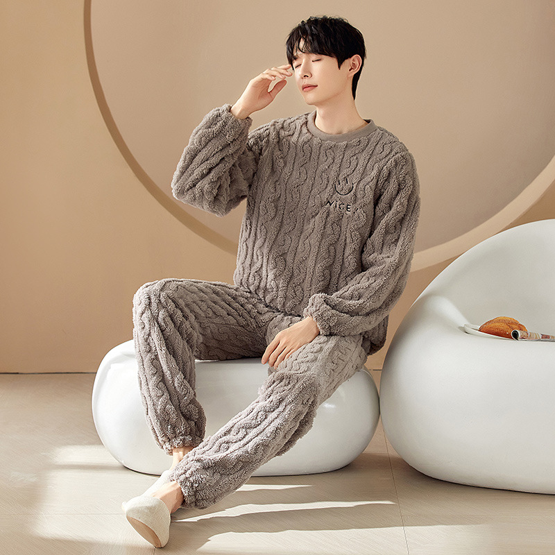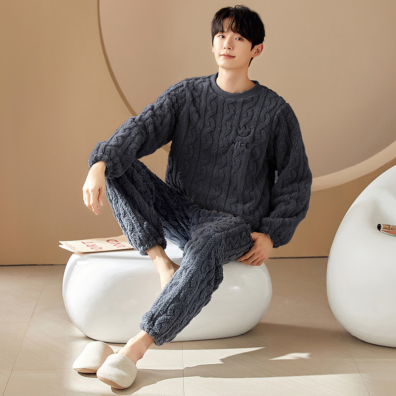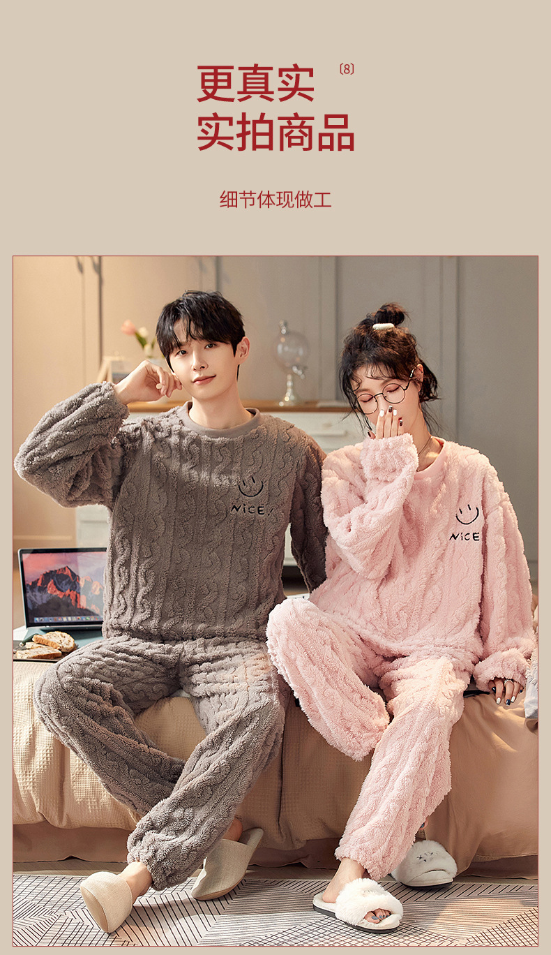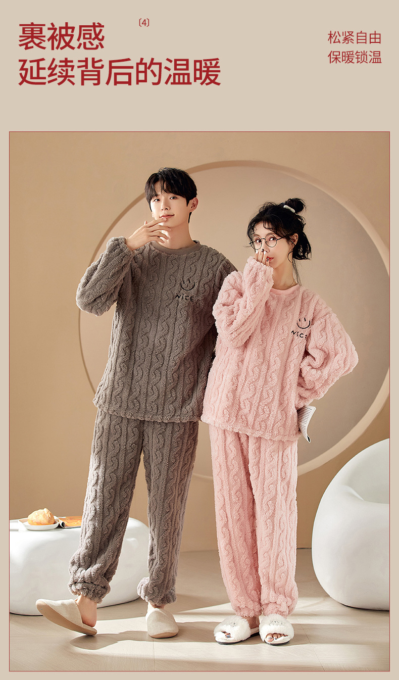Yu Zhaolin Coral Fleece Pajamas 여성 커플의 가을과 겨울 기모 남성 플란넬 홈 의류 세트