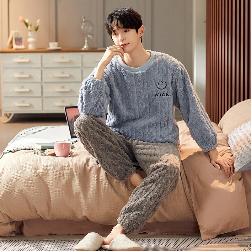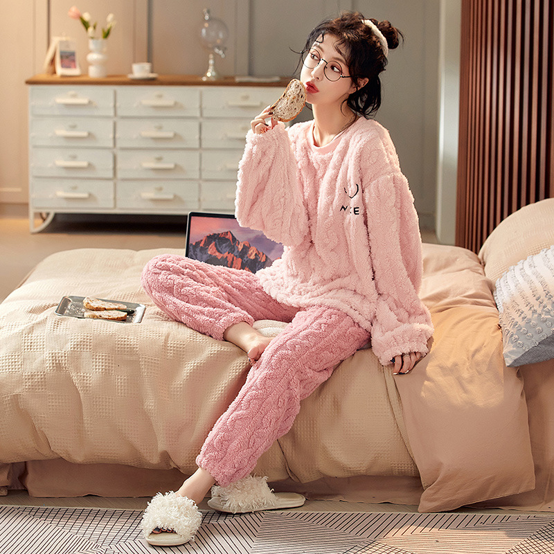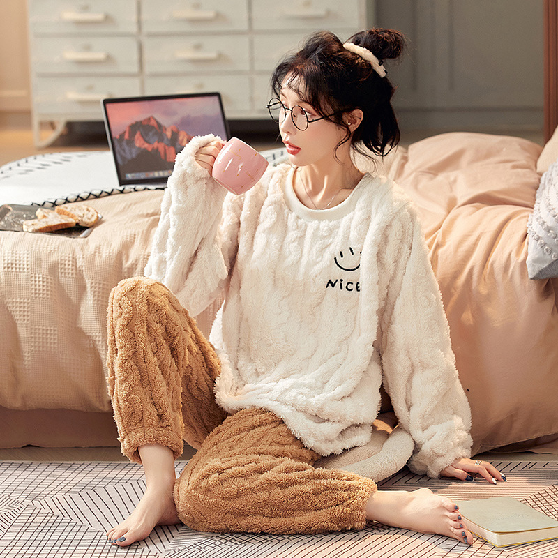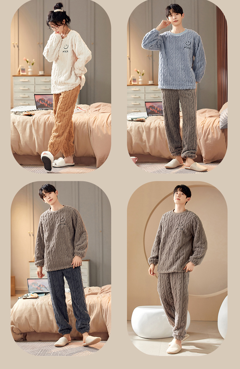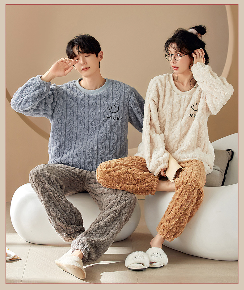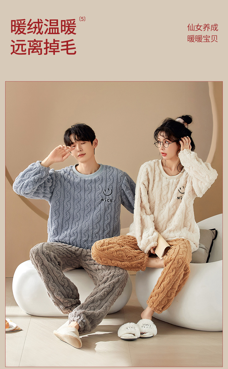 Yu Zhaolin Coral Fleece Pajamas 여성 커플의 가을과 겨울 기모 남성 플란넬 홈 의류 세트스토어 가기