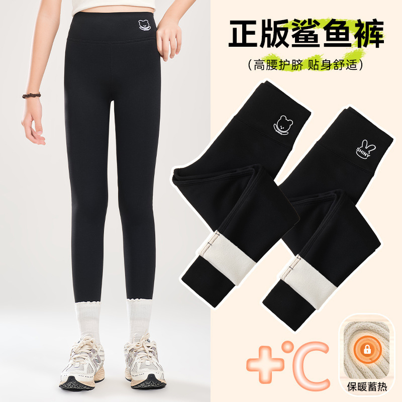 소녀 기모 상어 바지 어린이 높은 허리 요가 바지 슬림 한 중간 크기의 어린이 겨울 두껍게 보이는 외부 착용 바비 바지스토어 가기