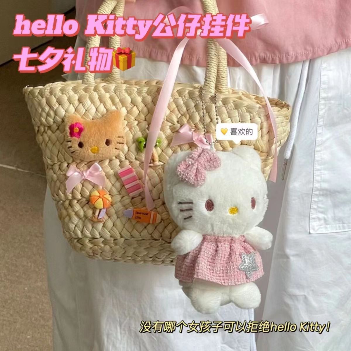 인 귀여운 소녀 하트 KT 고양이 펜던트 백 펜던트 학생 샤넬 스타일 스커트 KT 봉제 인형 키 체인스토어 가기