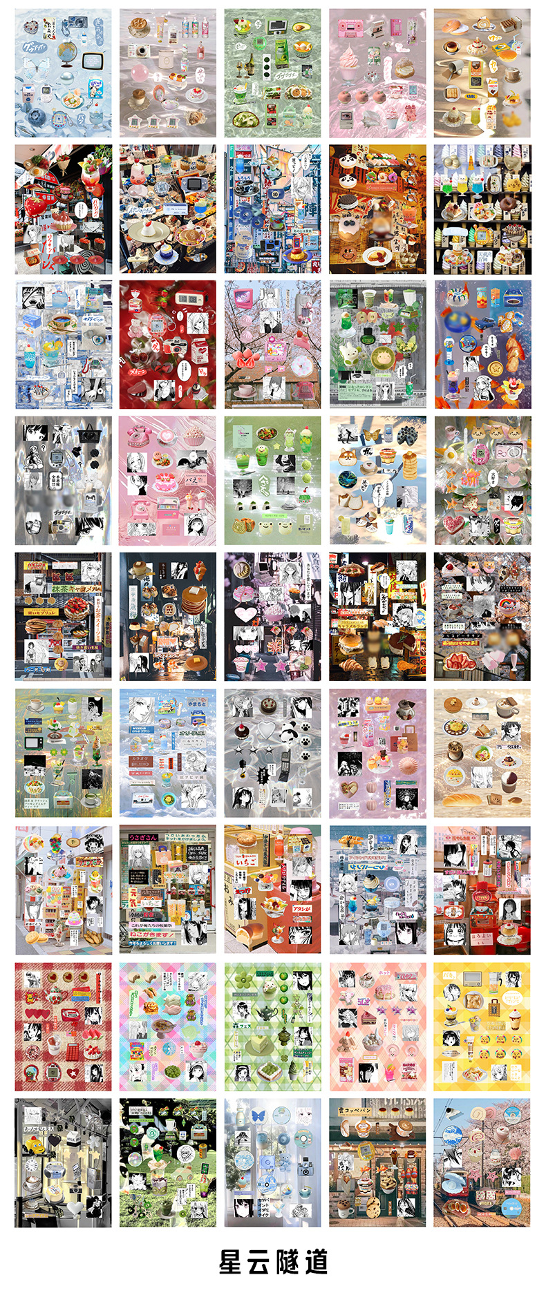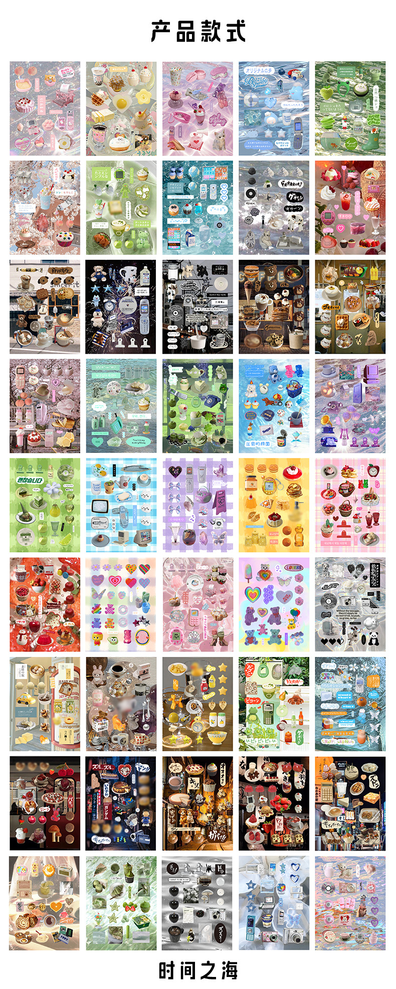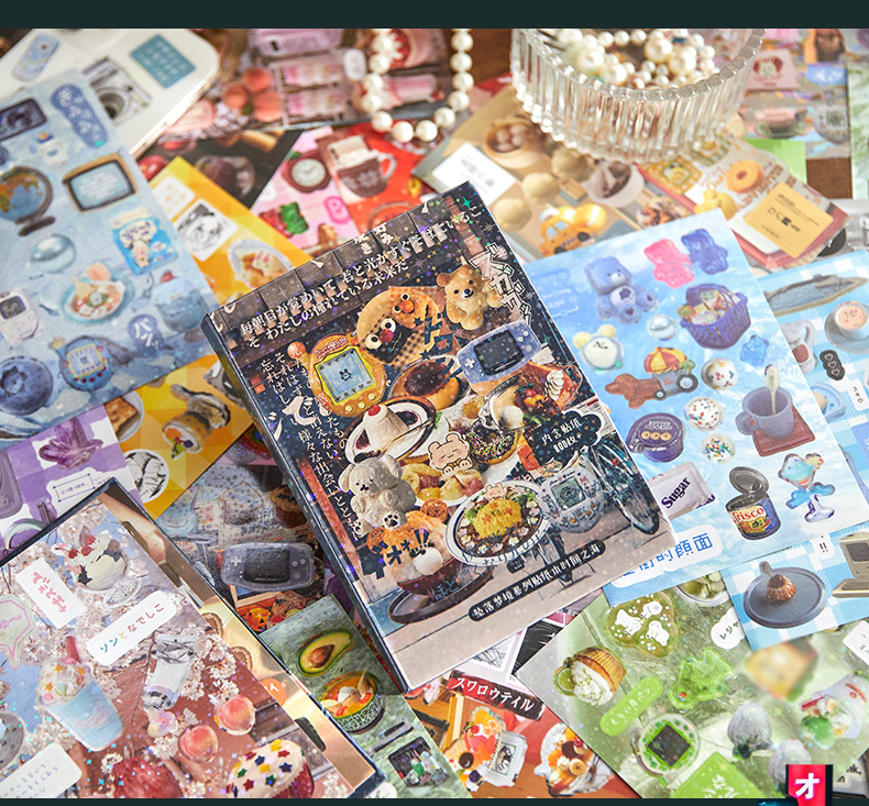 플래시 일본 음식 스티커 책 거대한 두꺼운 손 책 스티커 다채로운 음식 고대 초기 만화 다이 컷 스티커 책