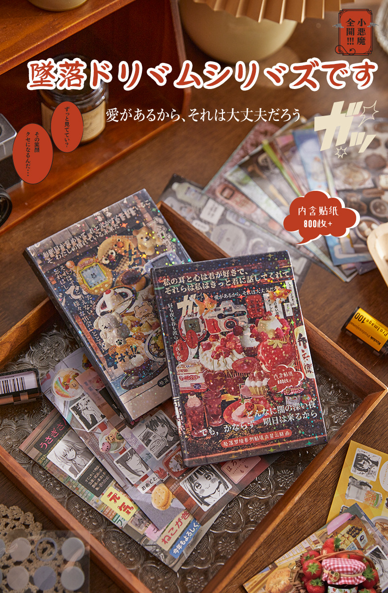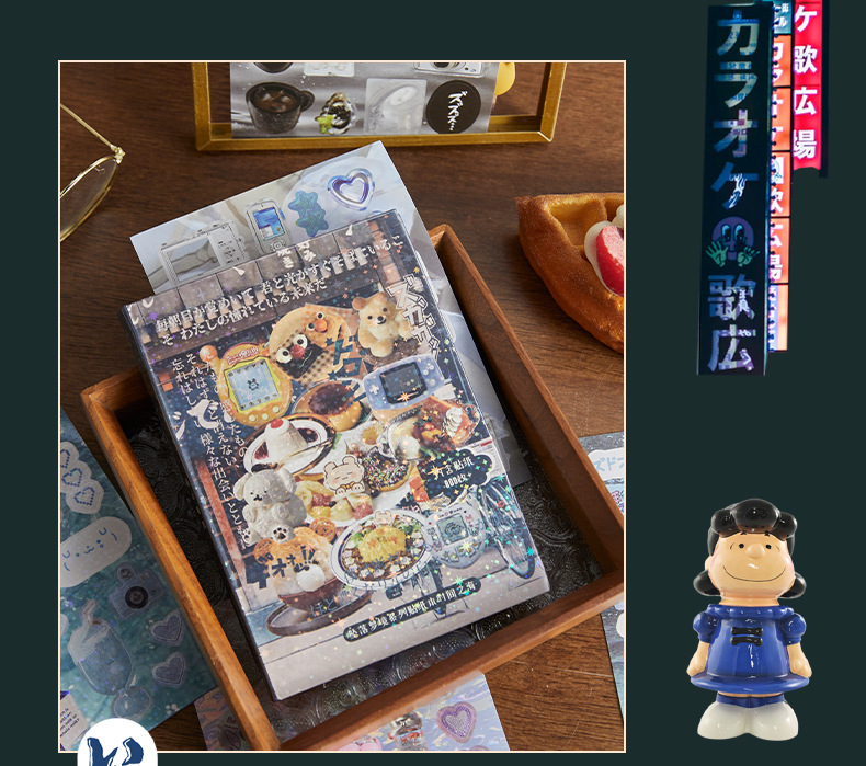 플래시 일본 음식 스티커 책 거대한 두꺼운 손 책 스티커 다채로운 음식 고대 초기 만화 다이 컷 스티커 책스토어 가기