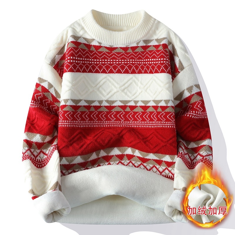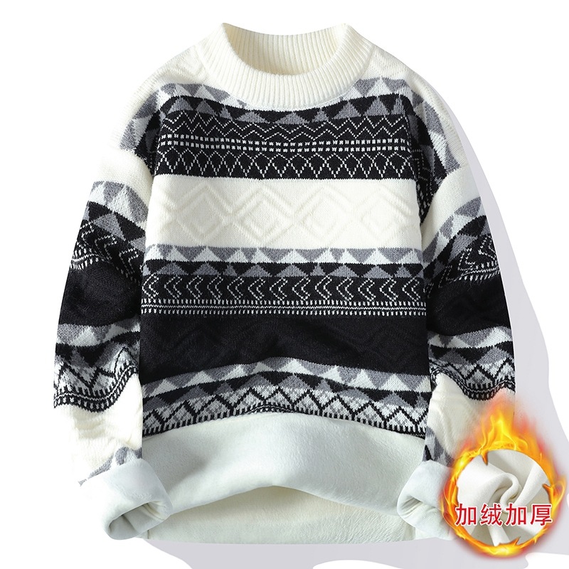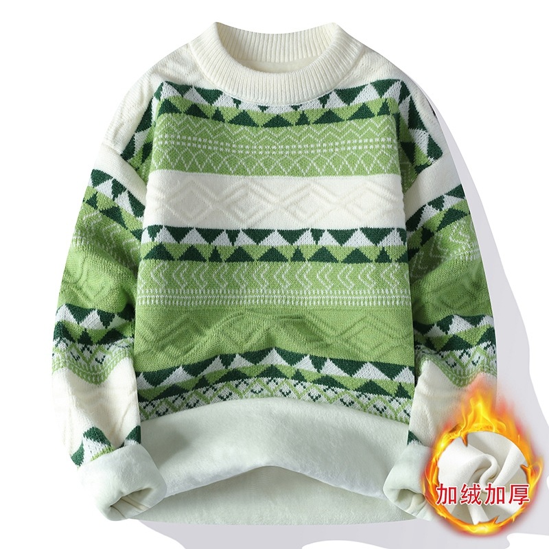 커플의 주니어 게으른 스타일 레트로 올 매치 기모 스웨터 남자 예술적 니트 스웨터 따뜻한 외부스토어 가기