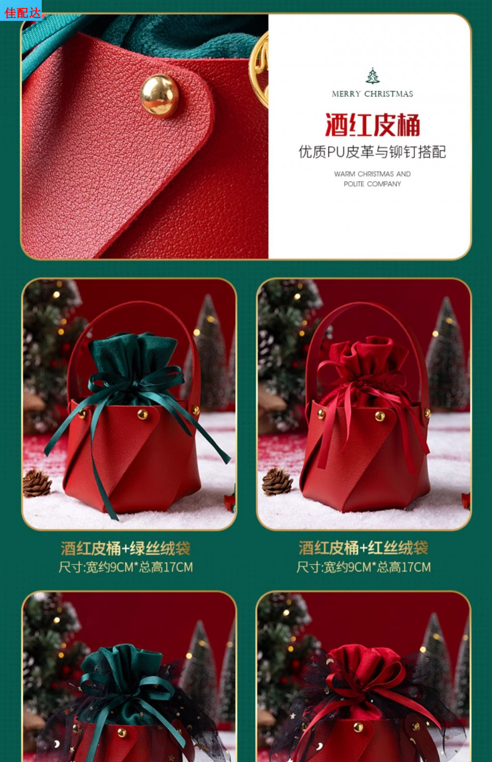 • A [휴대용 가죽 버킷 스타일] 그린 벨벳 가방 (5개 들이 팩)