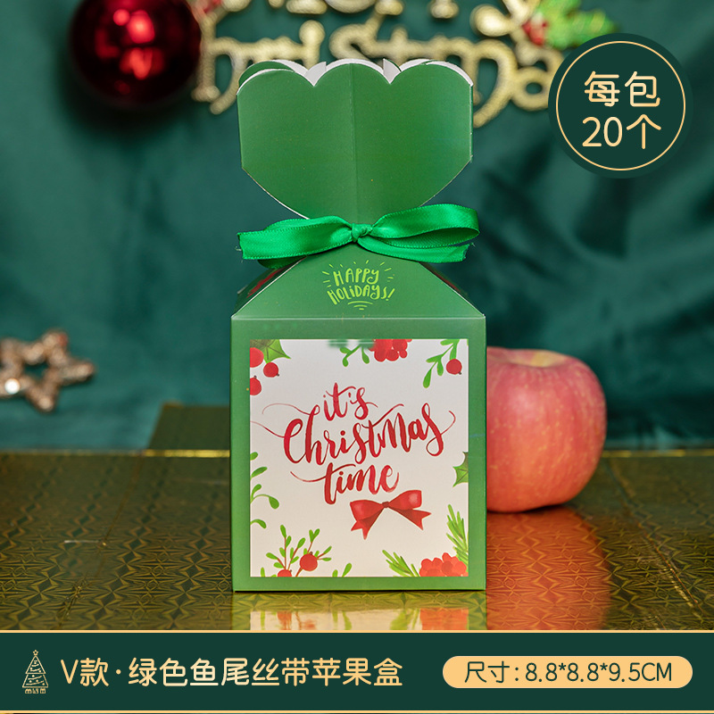 • V 스타일 - 녹색 피쉬테일 리본 사과 상자 [20개]