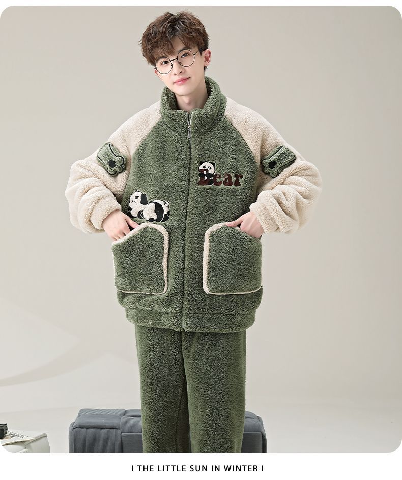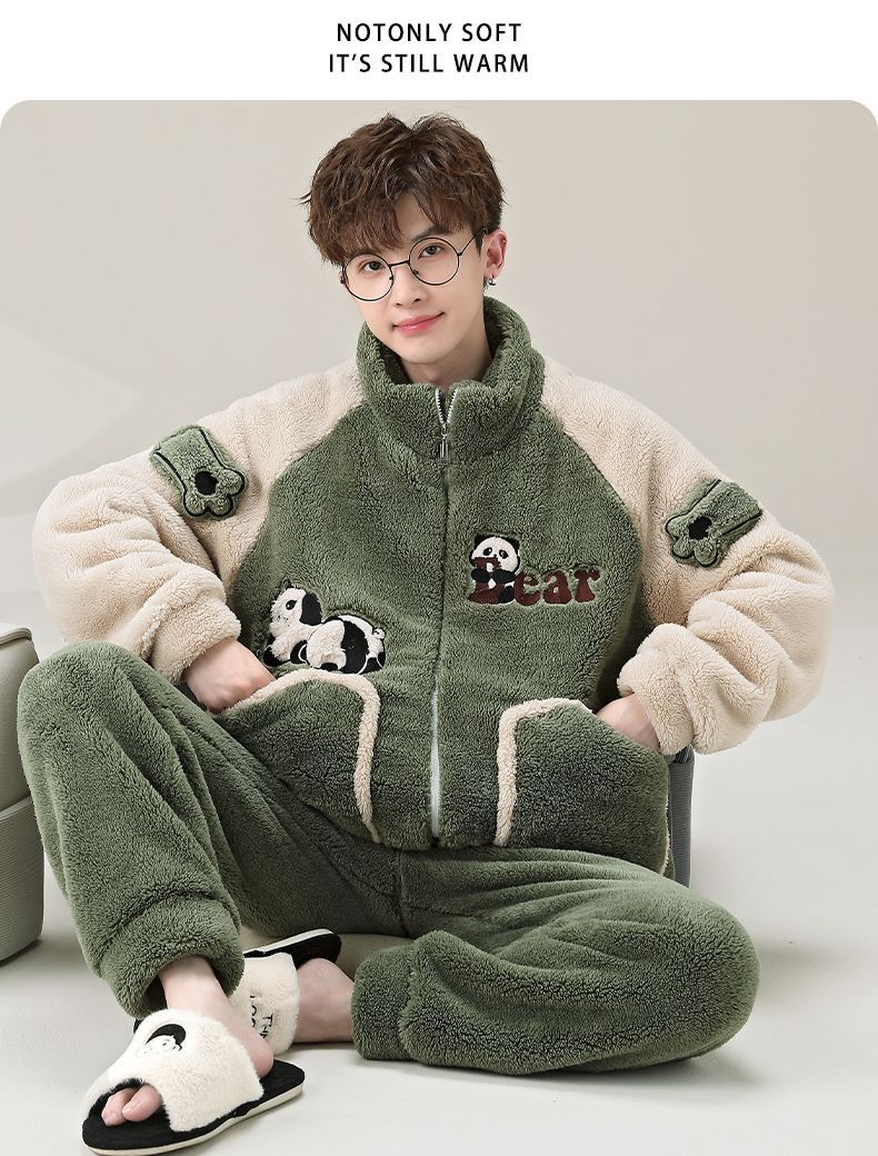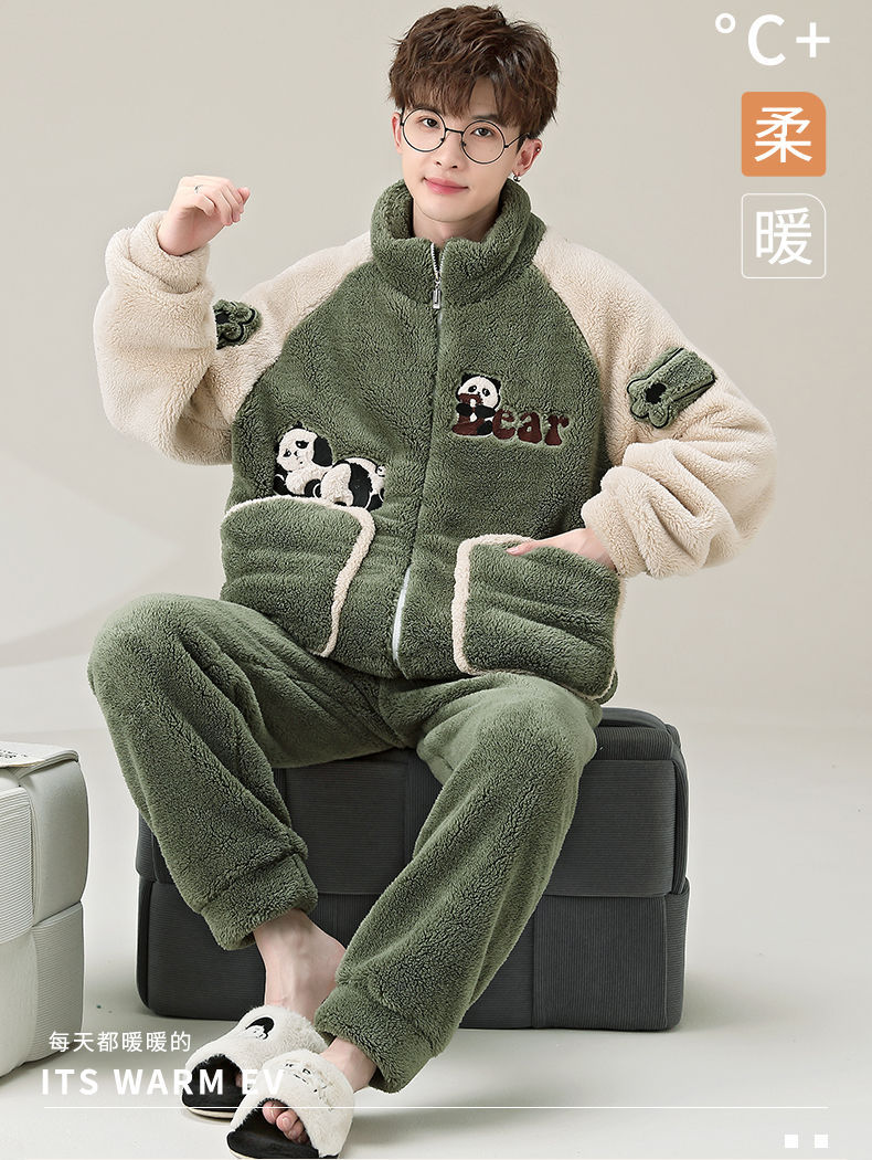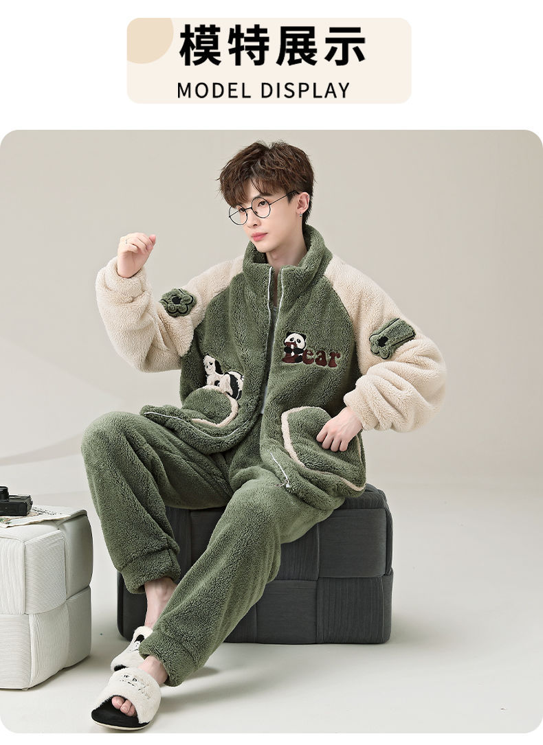 겨울 소년 잠옷 산호 양털 만화 팬더 플러스 사이즈 200kg 두께의 청소년 부모-자식 가정 의류 아버지-아들