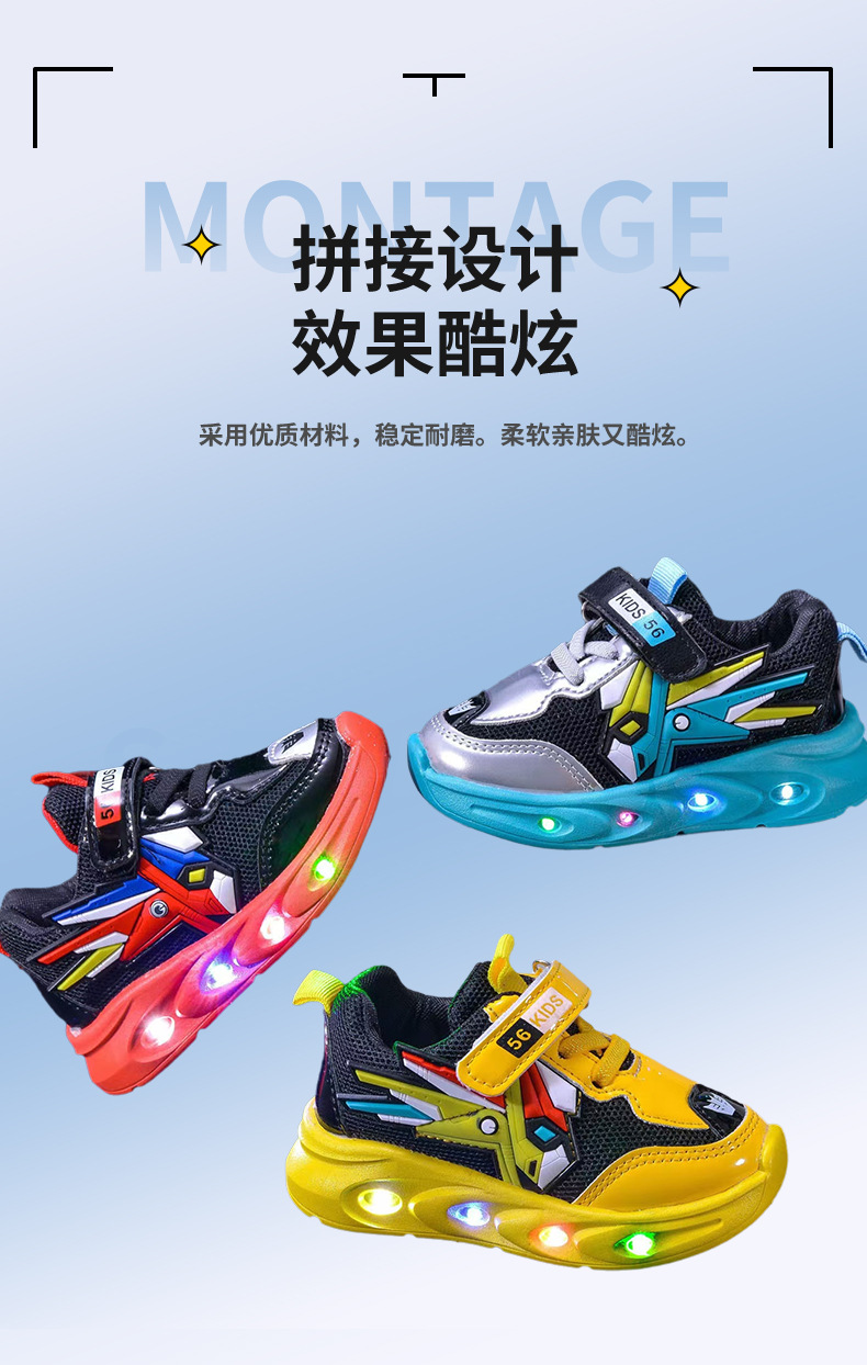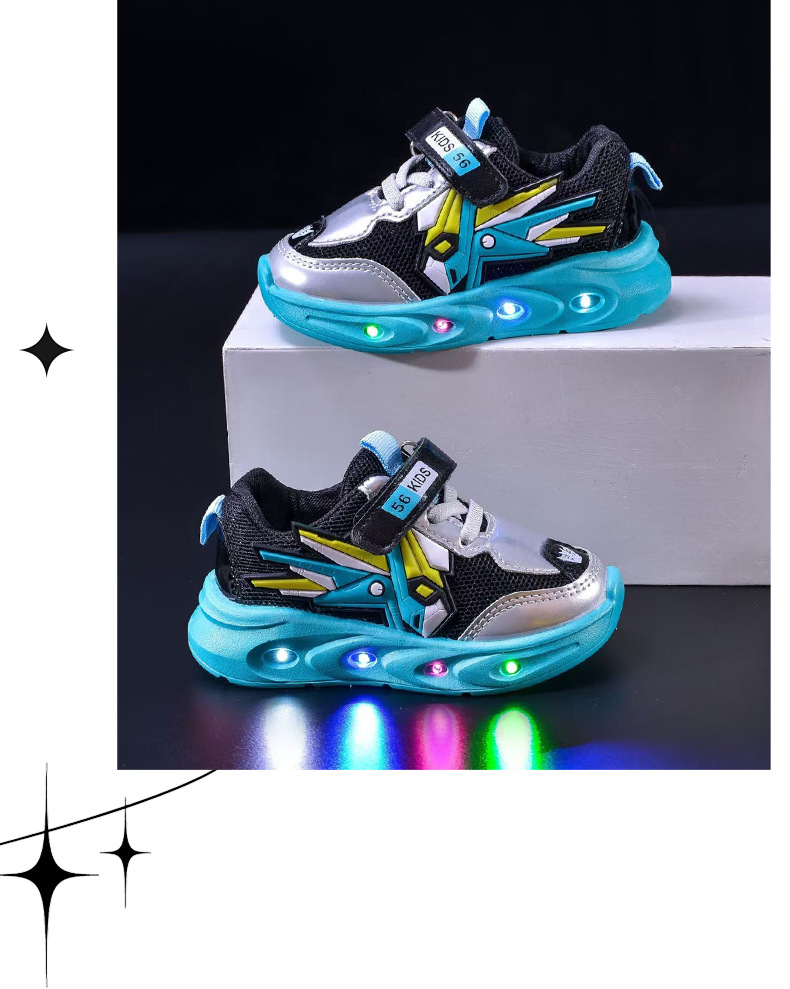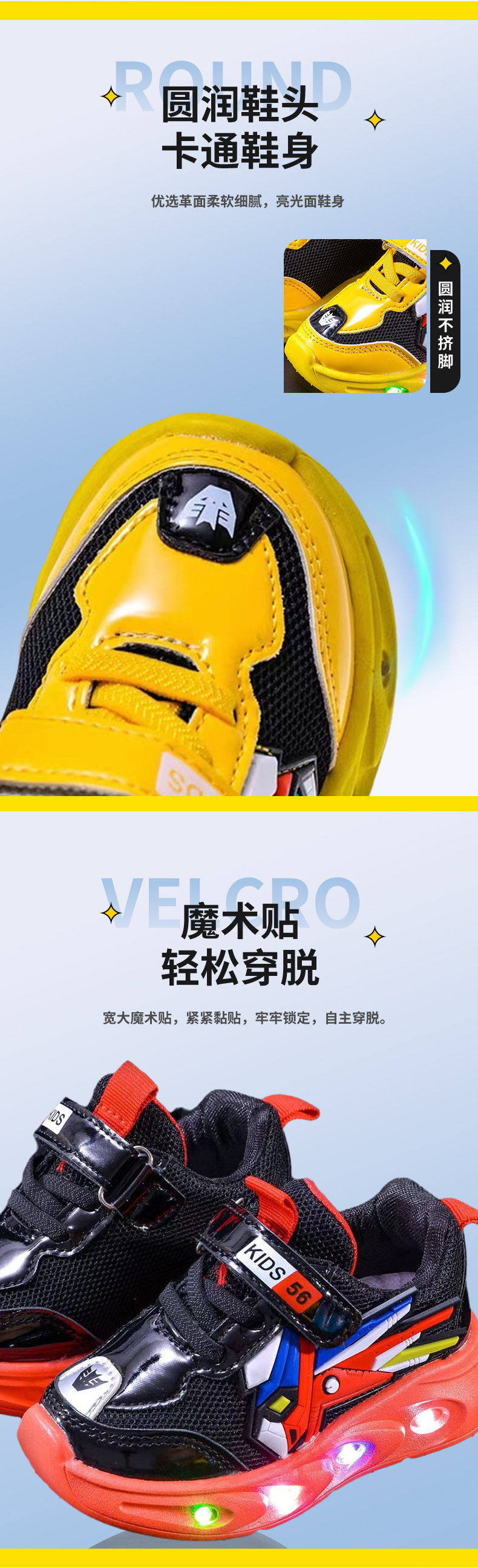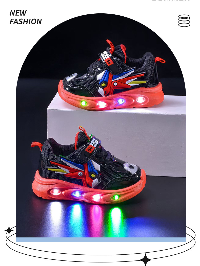국경 간 가을과 겨울 새로운 남성 신발 벨크로 만화 메쉬 패브릭 플래시 신발 통기성 1-6 어린이 신발 어린이 운동화