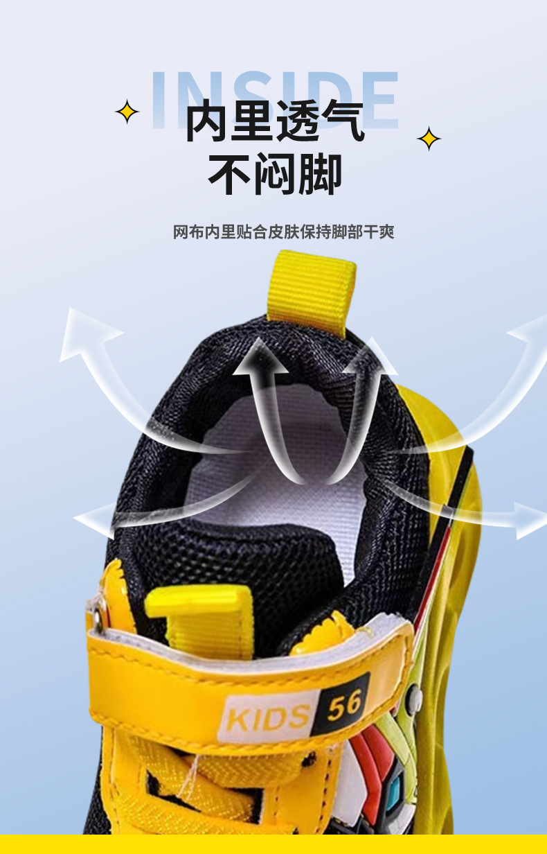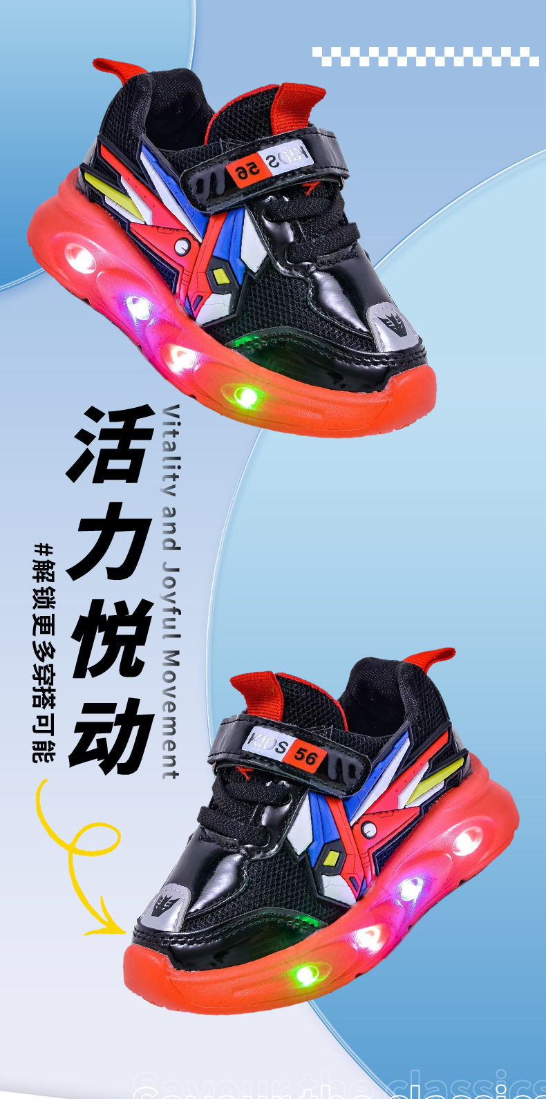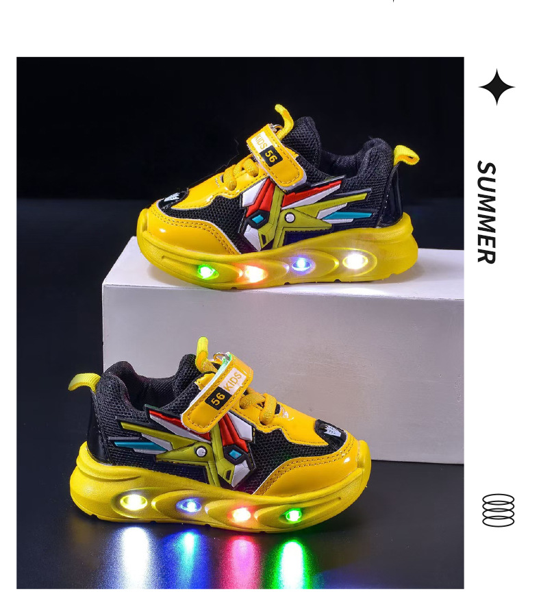 국경 간 가을과 겨울 새로운 남성 신발 벨크로 만화 메쉬 패브릭 플래시 신발 통기성 1-6 어린이 신발 어린이 운동화