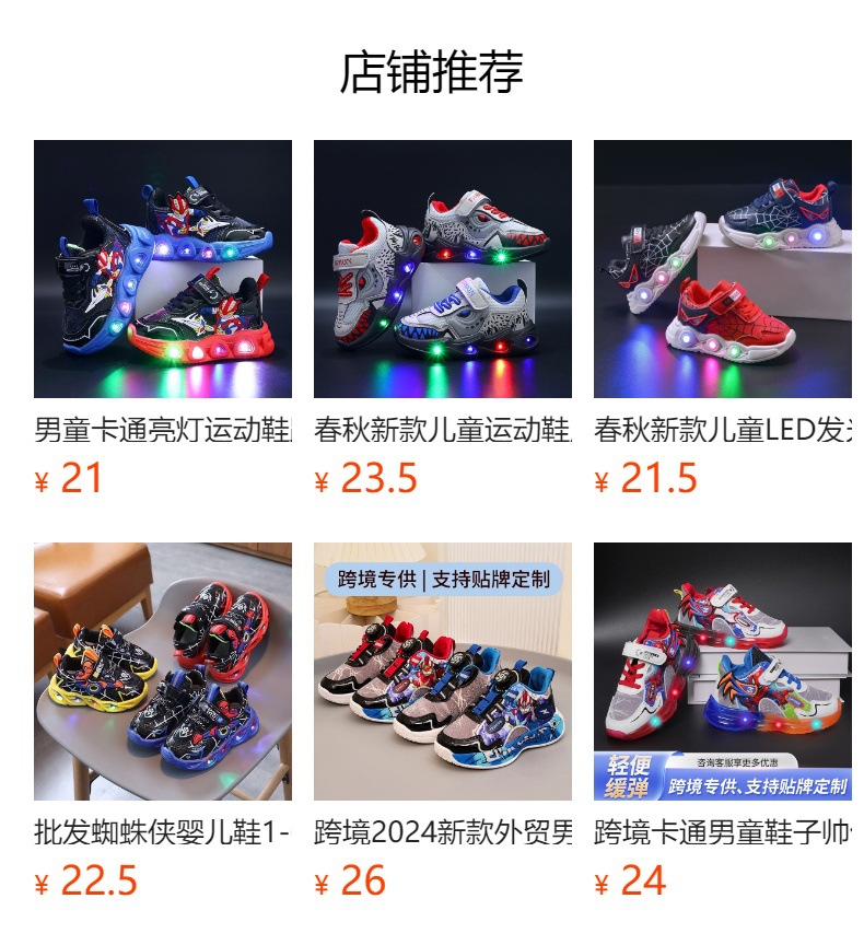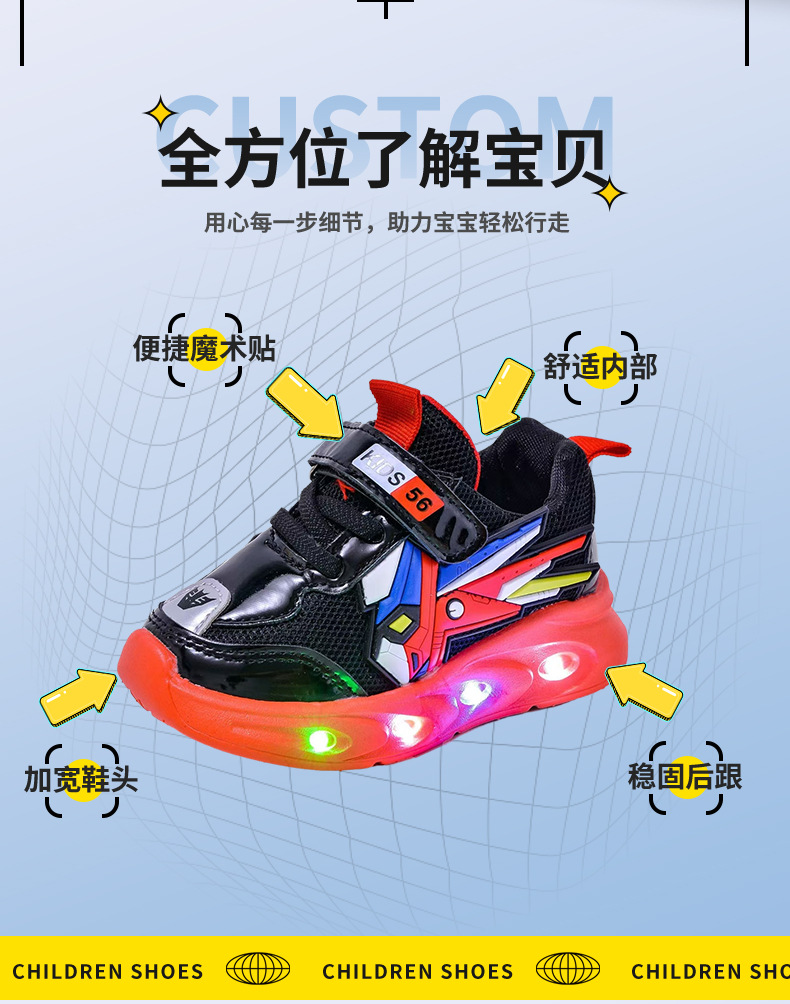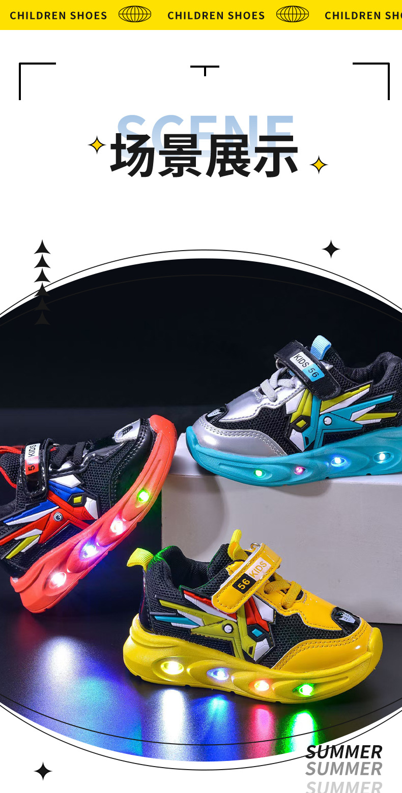 국경 간 가을과 겨울 새로운 남성 신발 벨크로 만화 메쉬 패브릭 플래시 신발 통기성 1-6 어린이 신발 어린이 운동화스토어 가기