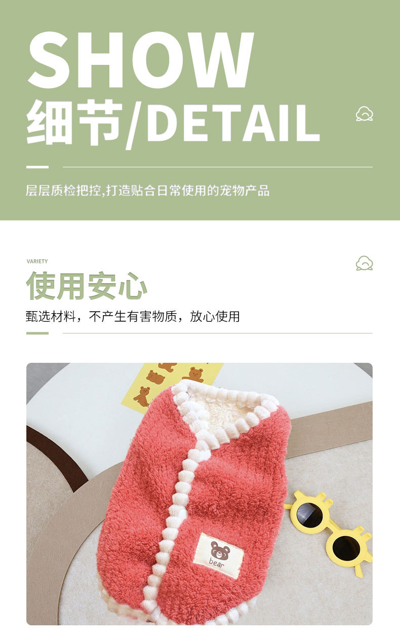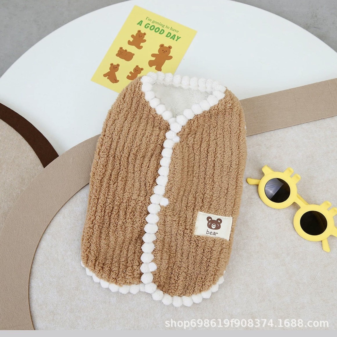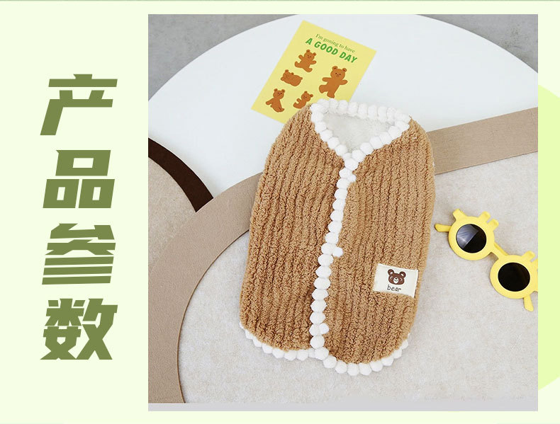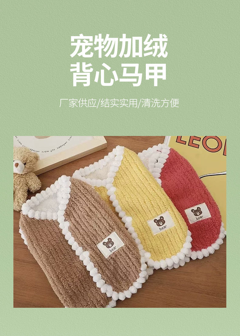 가을과 겨울 강아지 의류 테디 비콘 푸시 옷 귀여운 기모 따뜻한 조끼 조끼 애완 동물 옷