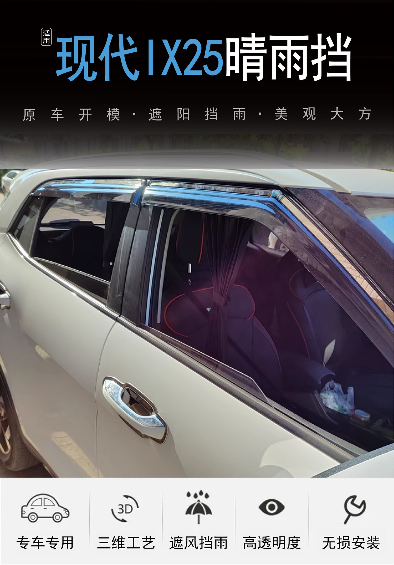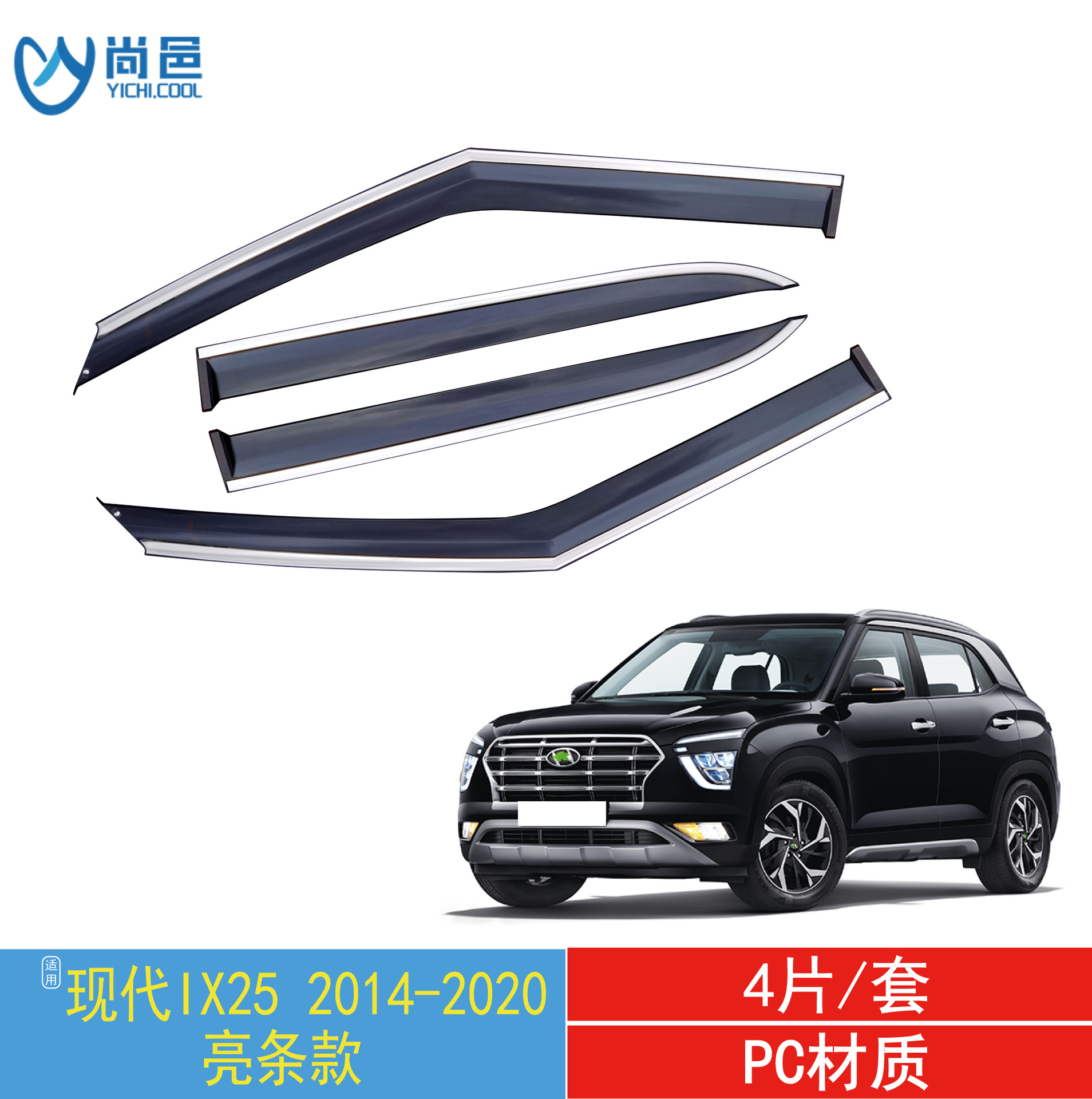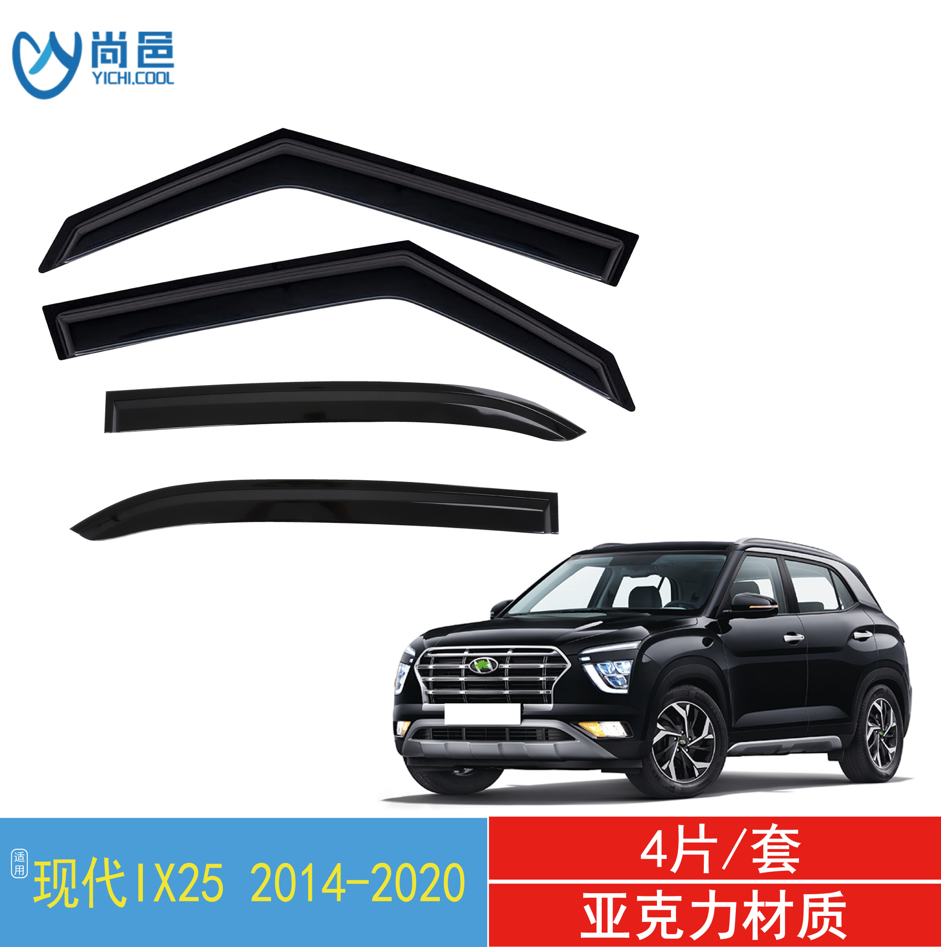 2014-2020 현대 IX25 창 수정 비 방지 아크릴 자동차 비 방패의 국경 적용